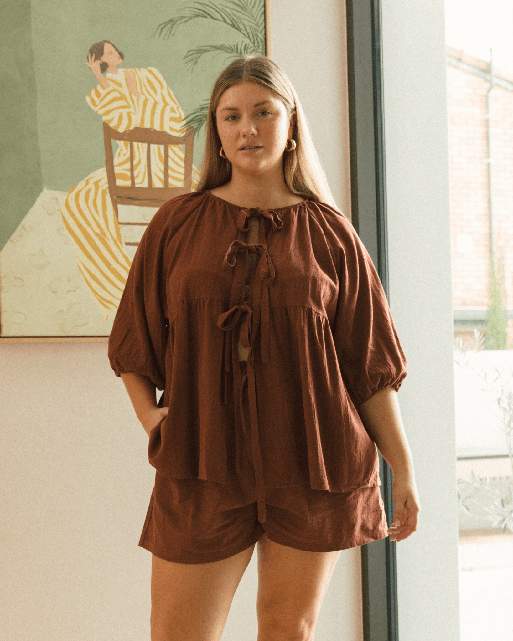 Say hello to your new go-to for effortless, everyday dressing. The Florence Top in Rust is floaty, functional and full of those thoughtful details that make getting dressed easy. With its oversized fit and soft cotton blend, it’s made to feel breezy and breathable — perfect for warm weather, busy mornings or slow days at home.