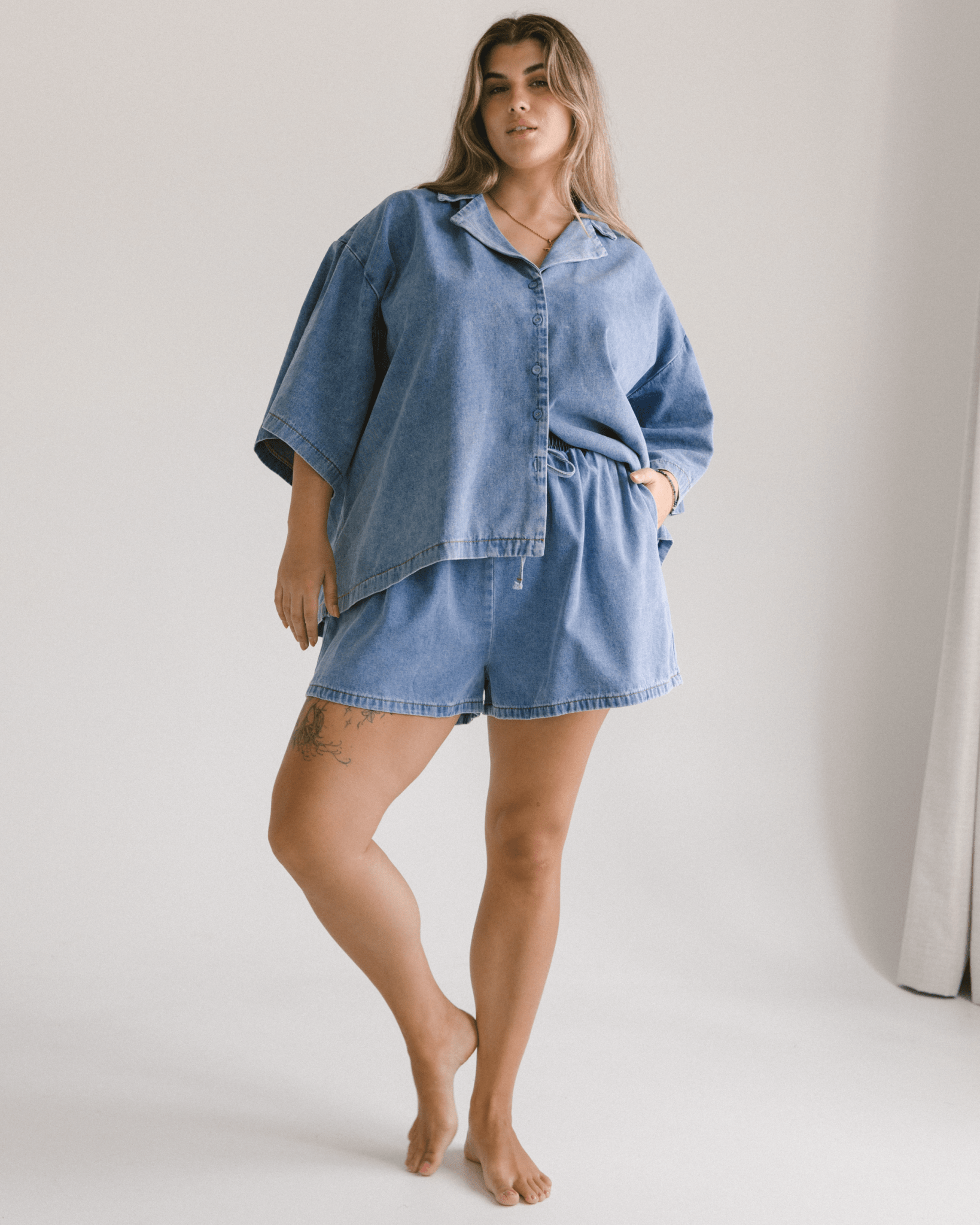 - Made from breathable 100% cotton light denim