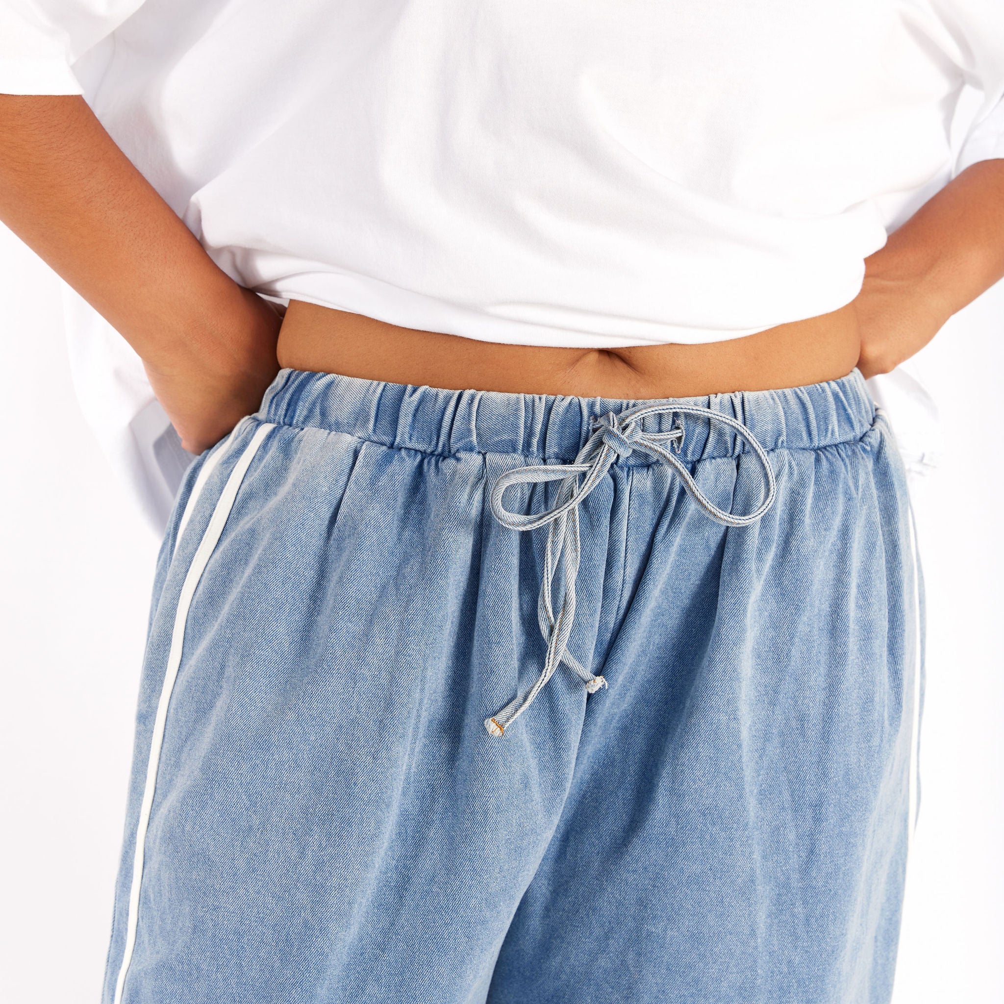 - Colour: Denim with White Stripe down side seam