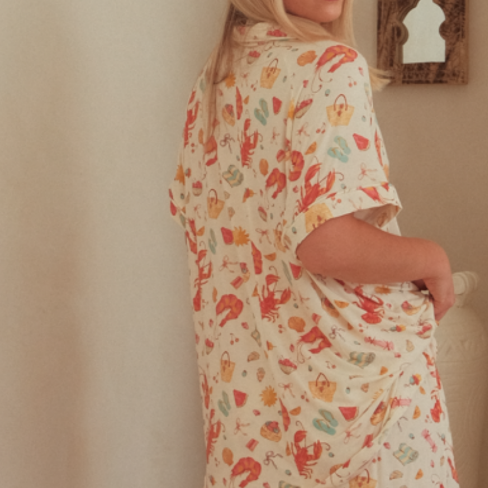 The classic collared design and button-down front ensure easy wear, breastfeeding access (cause duh) and a timeless look. The short sleeves make it the perfect go-to for those warm summer nights.