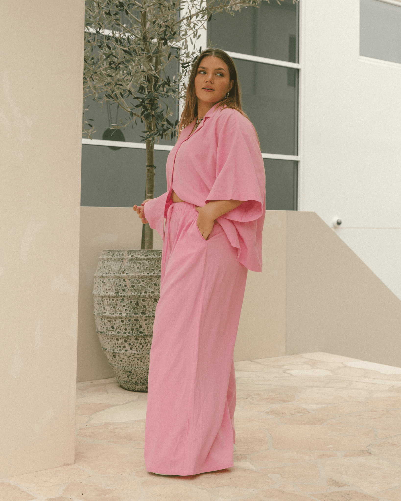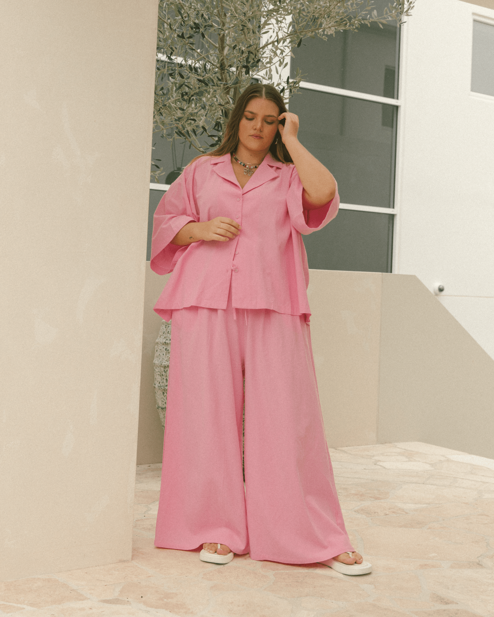 Comfort, but make it cute. Our Posey Pants are basically your new uniform for everything from couch hangs to cocktails. With their oversized, flowy fit and breezy fabric, these pants are ready to take you from bed to beach to “oh, this old thing?” brunch plans without breaking a sweat.
