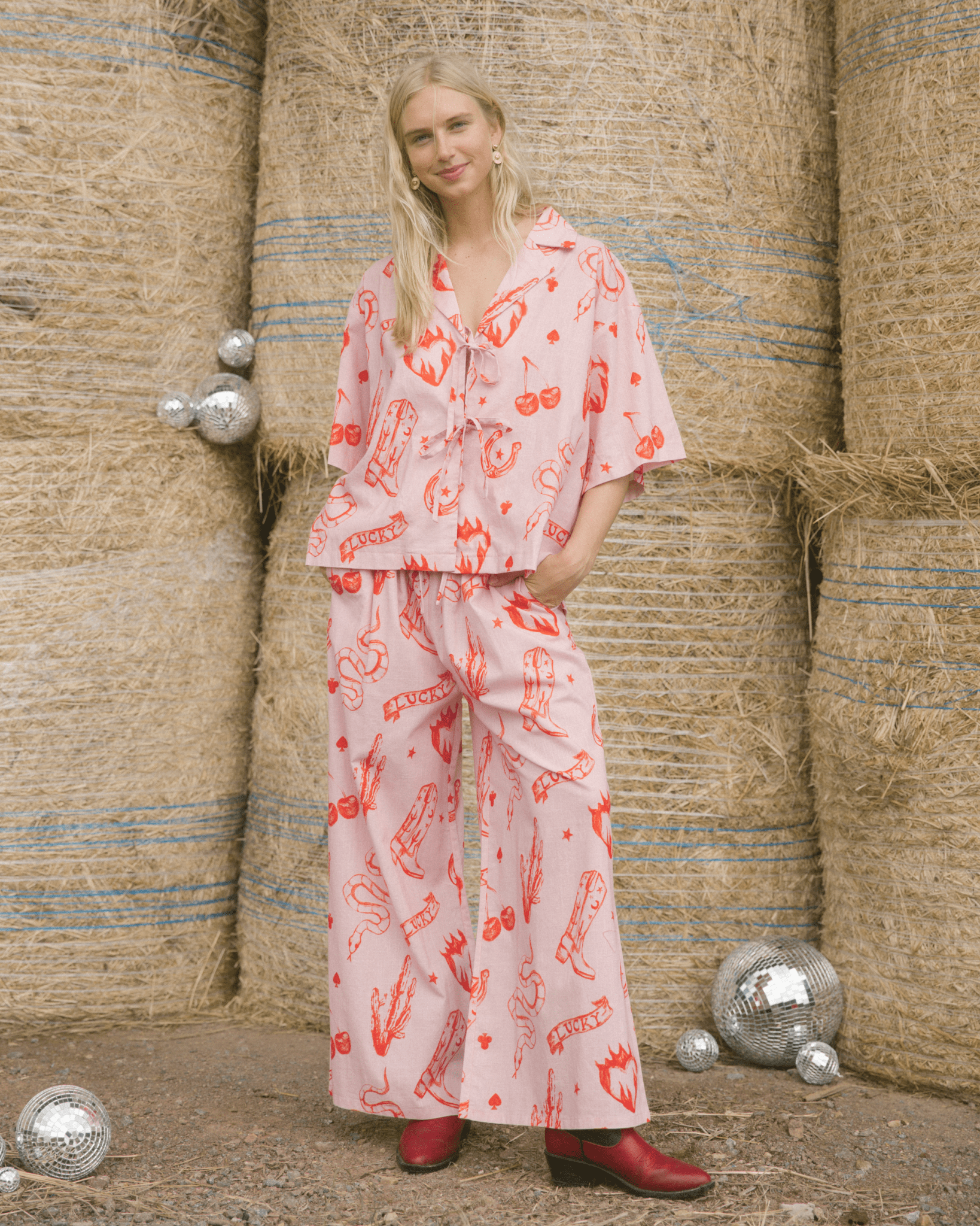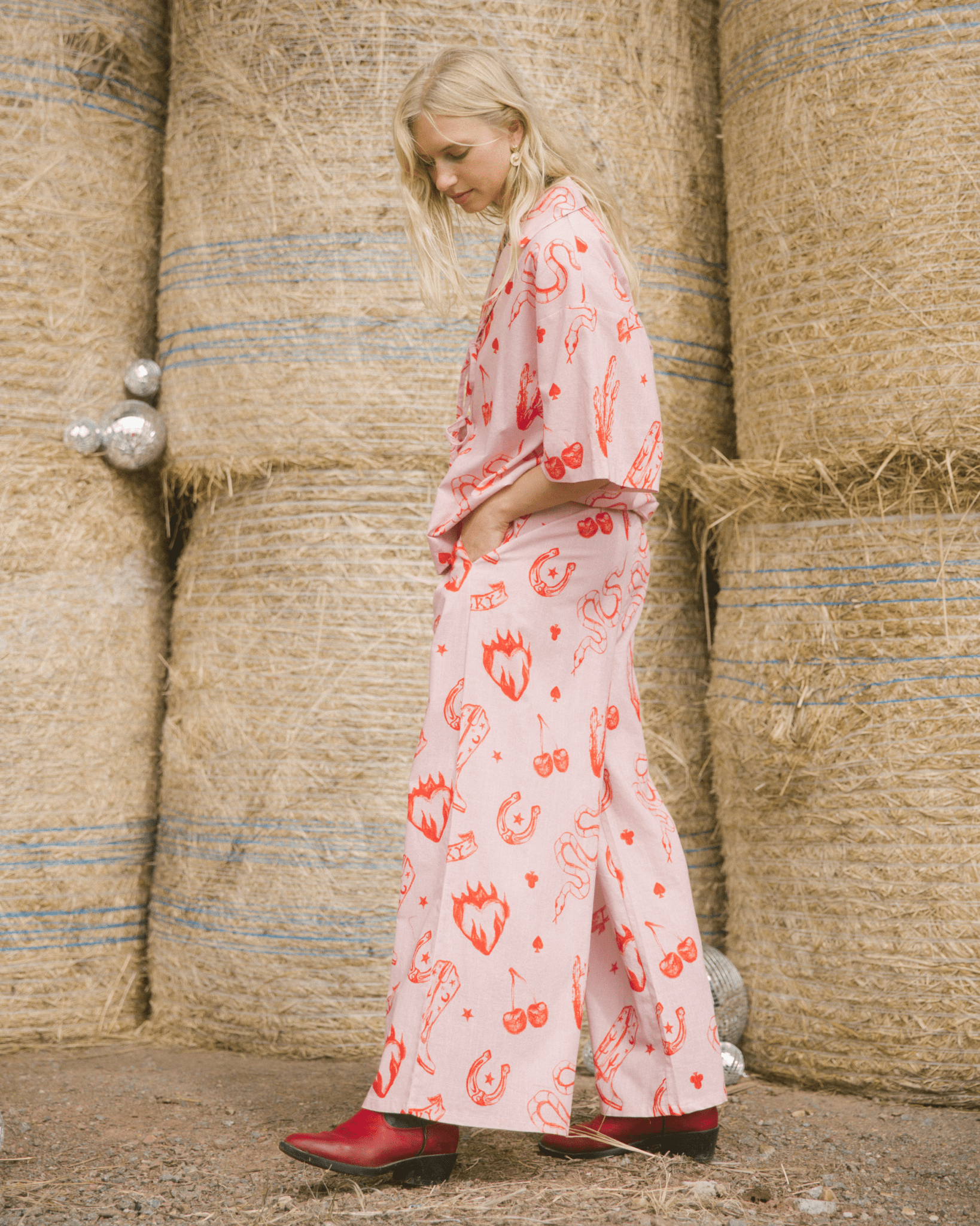 Comfort, but make it cute. Our Posey Pants are basically your new uniform for everything from couch hangs to cocktails. With their oversized, flowy fit and breezy fabric, these pants are ready to take you from bed to beach to “oh, this old thing?” brunch plans without breaking a sweat.