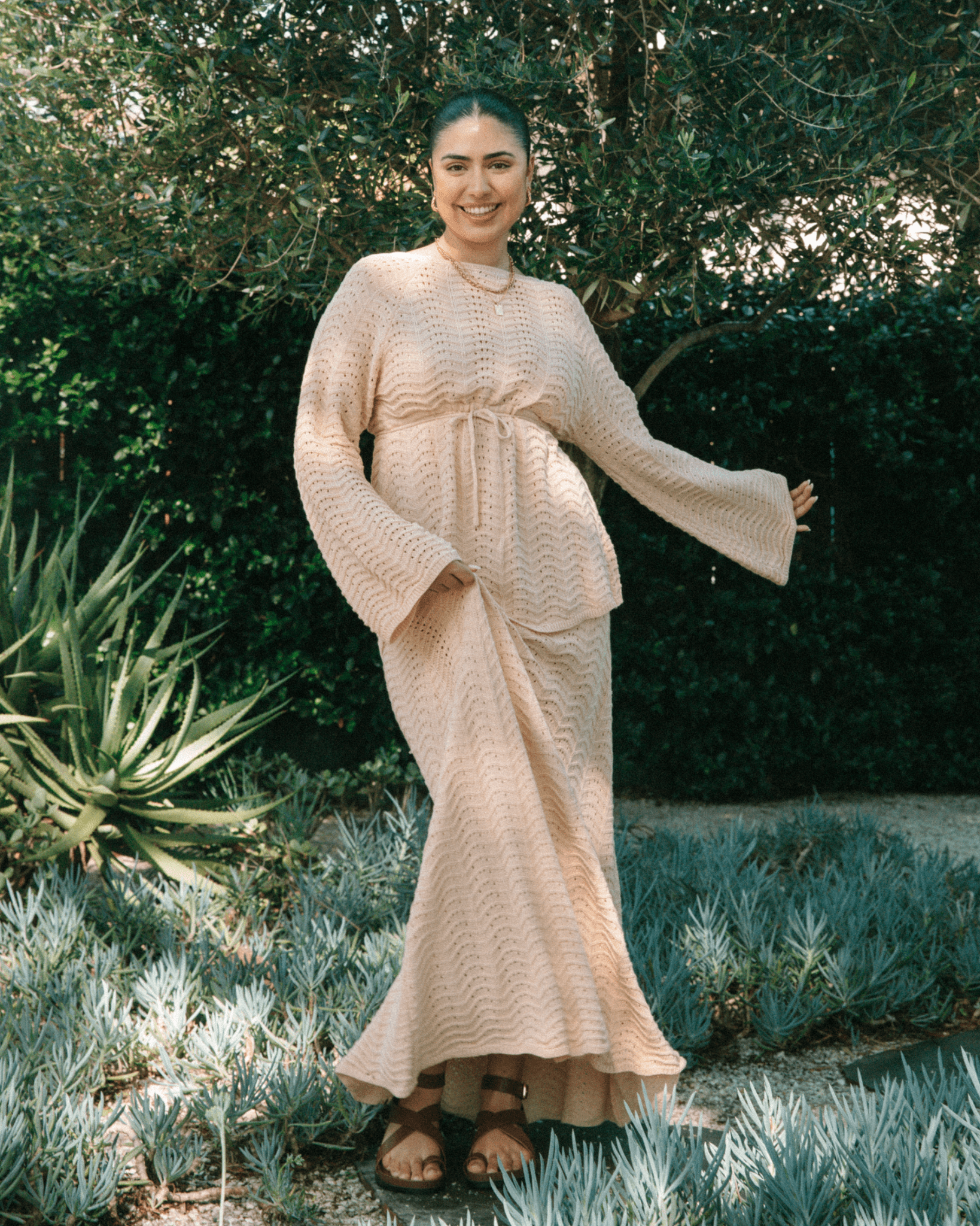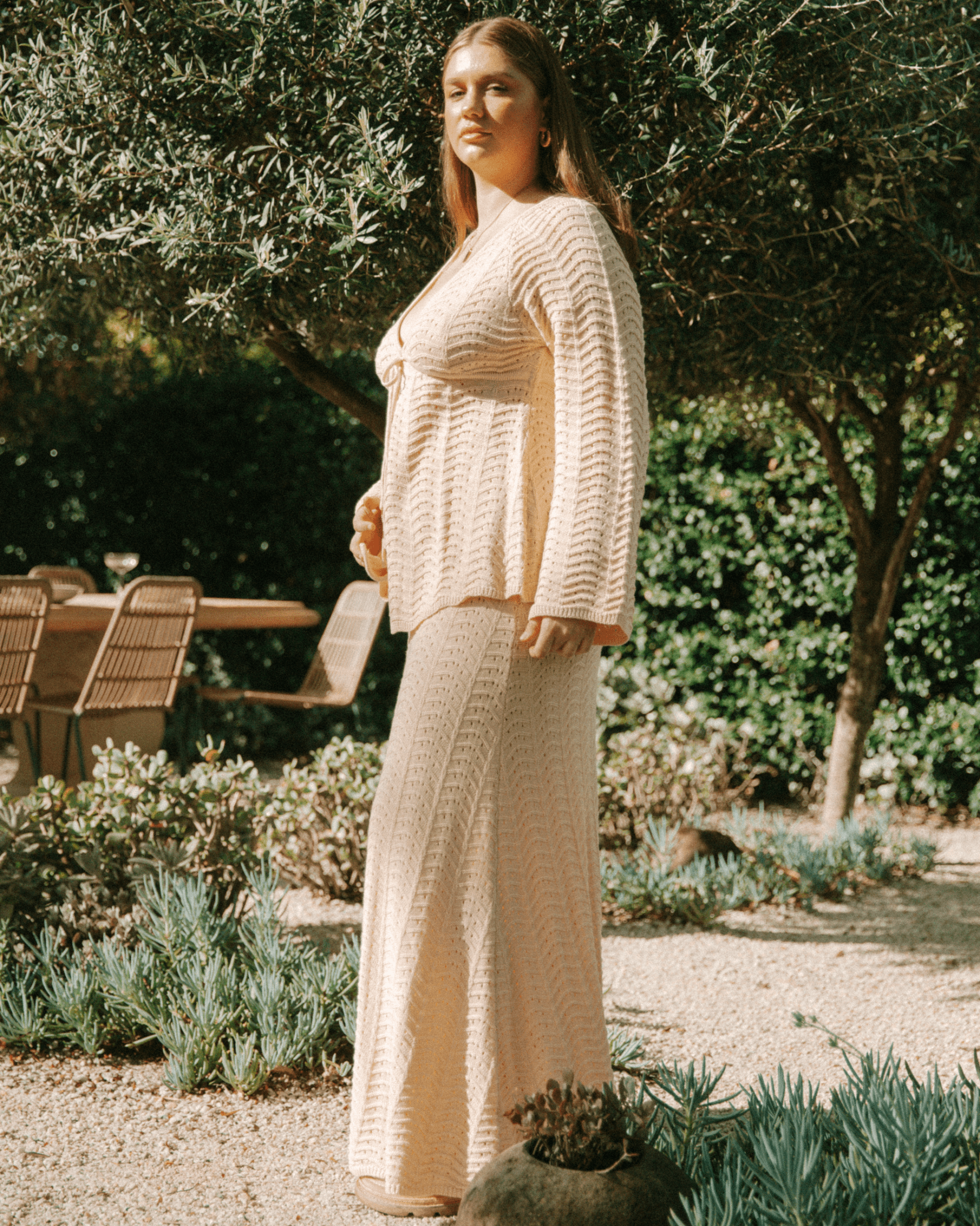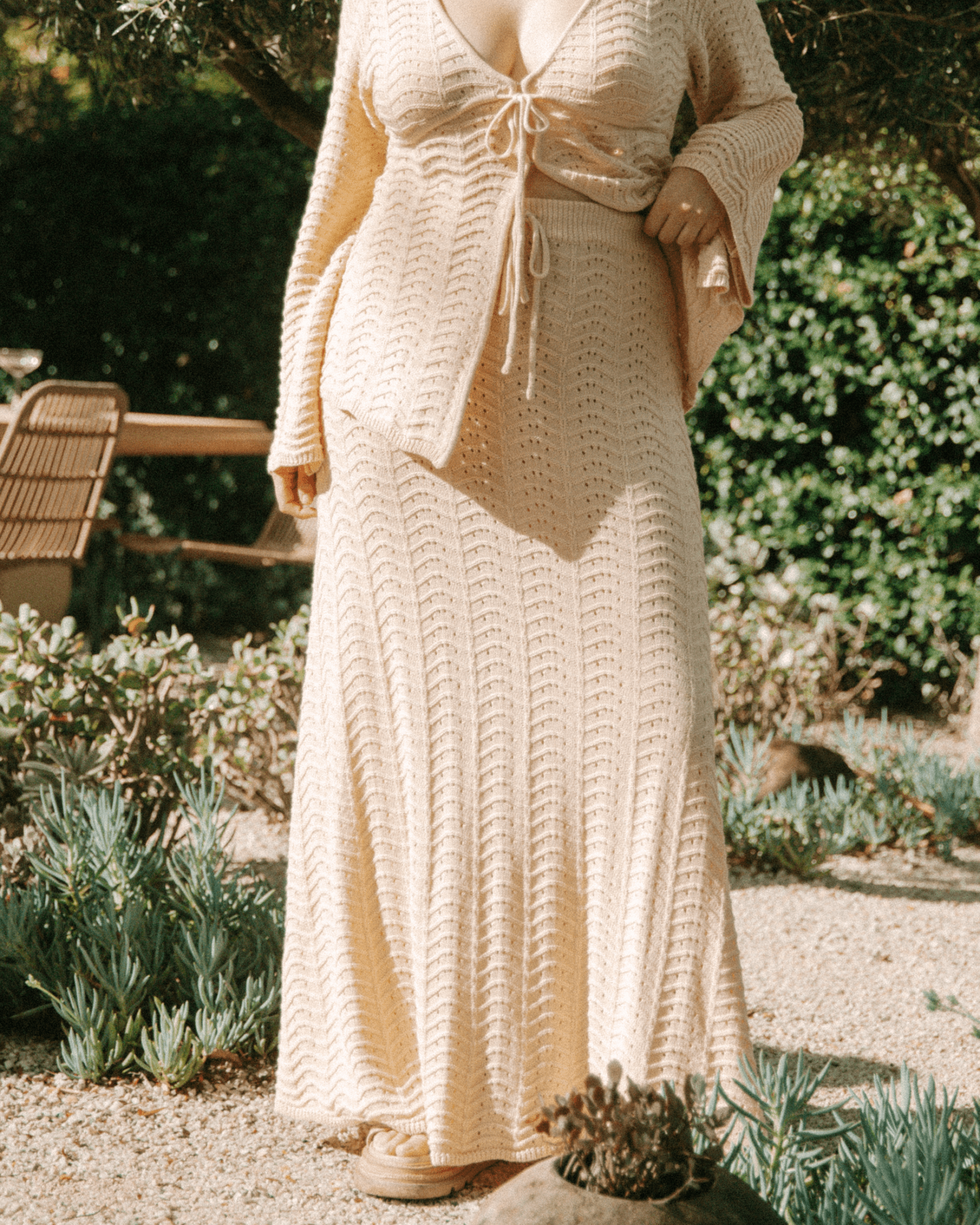 Introducing our Senna Crochet Maxi Skirt, a stunning collaboration between Maddy Zanatta and TLC. This skirt is adorned with intricate crochet detailing, offering a blend of comfort, style, and seamless movement. The drawstring waist ensures a personalised fit, adjusting comfortably to your individual silhouette.