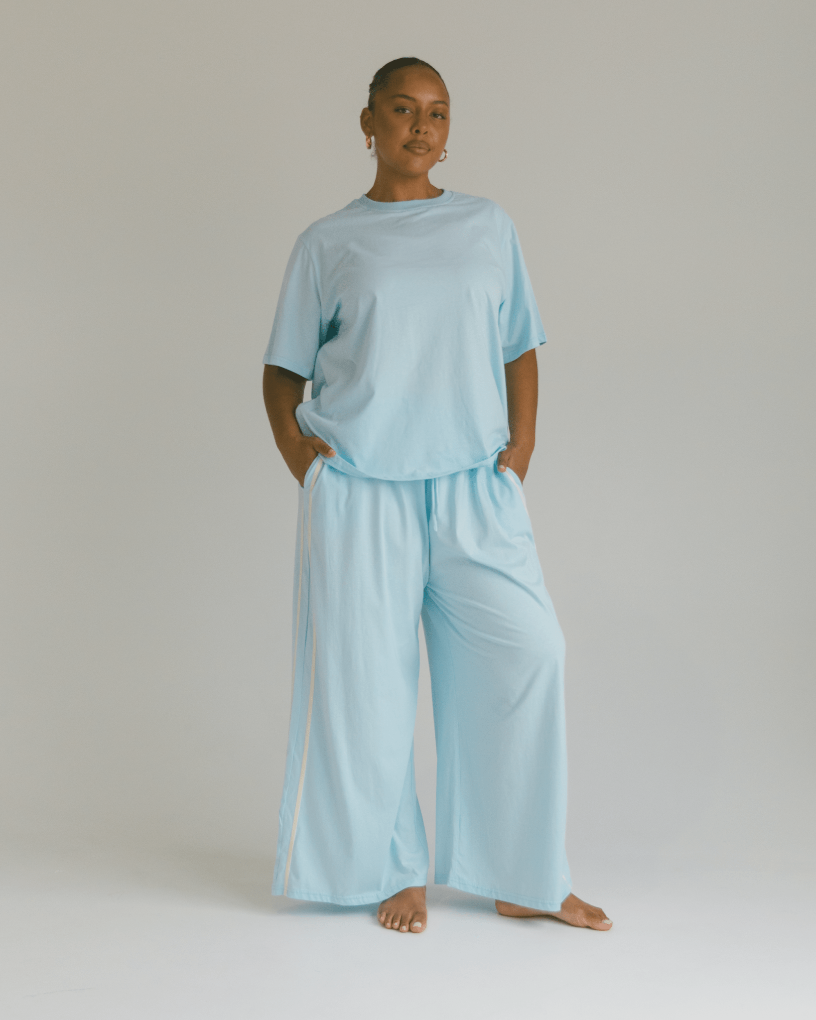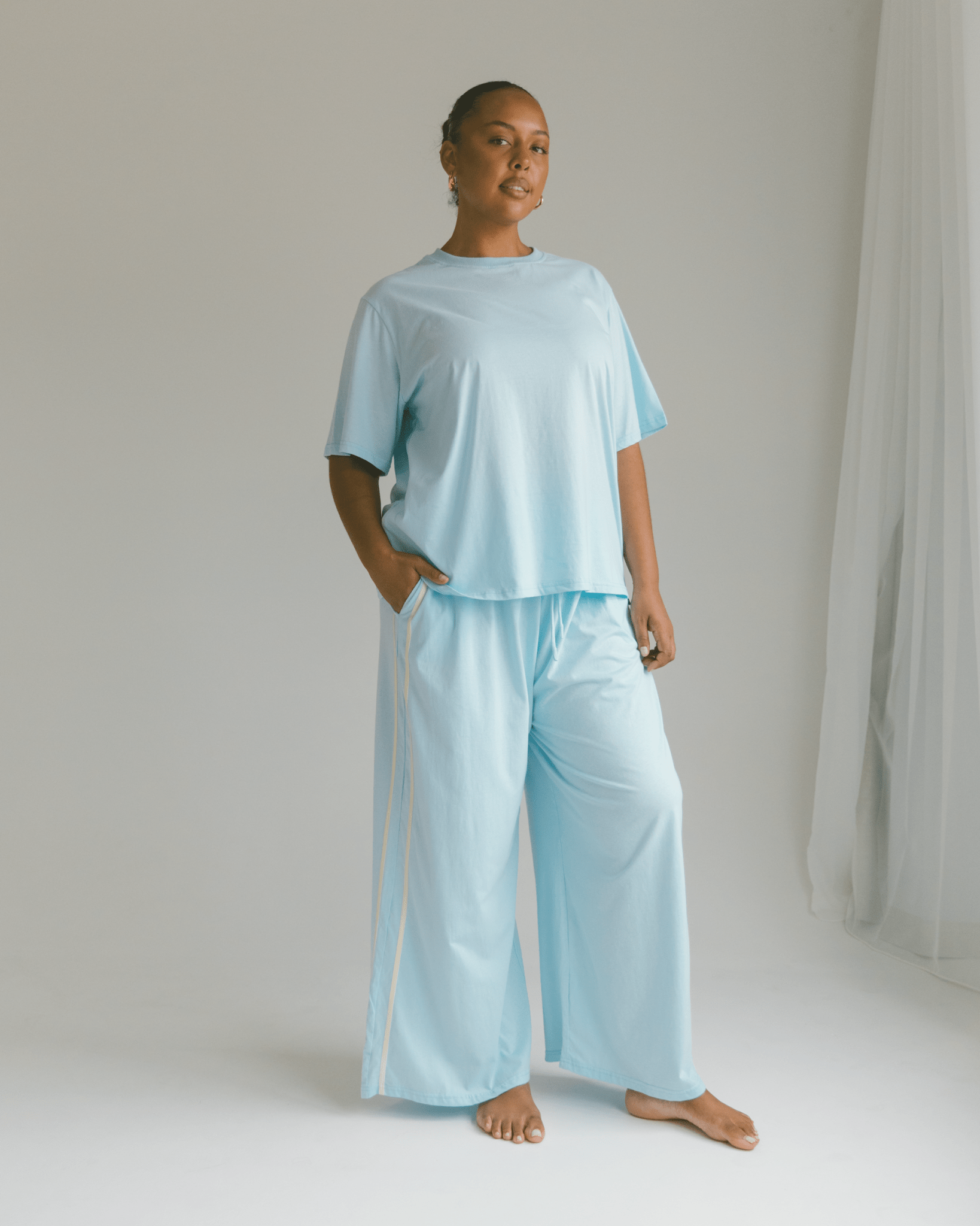 Made for comfort without compromise, these pieces are woven with softness and ease in mind. Think fabrics that breathe, silhouettes that give you space to be, and shapes that shift with your body rather than against it.