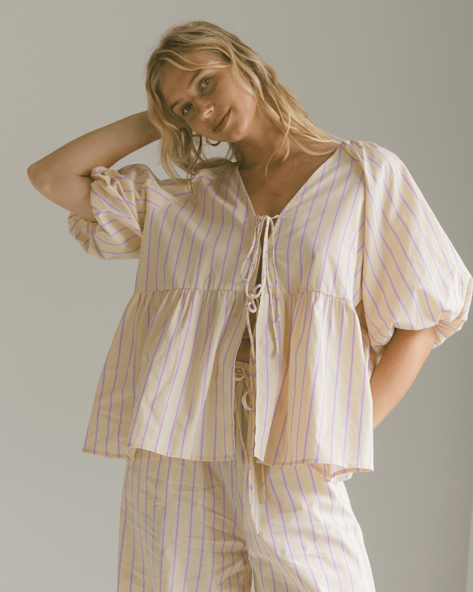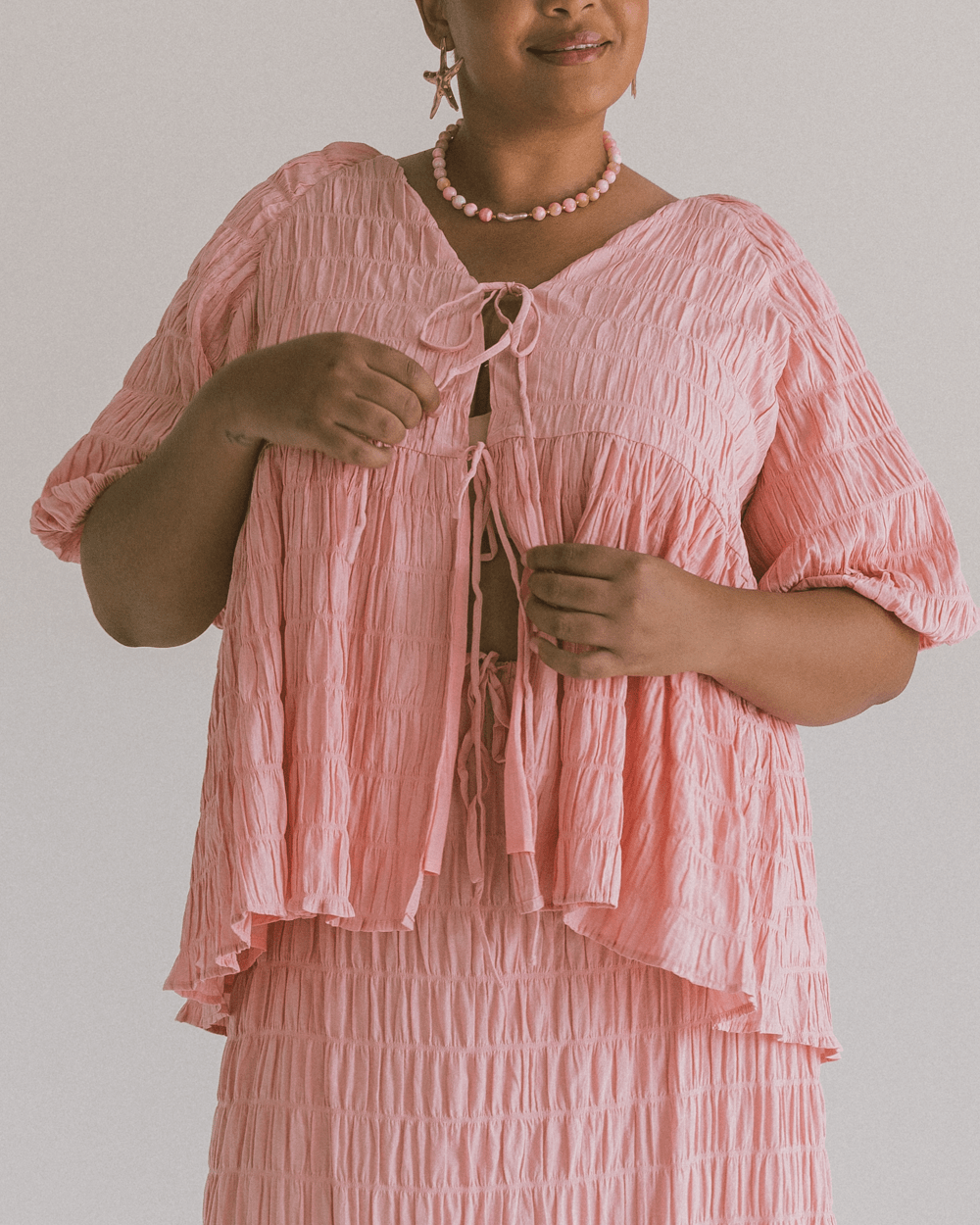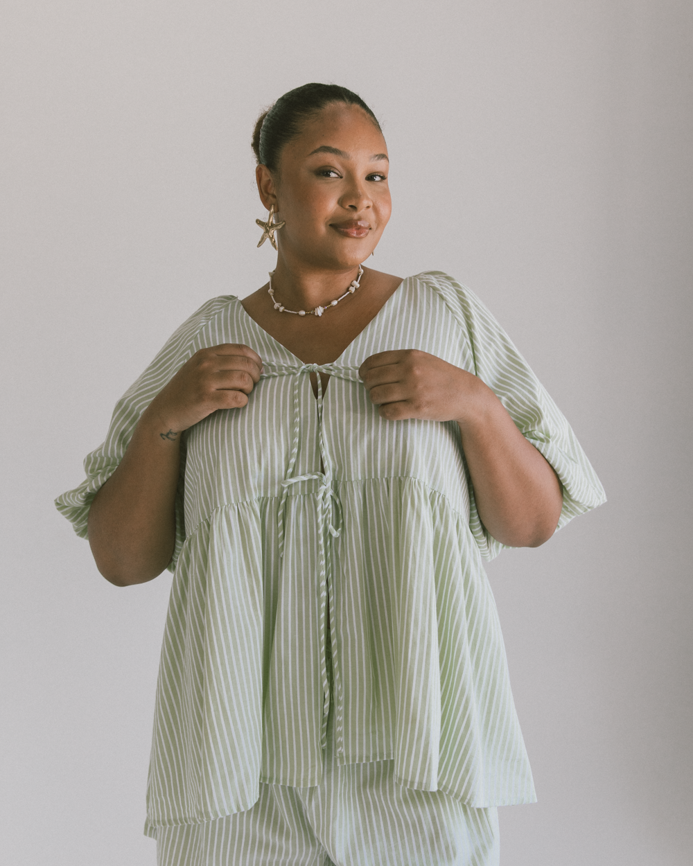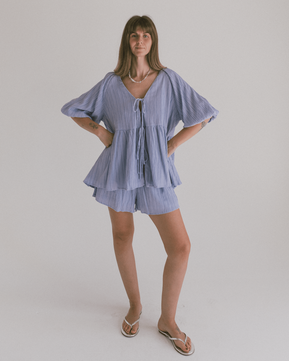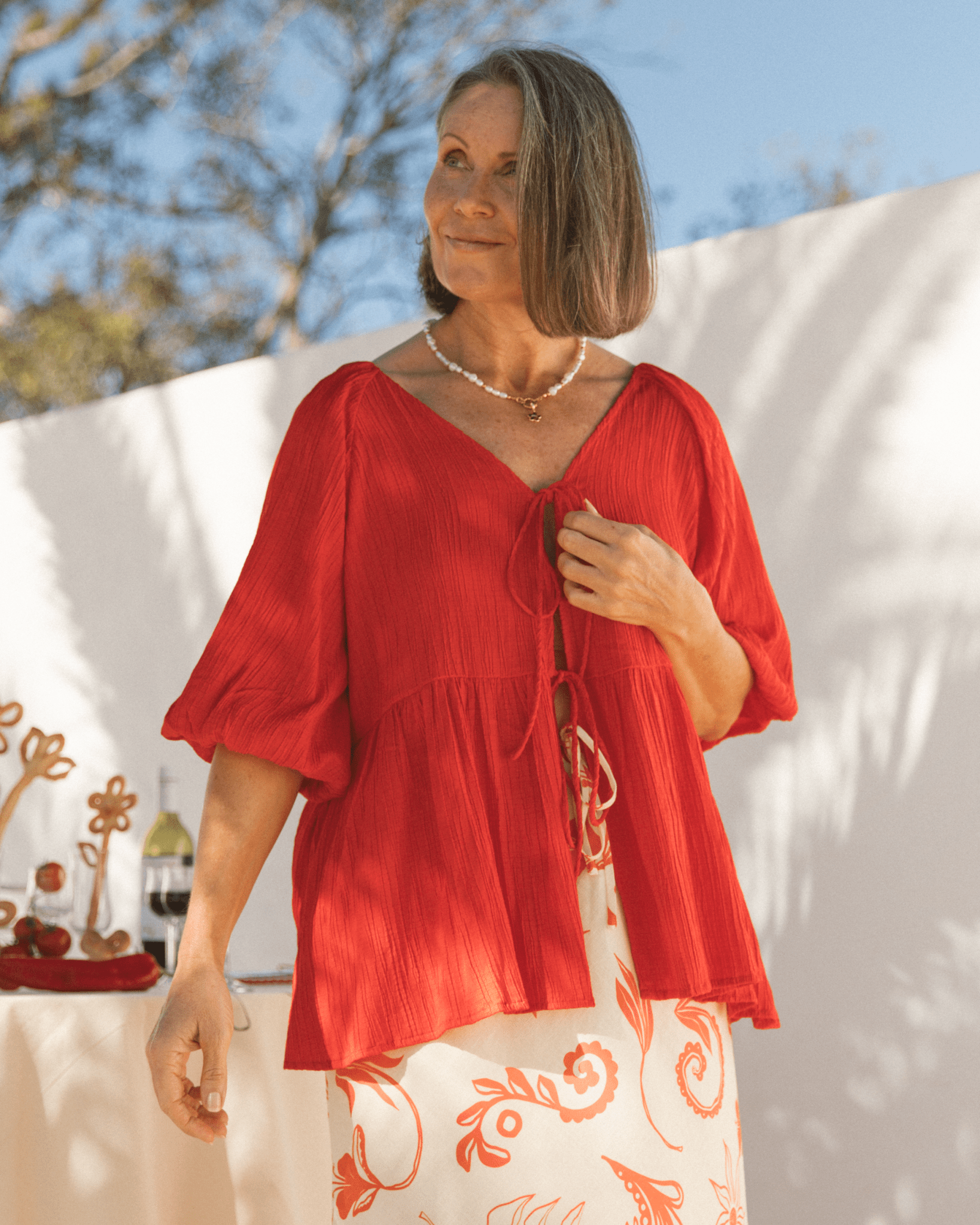 Crafted from a dreamy Viscose & Cotton blend fabric, the Frankie Top is your new everyday go-to with main character charm. Featuring a cross-over bust, floaty puff sleeves, and a cute front-tie moment, she’s breezy, easy, and ready for whatever your day throws at you.