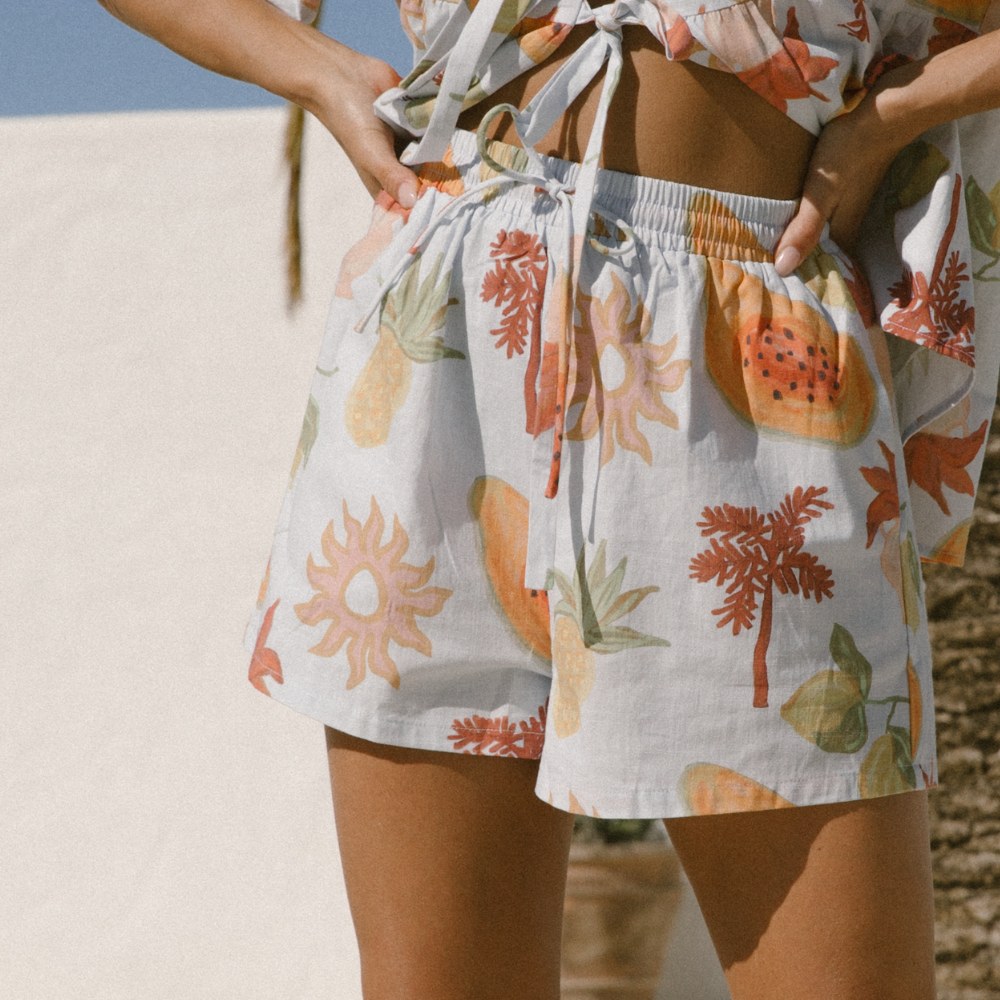 From bed to beach and everywhere in between — the Matilda Shorts are here to make getting dressed feel like a treat, not a chore. With their easy boxy shape, elastic drawstring waist and those essential pockets (because we all need somewhere to stash snacks), these shorts are comfort with main-character energy.