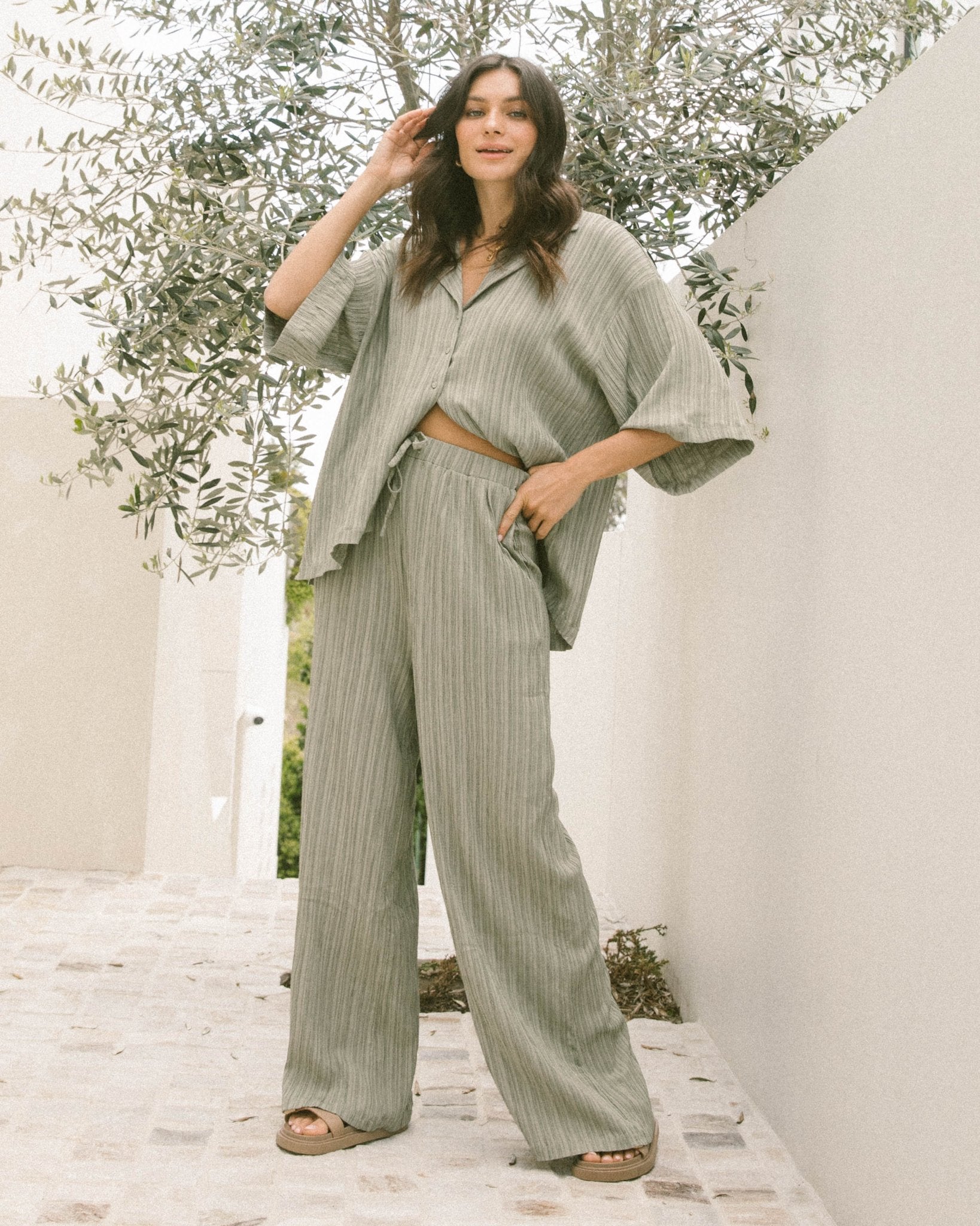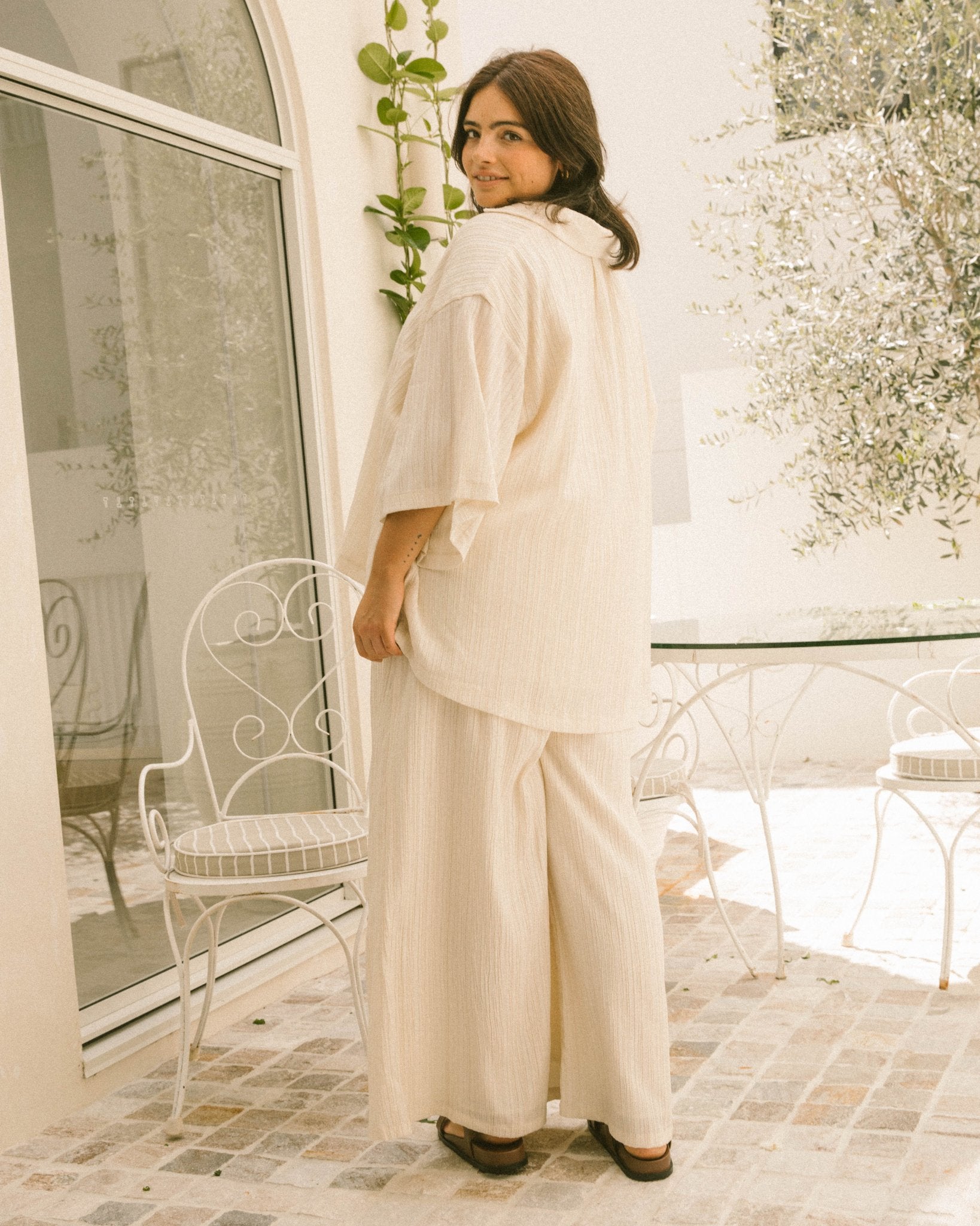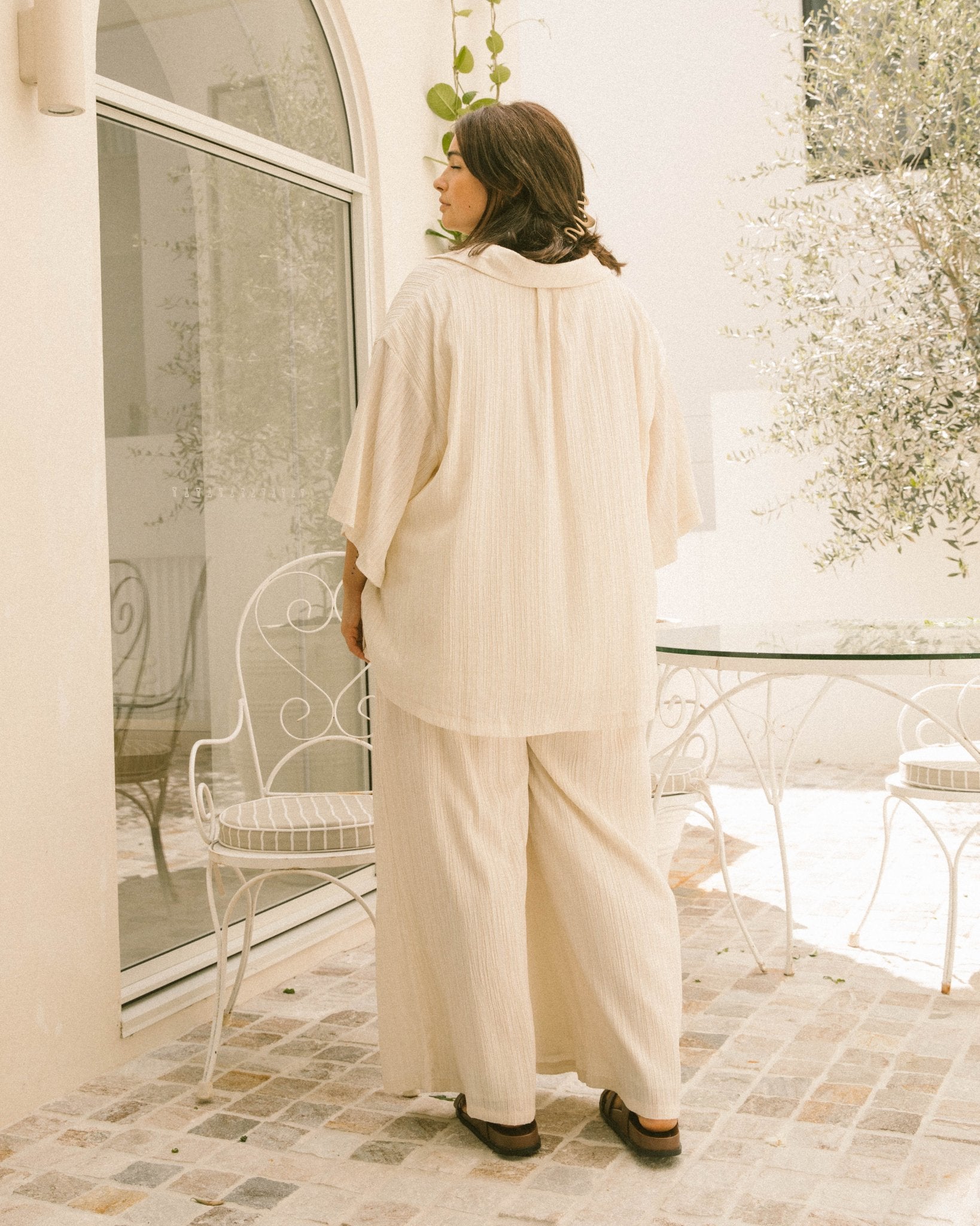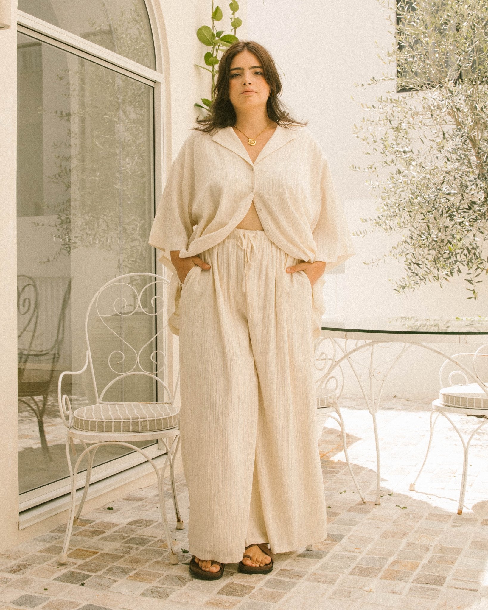 The Lacey Shirt brings oversized, comfy style to the mix, while the reversible Florence Top is the perfect throw-on-and-go piece. Everything’s made from breathable 30% Linen and 70% Viscose fabrics, keeping you comfy while still looking put together.