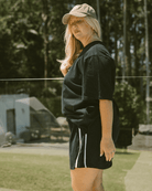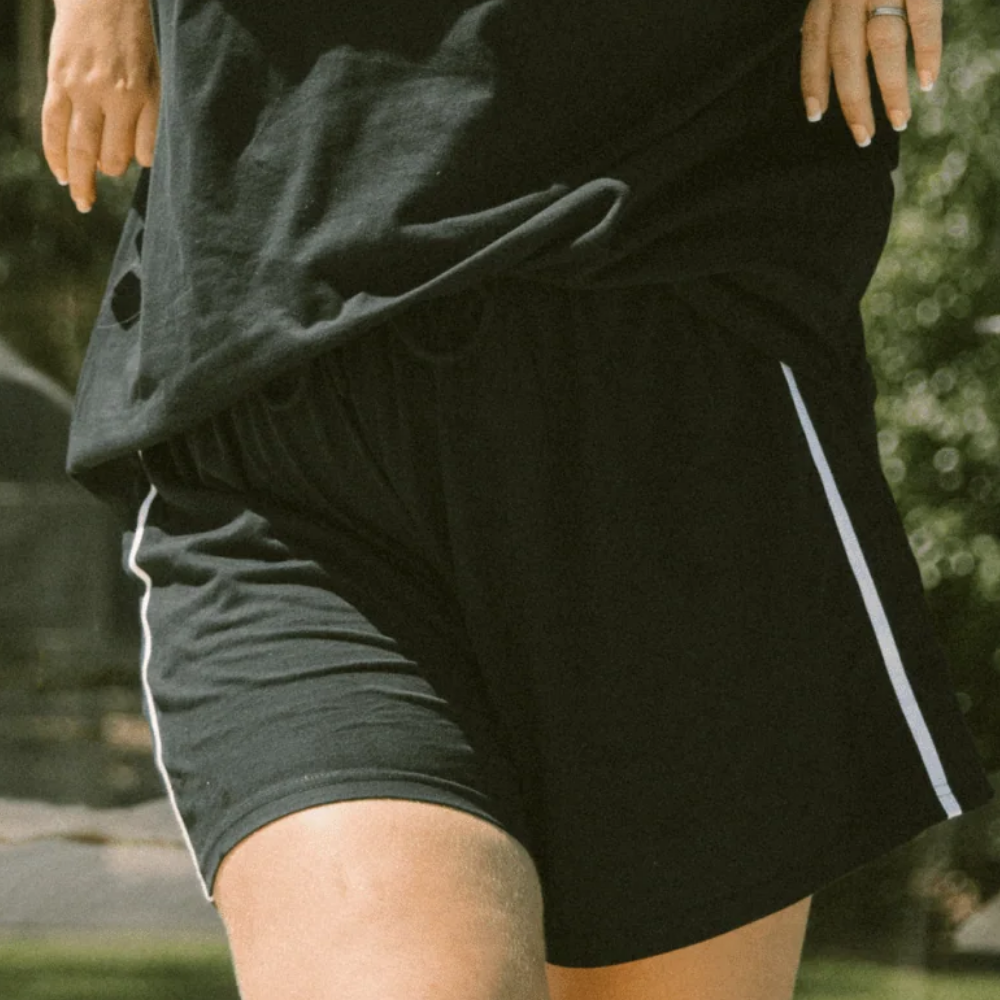 These aren’t just any lounge shorts. Ridiculously soft & stretches in all the right places and stays breathable when life gets a little sweaty. The high-rise elastic waist is there to love you through every snack break, toddler wrangle and “I forgot we had swimming today” moment.