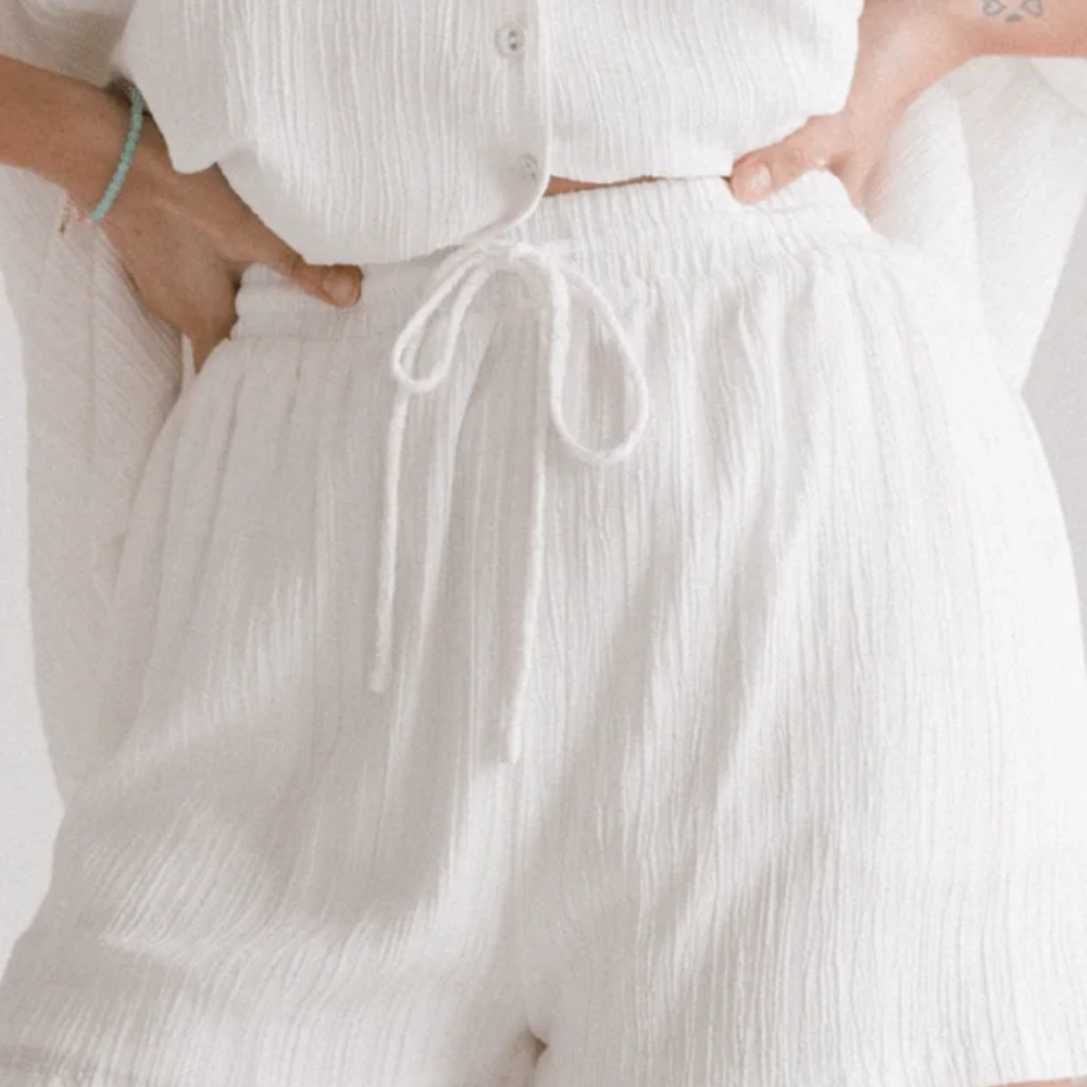 Your White Crepe Matilda Shorts are breezy, boxy, and ready to keep up with everything from beach days to snack runs. Here’s how to keep them looking fresh and comfy: