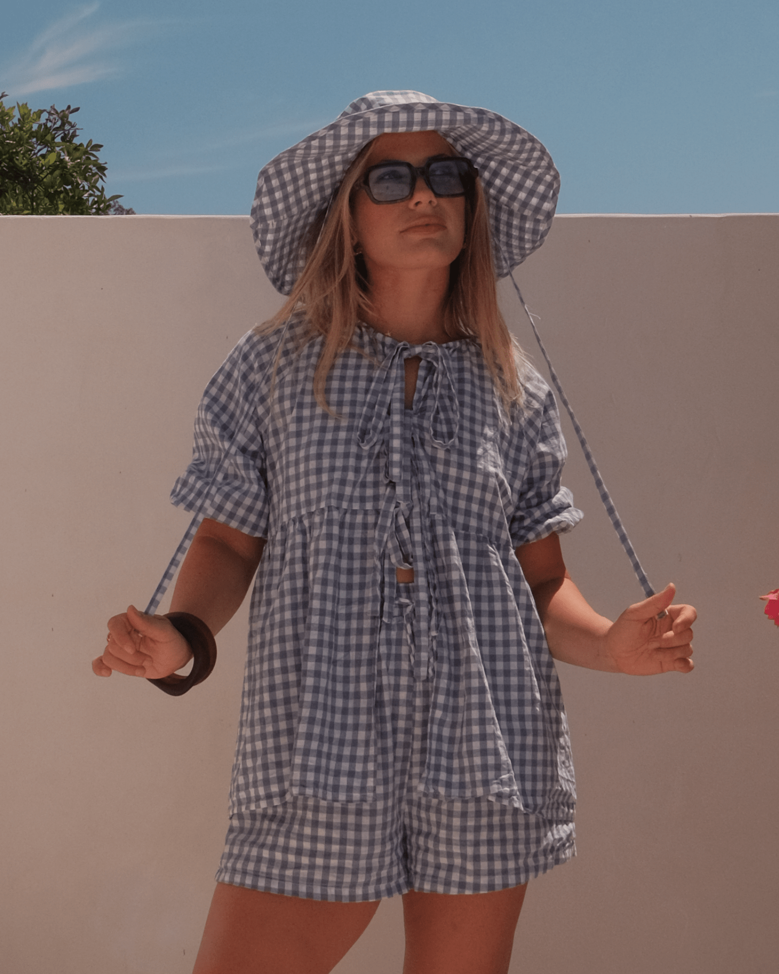 Meet your new sunny-day sidekick. Our Lullaby Sun Hat is made from 100% breathable cotton, so it’s lightweight, comfy, and perfect for all-day wear. Designed with an adjustable inner drawstring, you can tighten or loosen it for the perfect fit (because one size doesn’t always fit all). The flexible wire rim lets you shape the brim however you like — flip it up for that playful beach look or angle it down for maximum shade. Pair it with your favourite lounge set or floaty dress for that effortless “I just threw this on” vibe.
