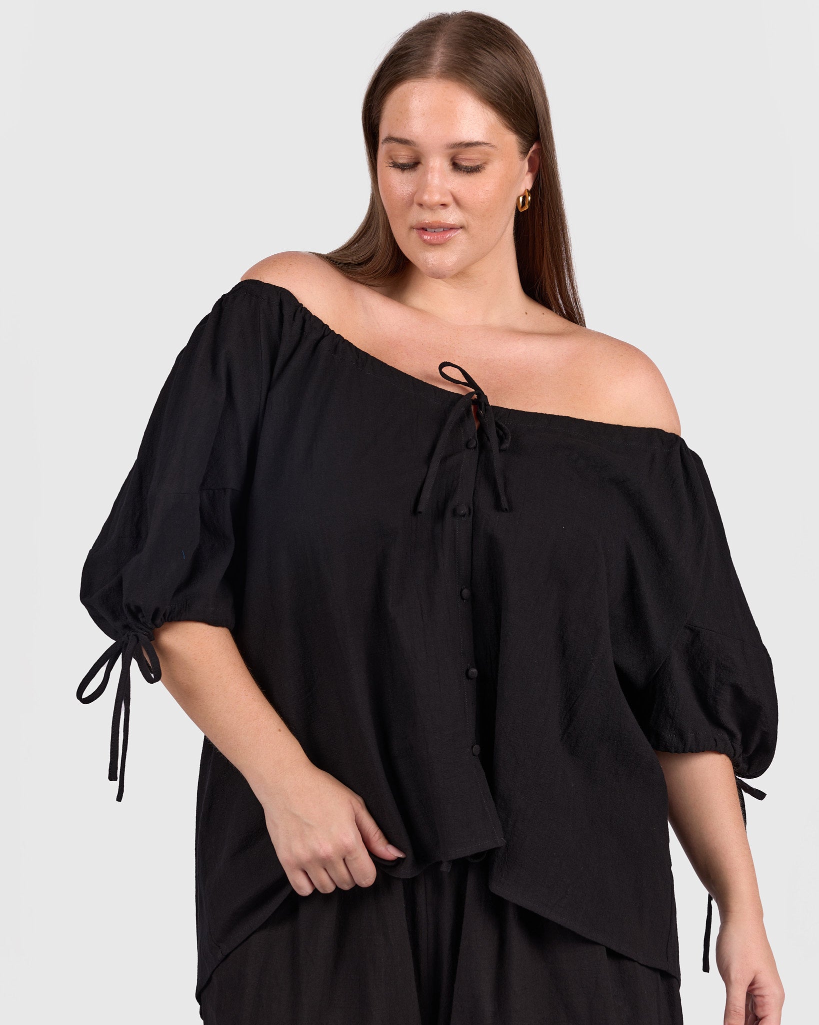 The Harvey Top in Black is your go-to for effortless, everyday dressing. Crafted from 100% breathable cotton, it feels lightweight, soft, and comfortable from morning to night.
