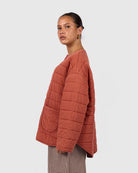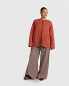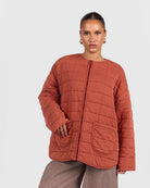 The Zip Quilted Jacket in Rust is your cosy layer that still feels cool. Designed with an oversized fit and soft quilted texture, it is the kind of jacket you throw on and instantly feel put together, even on the busiest days.
