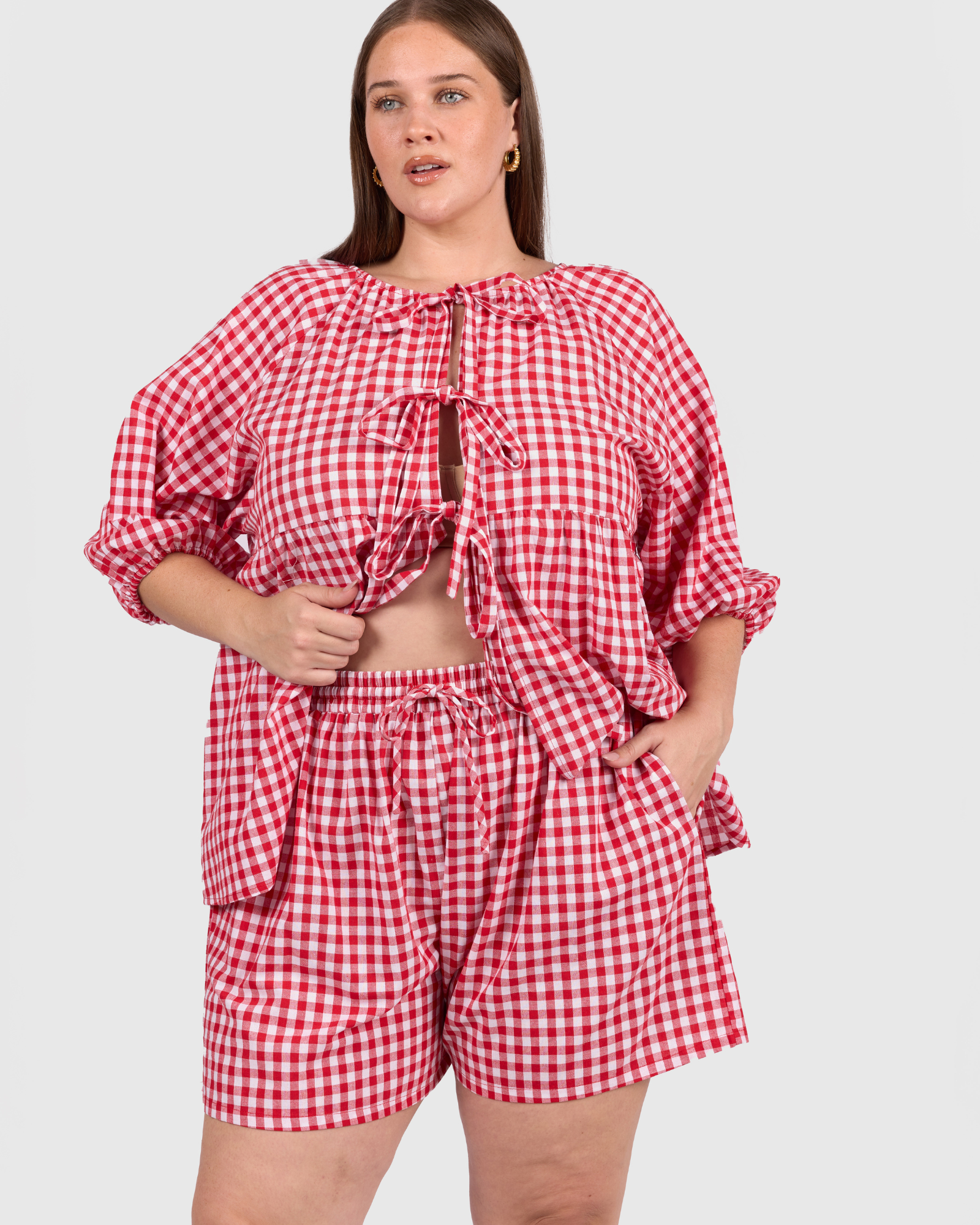 From bed to beach and everywhere in between — the Matilda Shorts are here to make getting dressed feel like a treat, not a chore. With their easy boxy shape, elastic drawstring waist and those essential pockets (because we all need somewhere to stash snacks), these shorts are comfort with main-character energy.