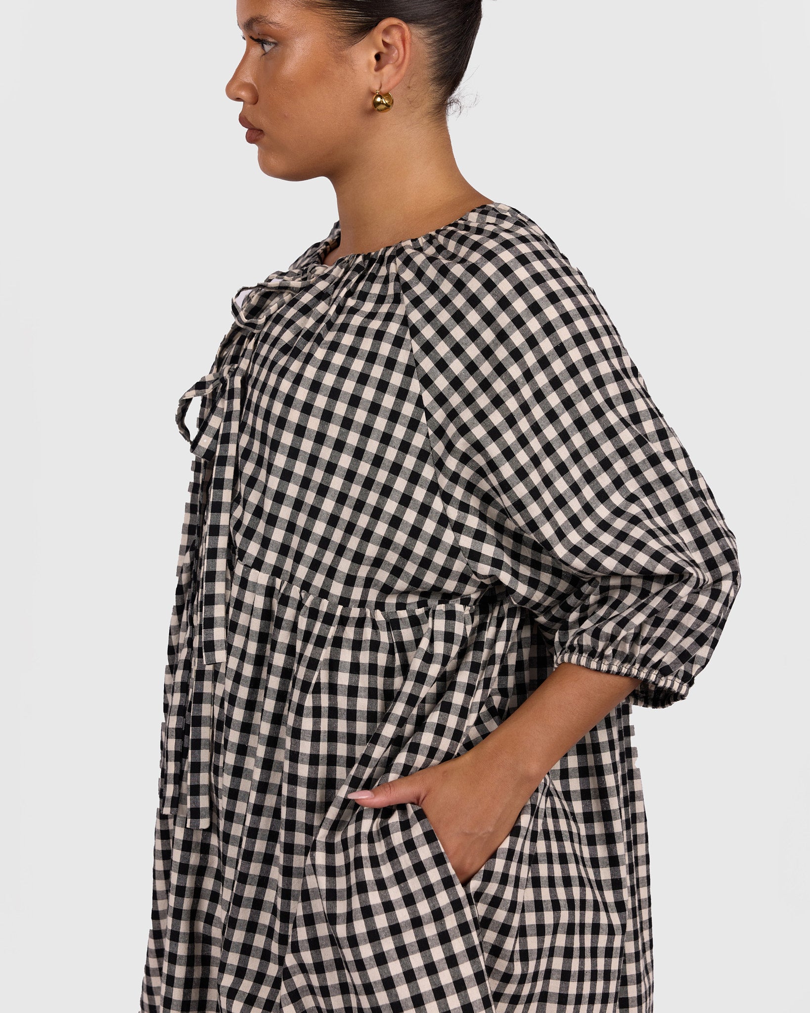 Maxi Avalon Smock Dress | Pink Gingham Embroidery
