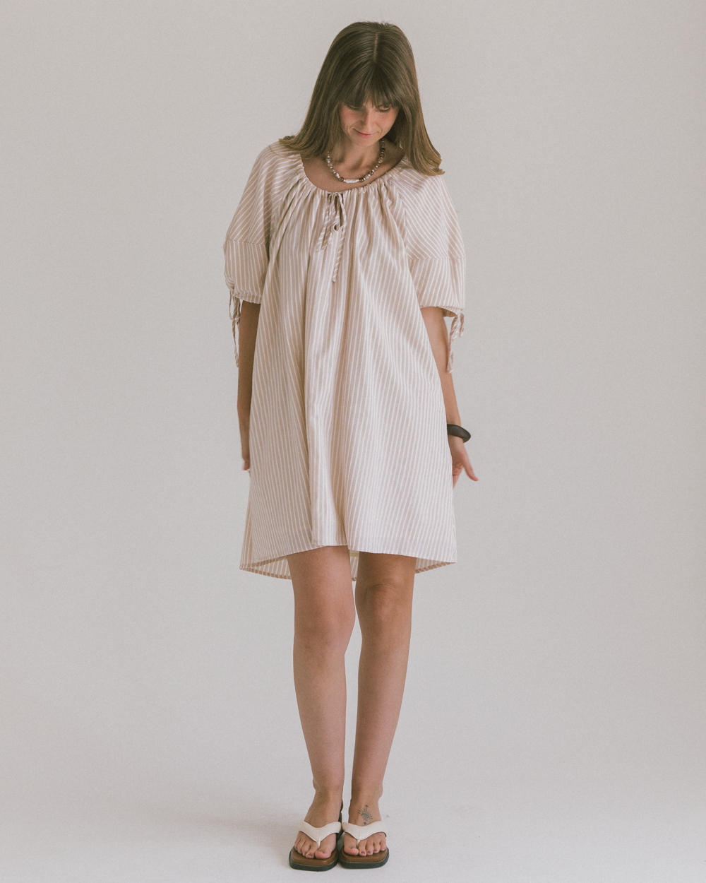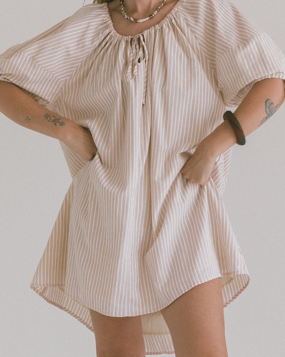 Harvey Mini Dress | Beige Stripe