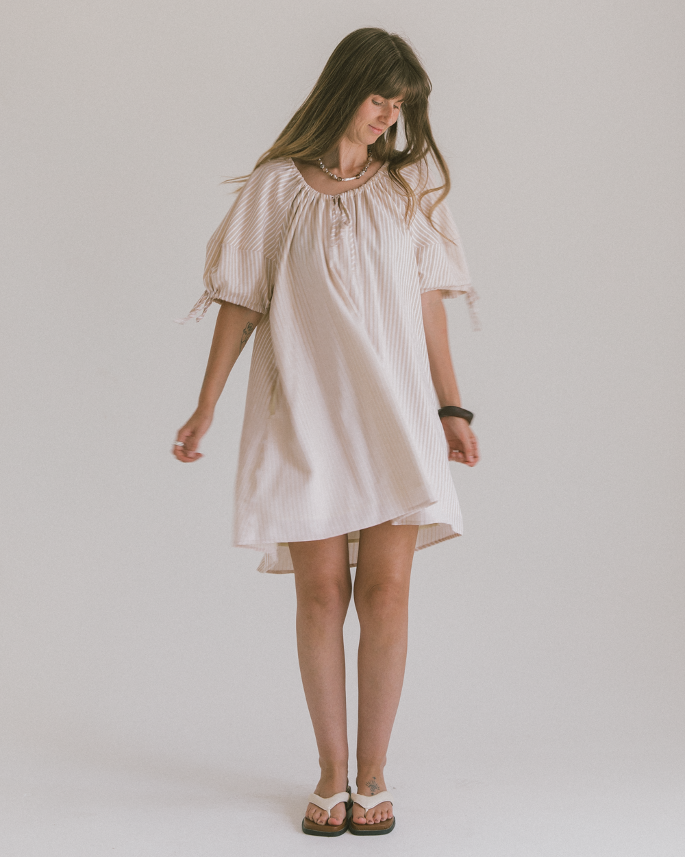 The Harvey Mini Dress is designed with an easy, relaxed silhouette that makes her an instant throw-on favourite. With her adjustable drawstring neckline and breathable cotton fabric, Harvey is equal parts playful and practical, moving with you through busy days and carefree nights.