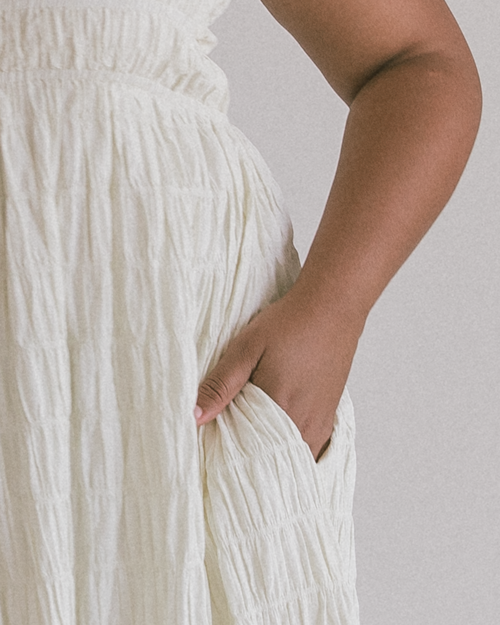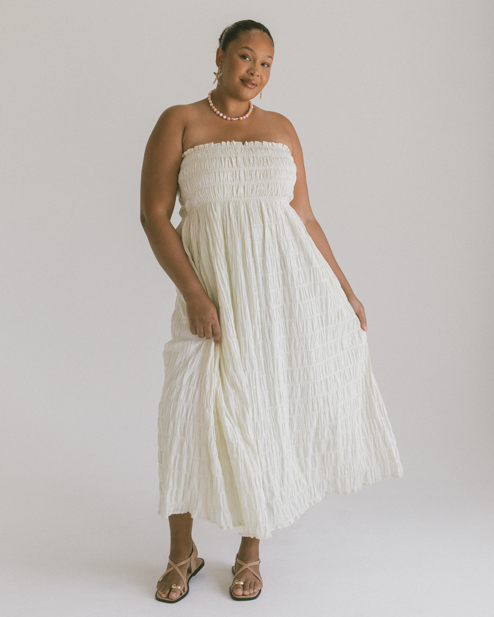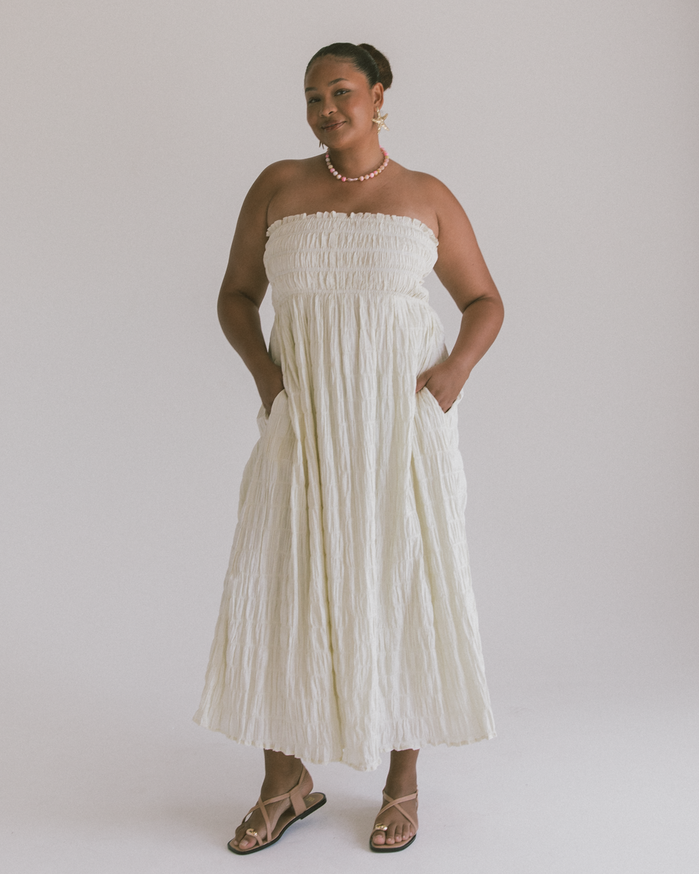 From long lunches to sunset strolls, the Mabel Maxi Dress was made for days when you want easy elegance without even trying. With her strapless neckline and shirred bust, she’s equal parts flattering and fuss free — the kind of piece you throw on and instantly feel put together, oh and did we mention side seam pockets? She's practical, comfy & a beauty.