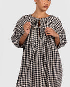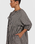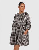 The Florence is a relaxed, flowing smock dress — less volume than the Avalon but still designed to feel effortless and easy. Most customers size down one to two sizes. Answer a few quick questions and we'll find your perfect fit.