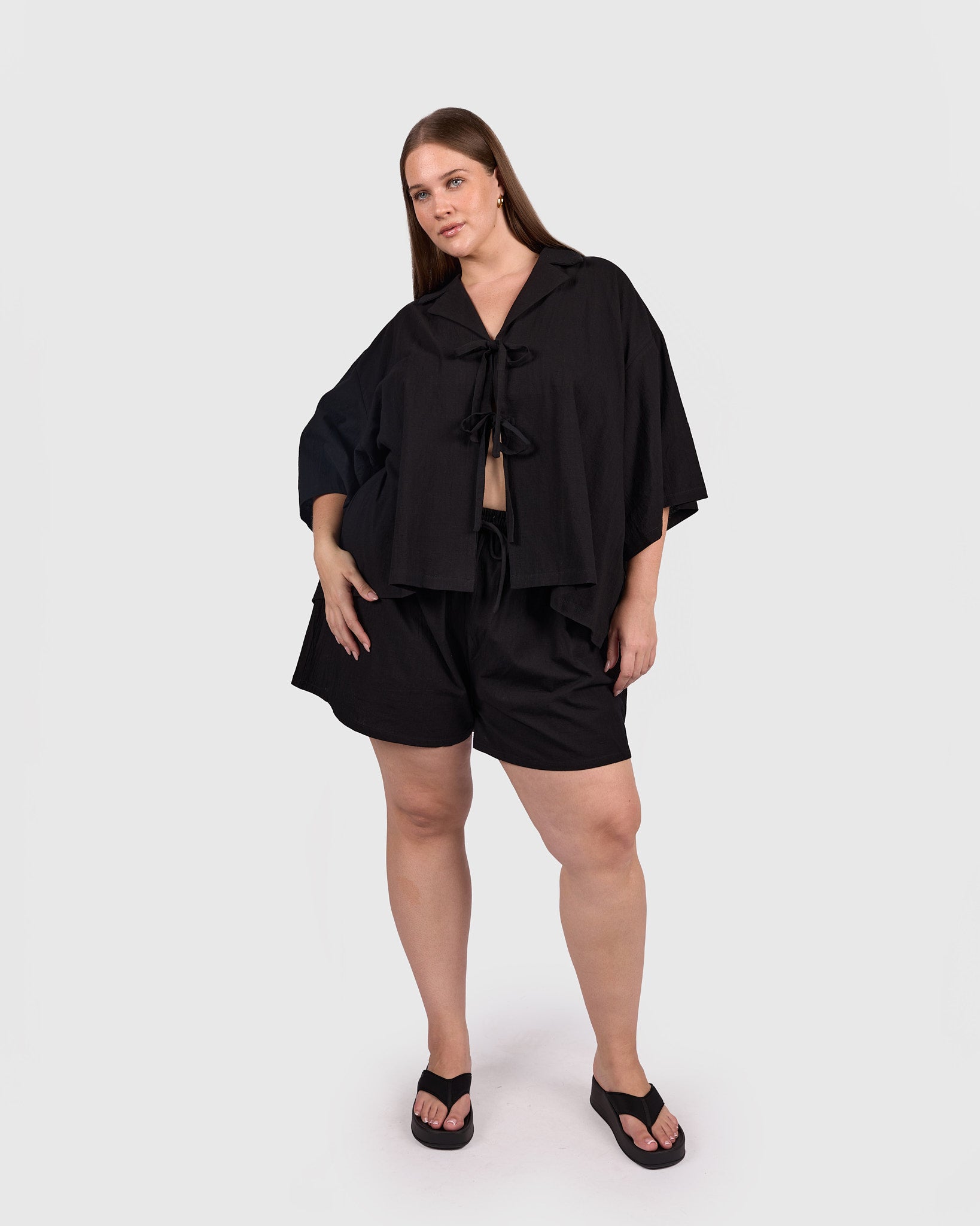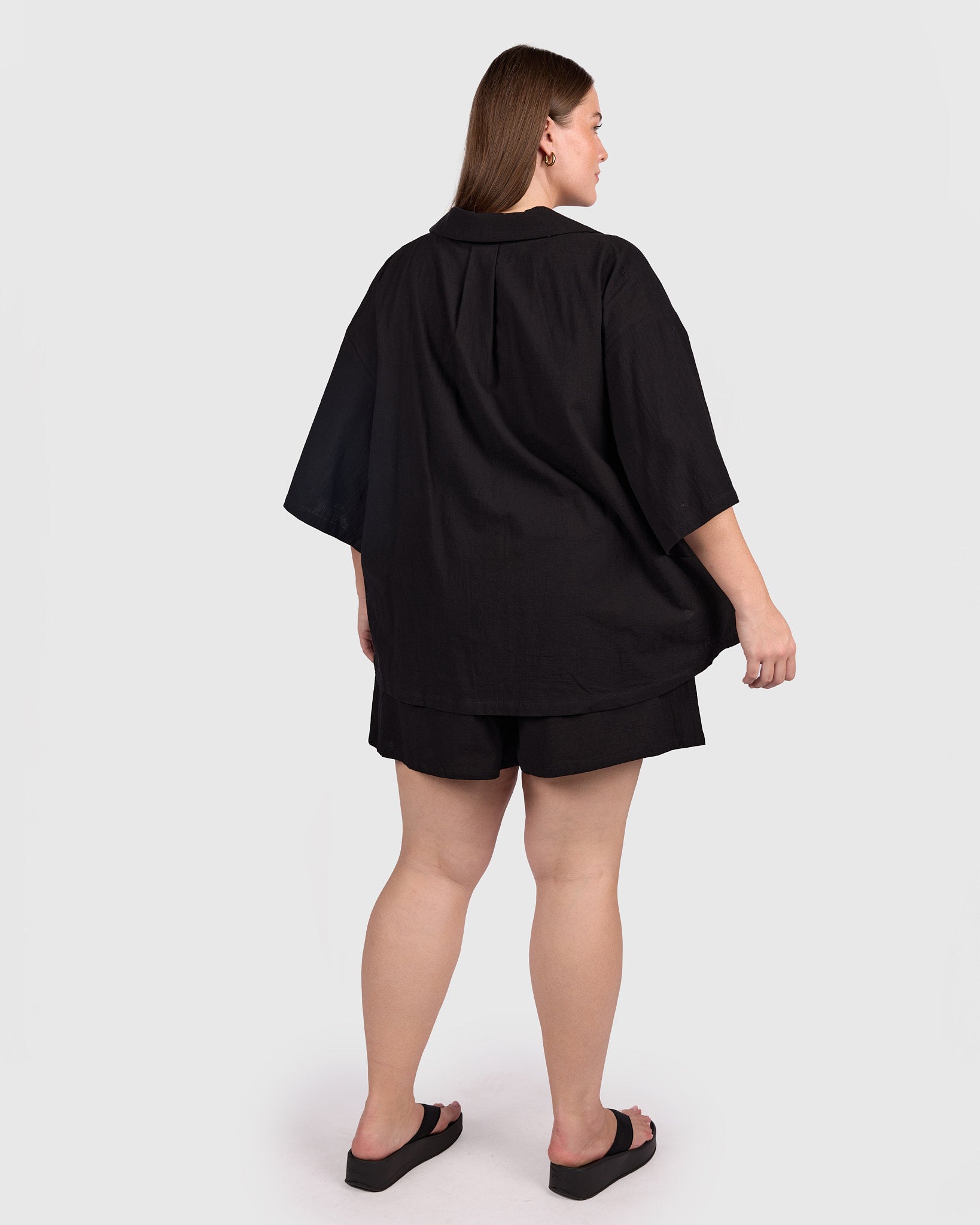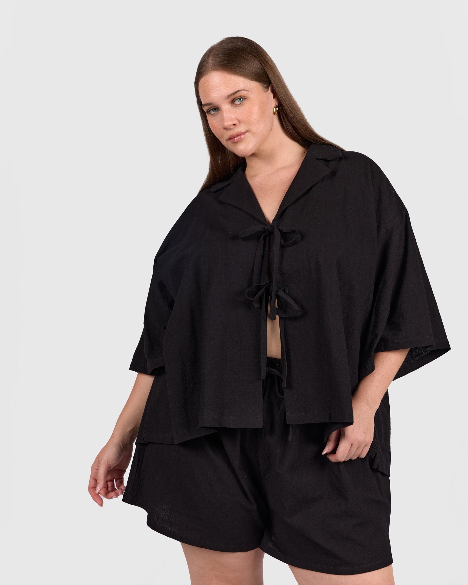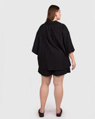 The Billie Shirt in Black is the kind of piece that makes getting dressed feel easy. Crafted from 100% breathable cotton, it is lightweight, airy, and softly drapey, giving you that relaxed, comfortable feel from the moment you put it on.