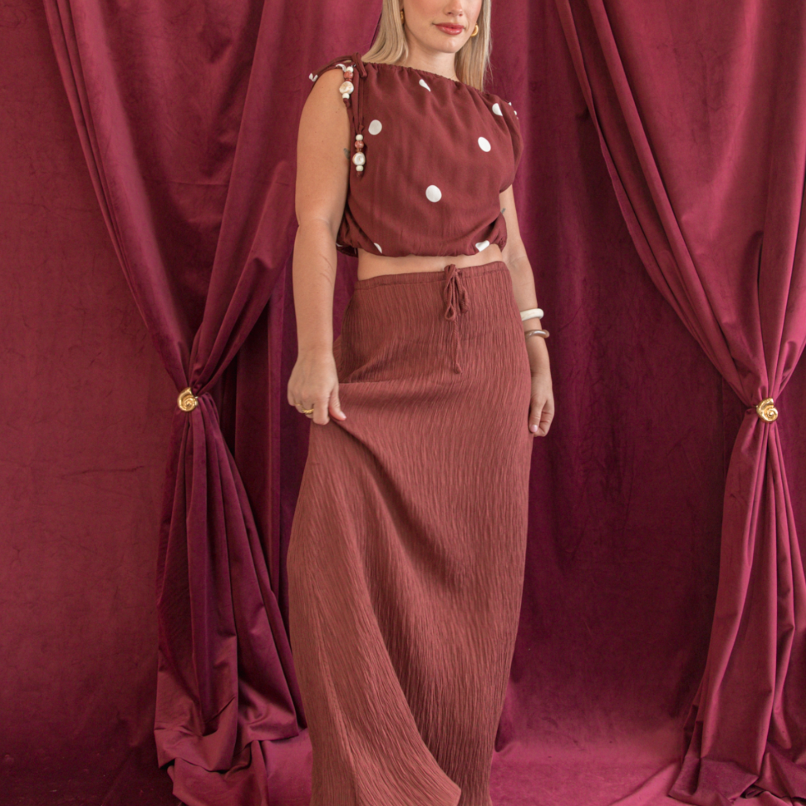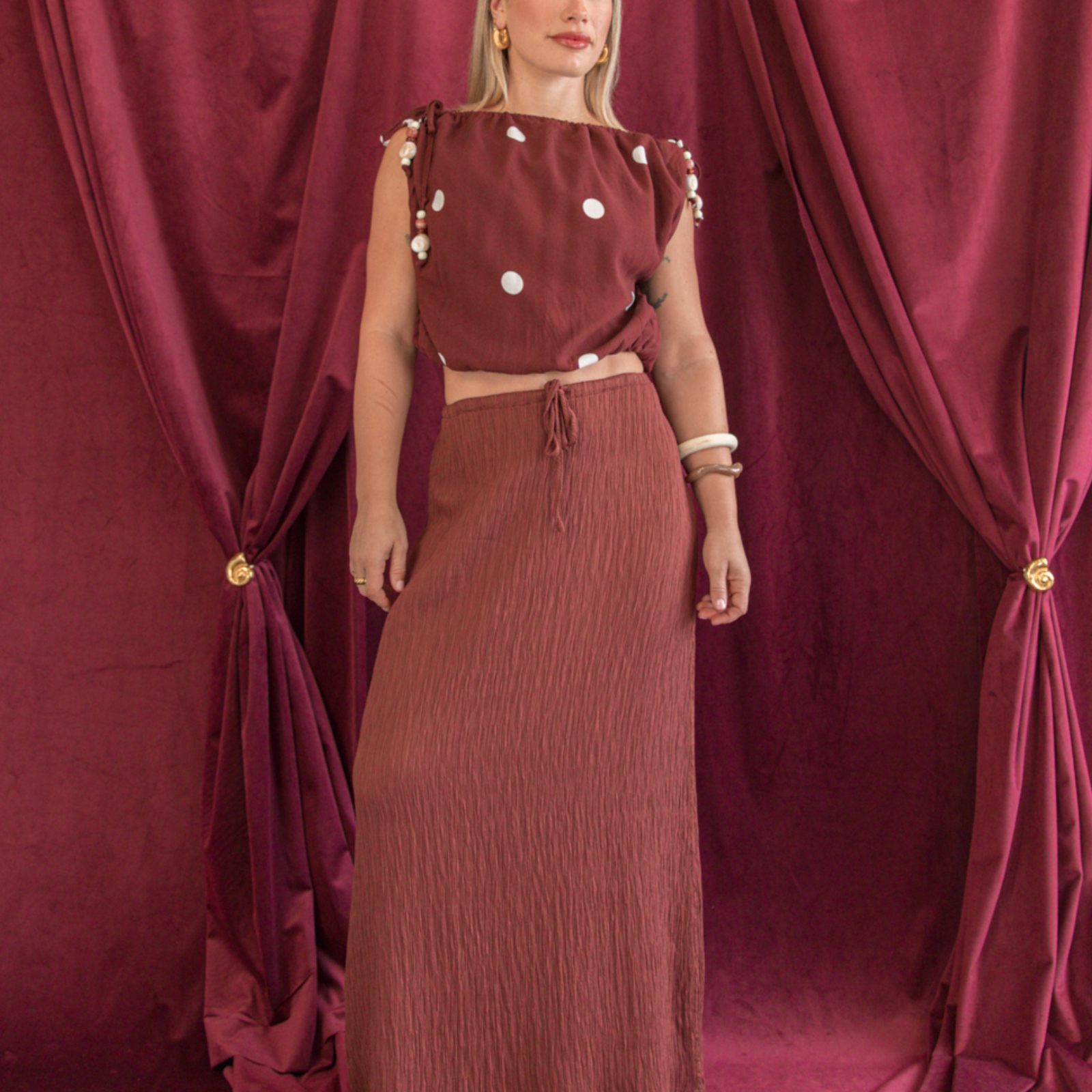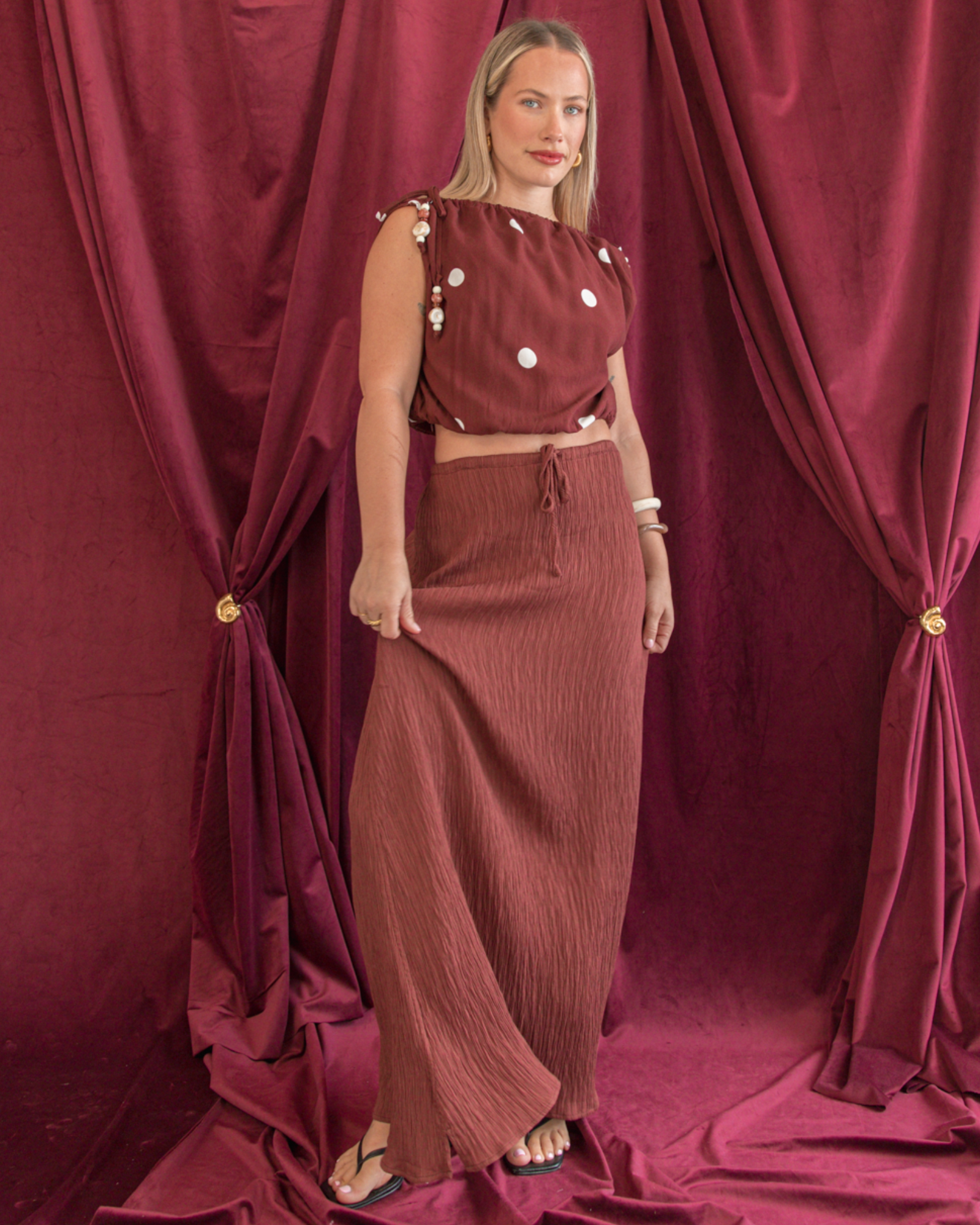 Meet the Lacey Skirt, a soft and endlessly wearable staple crafted from textured cotton seersucker in a rich mulberry hue. This beautiful maxi length skirt brings together ease and elegance, giving you a flowy, feminine silhouette that feels just as lovely as it looks.