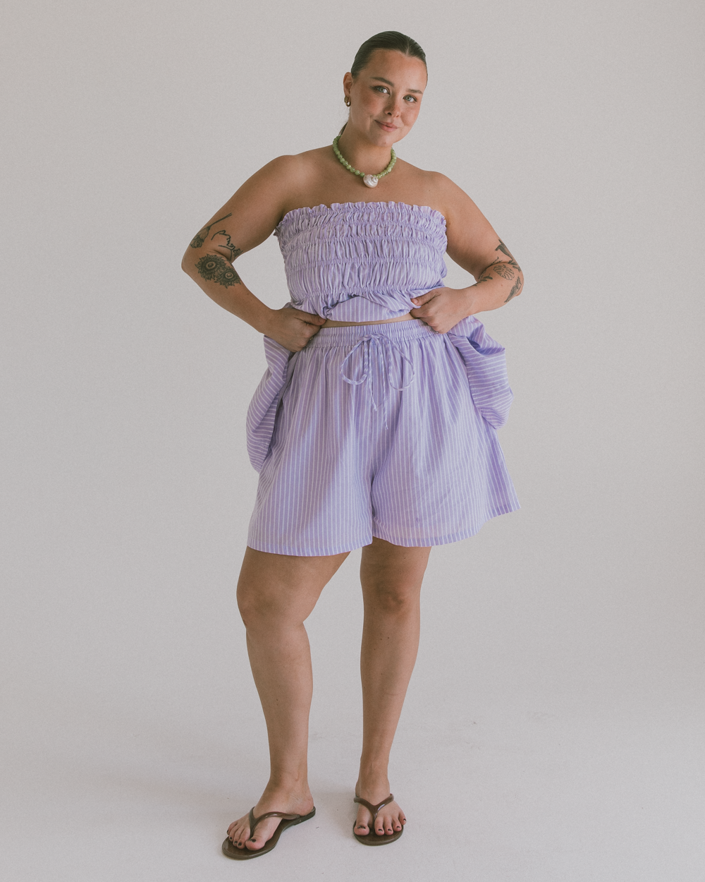 From bed to beach and everywhere in between — the Matilda Shorts are here to make getting dressed feel like a treat, not a chore. With their easy boxy shape, elastic drawstring waist and those essential pockets (because we all need somewhere to stash snacks), these shorts are comfort with main-character energy.