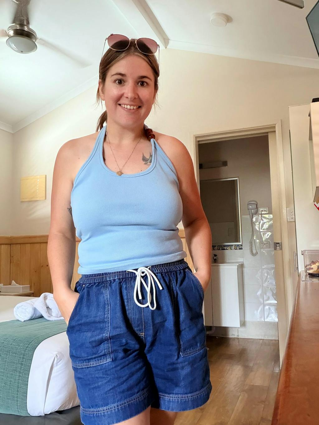 Style Chloe with wide-leg pants for laid-back chic, or pair her with denim and slides for an easy everyday look. She’s the halter you’ll want on repeat.