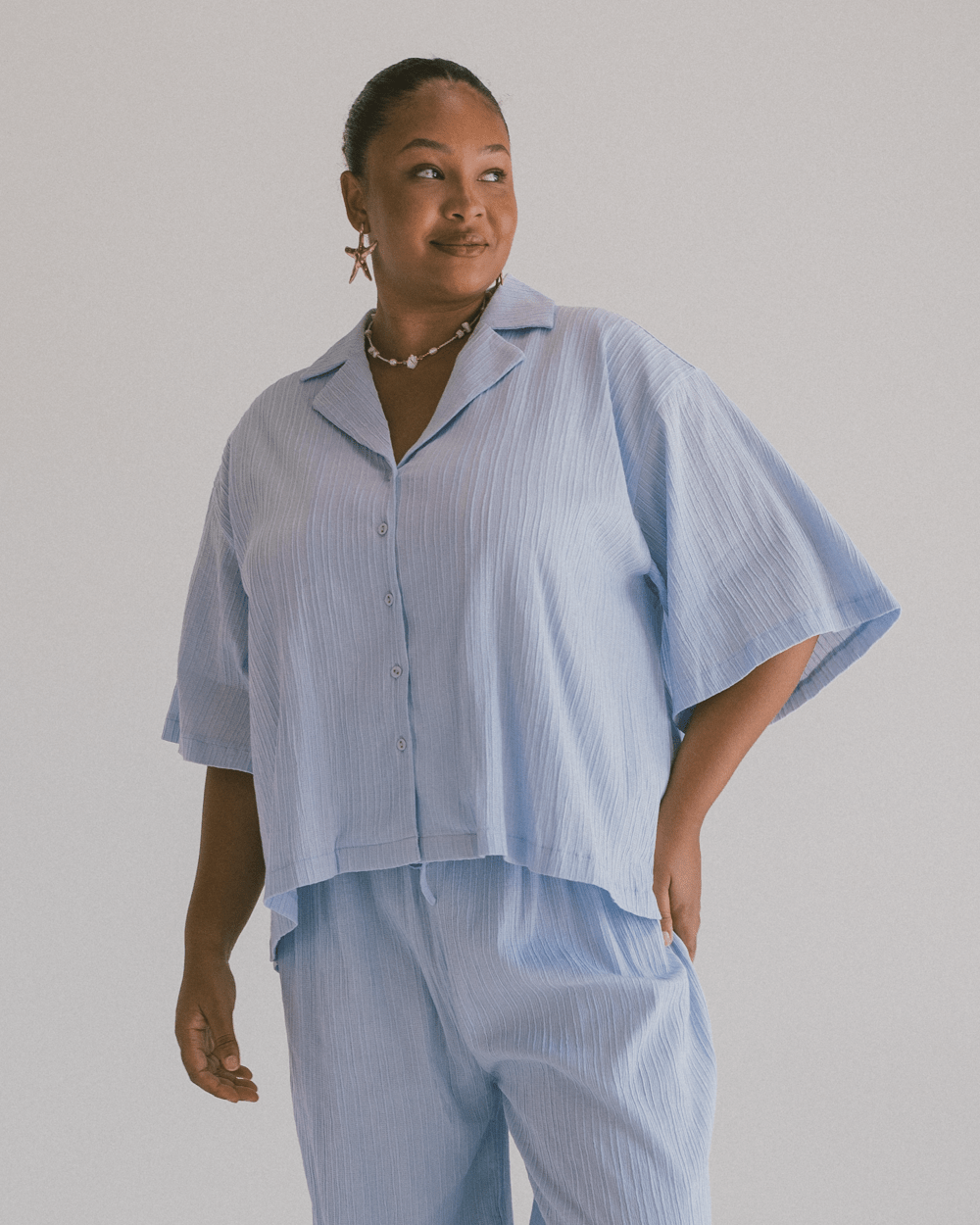 Meet your new forever favourite: the Lacey Shirt. You know the girl in high school that was cool without trying to be? This is her. Oversized, drapey in all the right places, and easy to throw on – it’s giving main character with minimal effort.