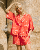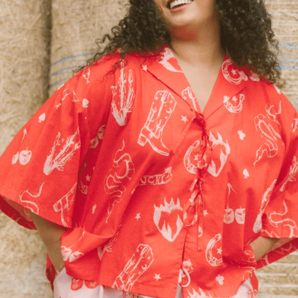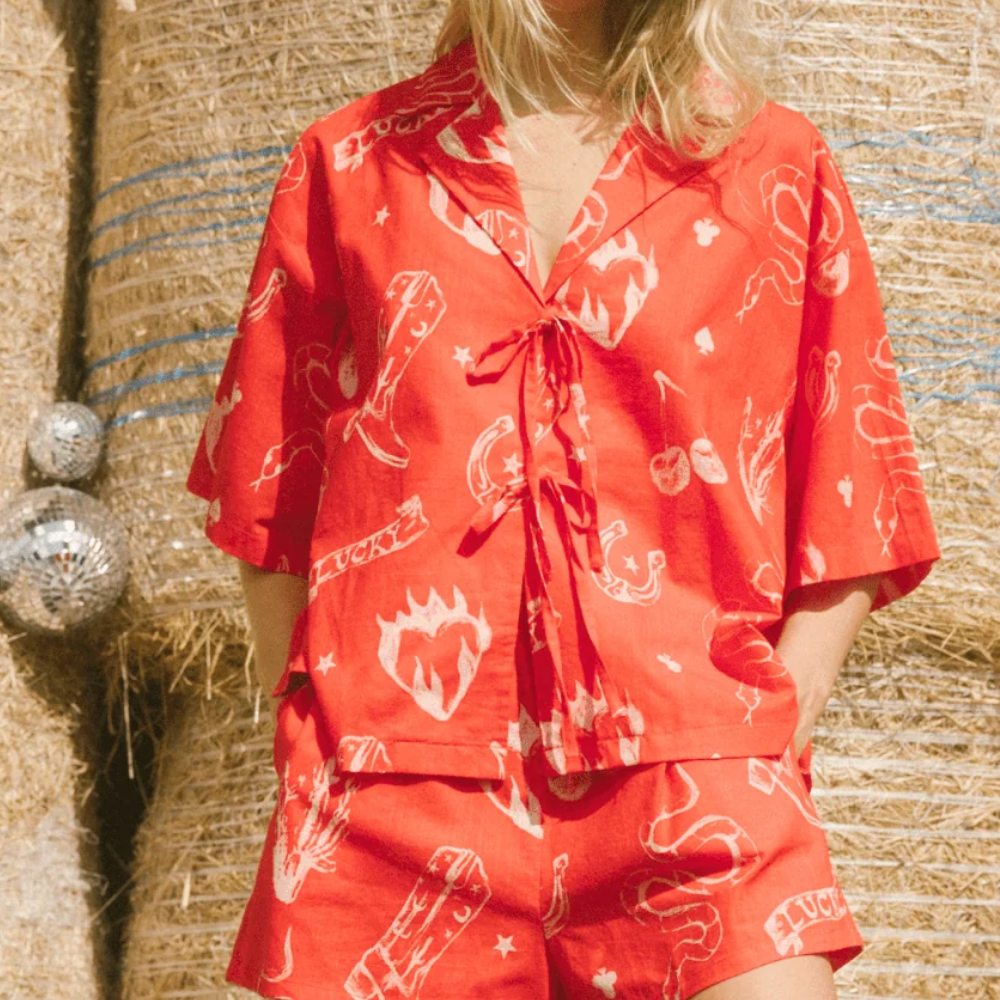Tied at the front or thrown on open over swimwear — Billie doesn’t try too hard, she just is cool. Featuring our exclusive Wildhearts Design Parlour print and a breezy silhouette, she’s the kind of piece that instantly upgrades your “just popping out” look to something a little more main-character.