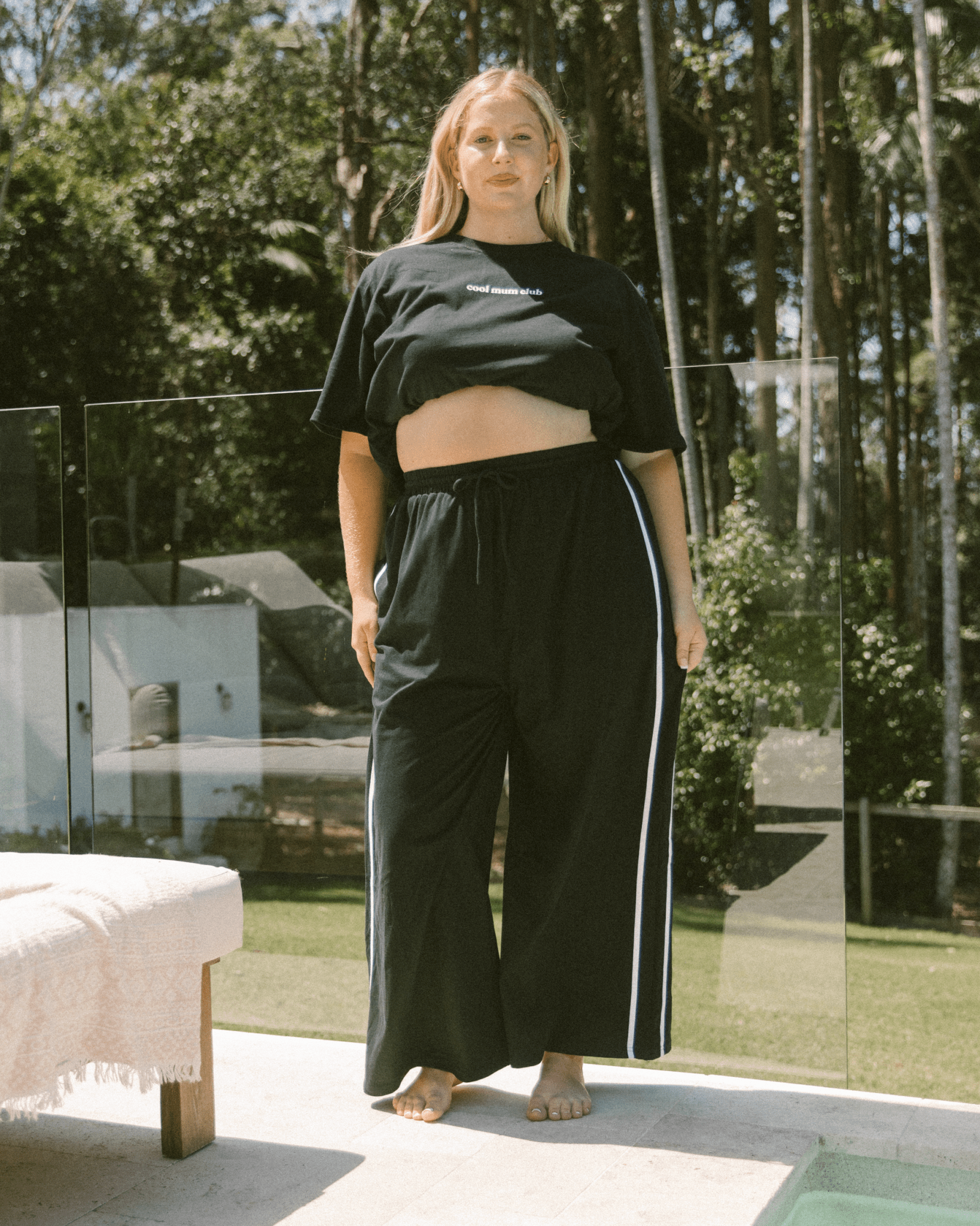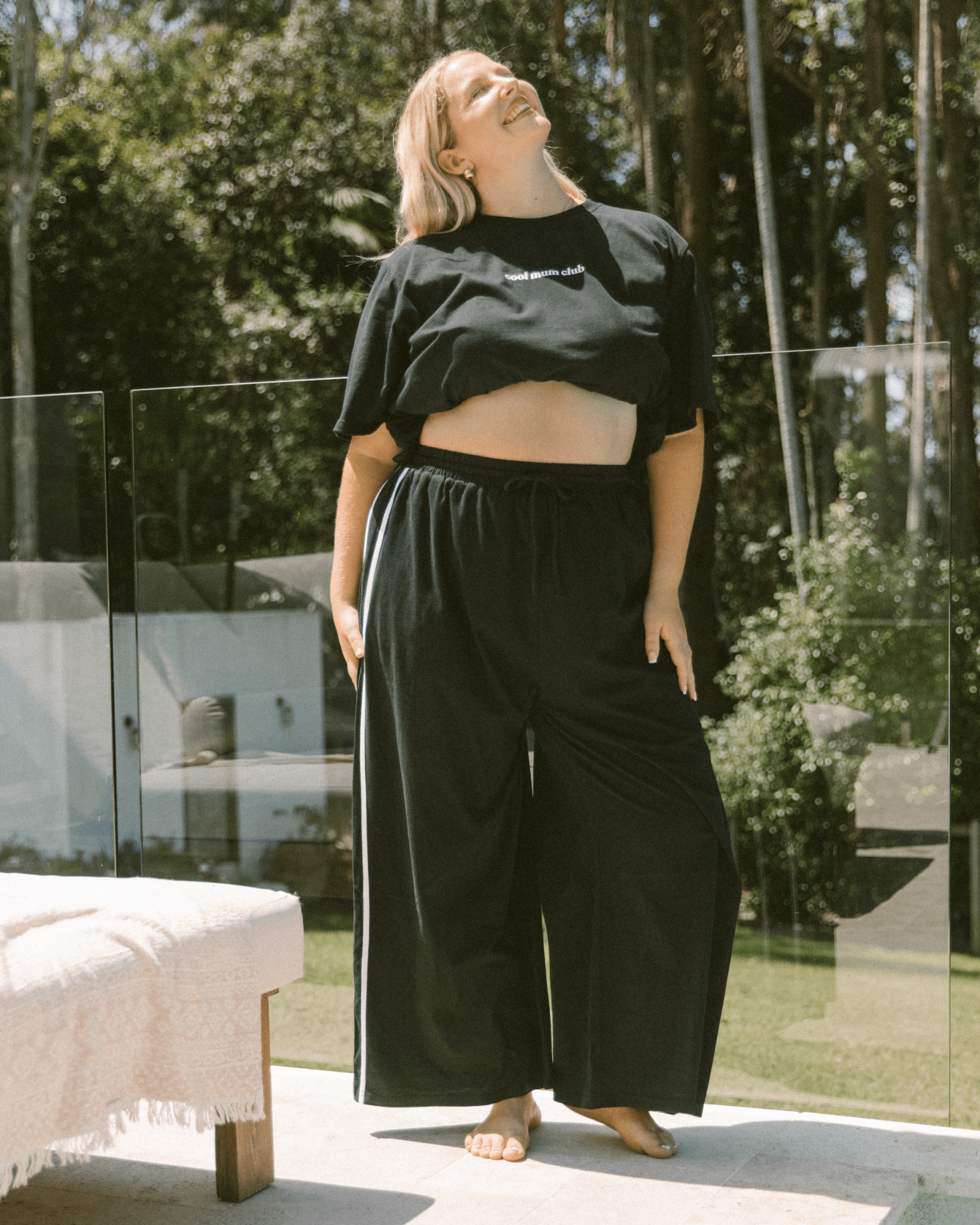 Pregnancy belly, postpartum body, or just big brunch energy—these pants flex with you. The soft, elastic waistband moves with your shape so you’ll never feel squeezed, pinched, or like you need to undo a button.
