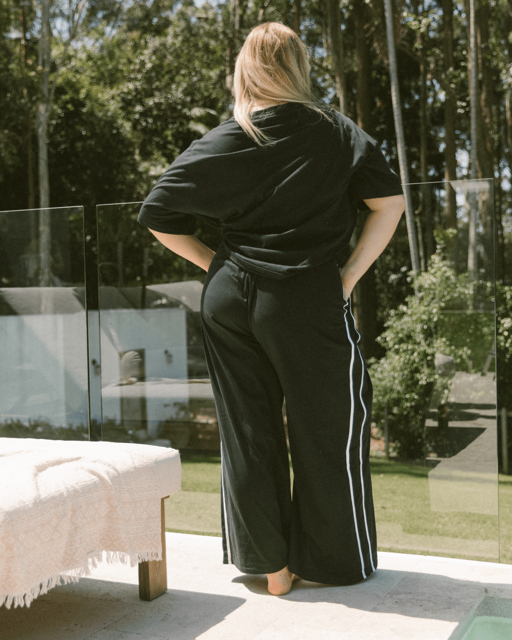 Buttery, light, breathable, and basically feel like wearing a cloud. The high elastic waistband keeps things comfy without squeezing, while the wide-leg fit gives total flowy freedom — perfect for chasing kids, chilling on the couch, or doing the “just one quick thing” kind of errands.