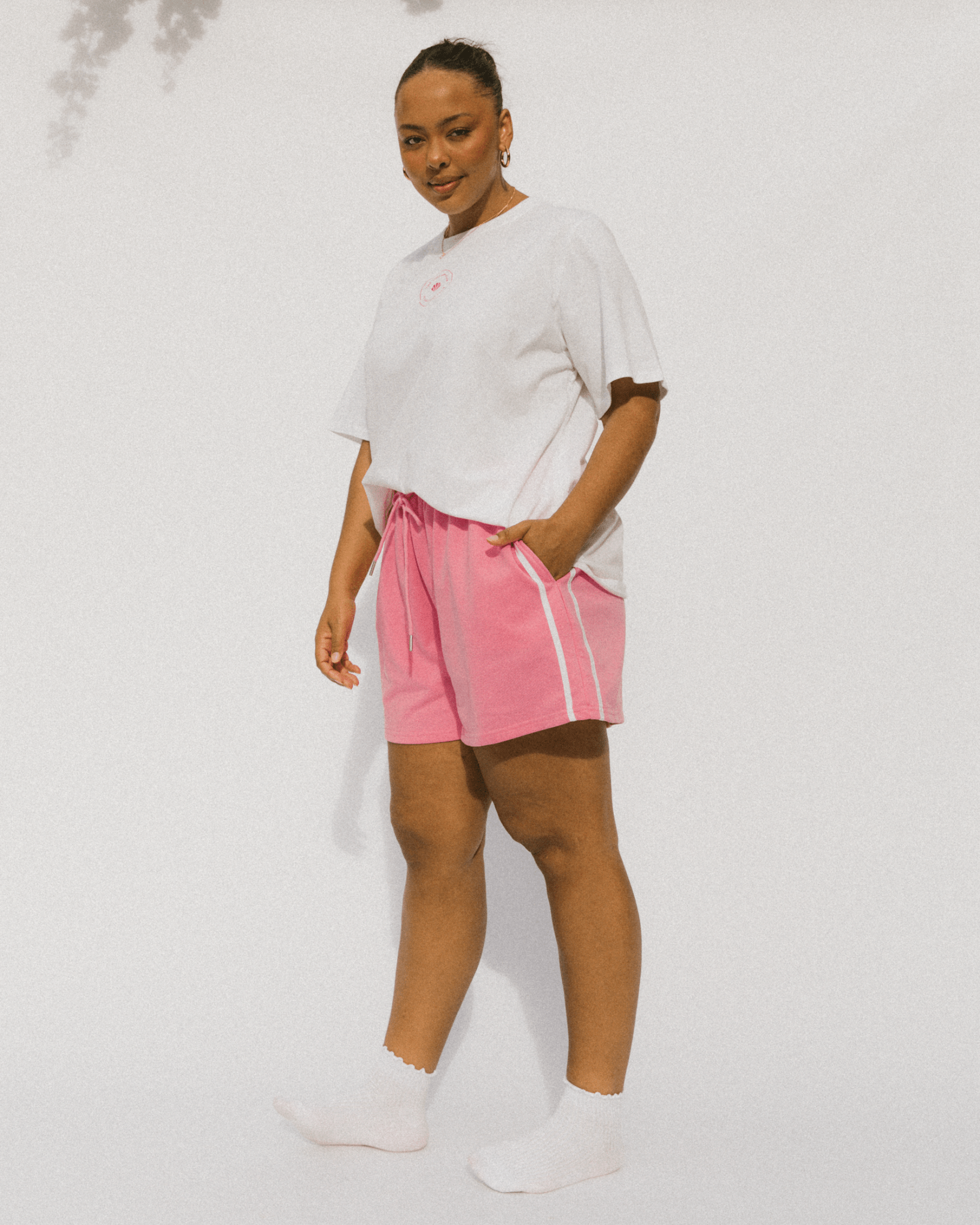 The TLC Essentials tee provides a classic style with its oversized fit, slouchy shoulders, crew neckline, and boxy silhouette. It also features breastfeeding access. Pair it with our Essentials Lounge Pants or shorts.