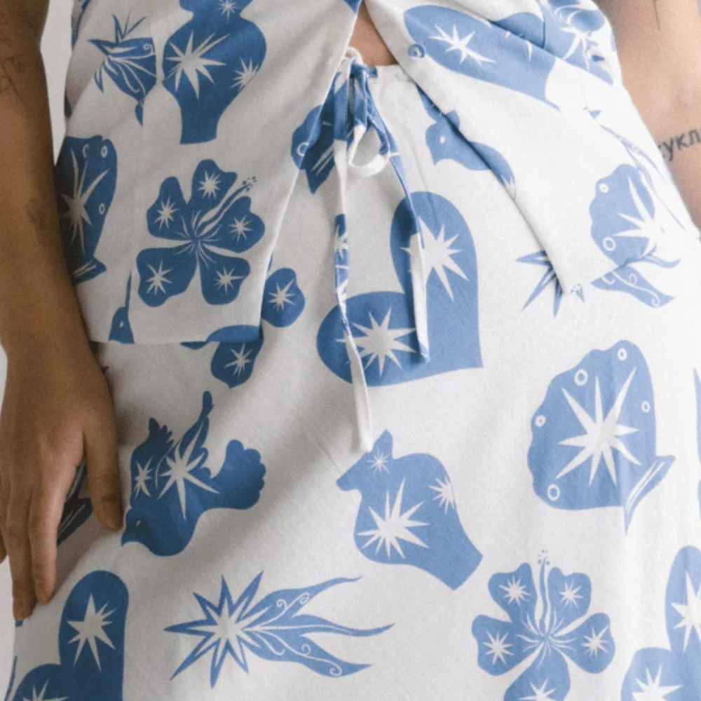 Covered in our exclusive Starstruck print (designed to make compliments inevitable), this skirt is here to bring the vibe whether you’re dressing it up or chucking on slides and going barefoot in the backyard.