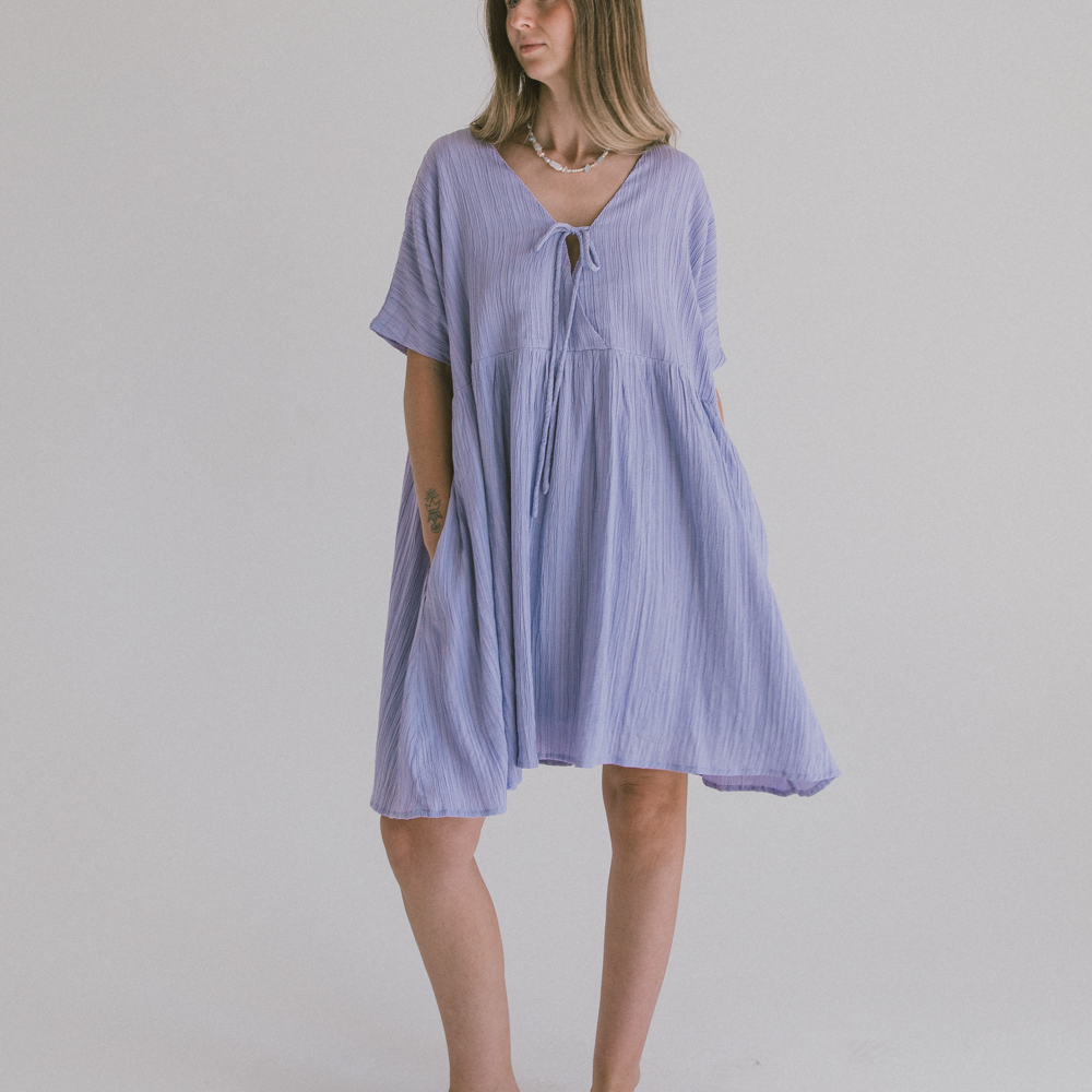 The Lainey Dress is an oversized smock made from soft fabric with pockets, a front tie detail, and all the comfort you could want. Perfect for everyday wear, weekends, or holiday escapes.