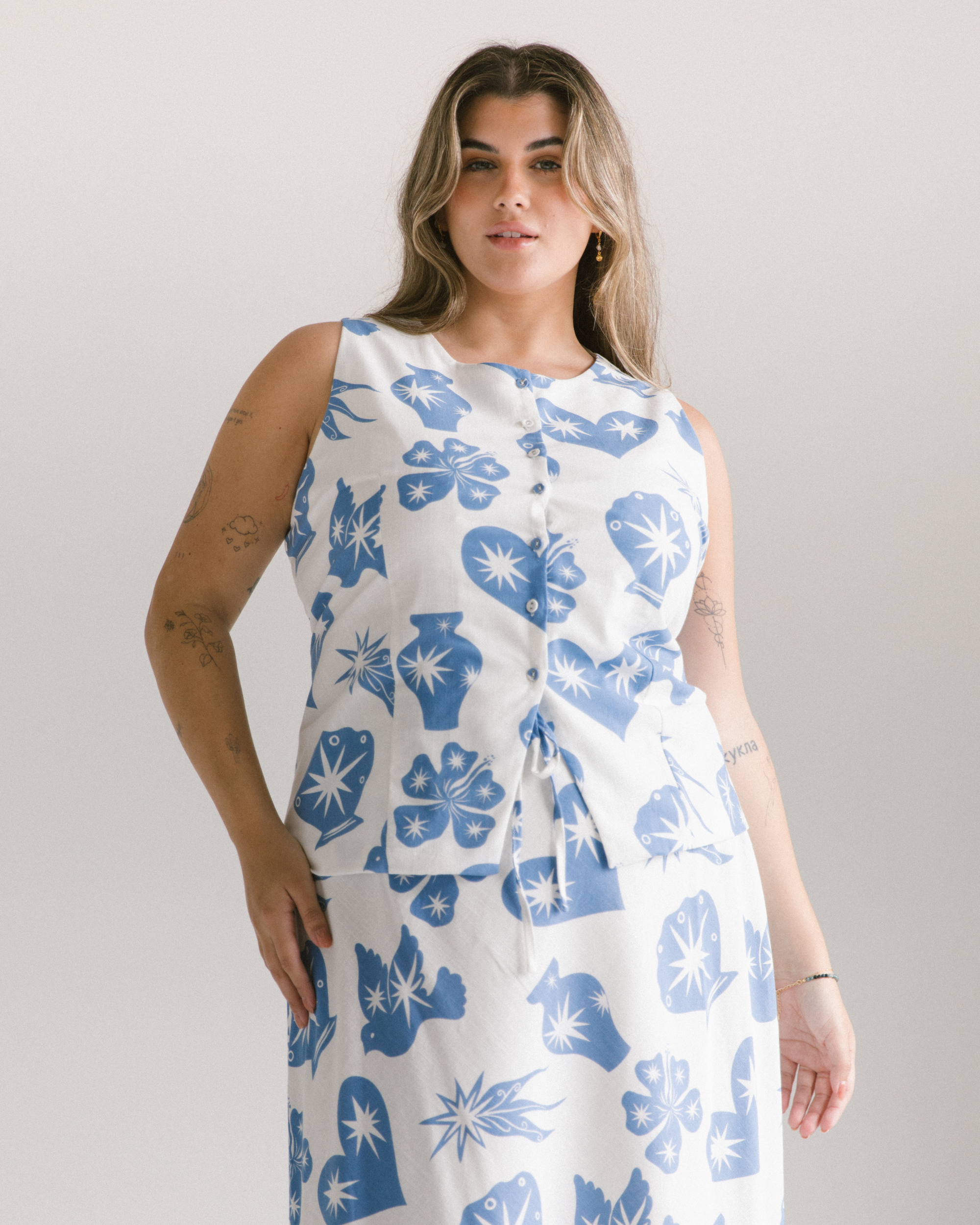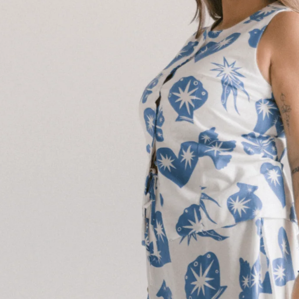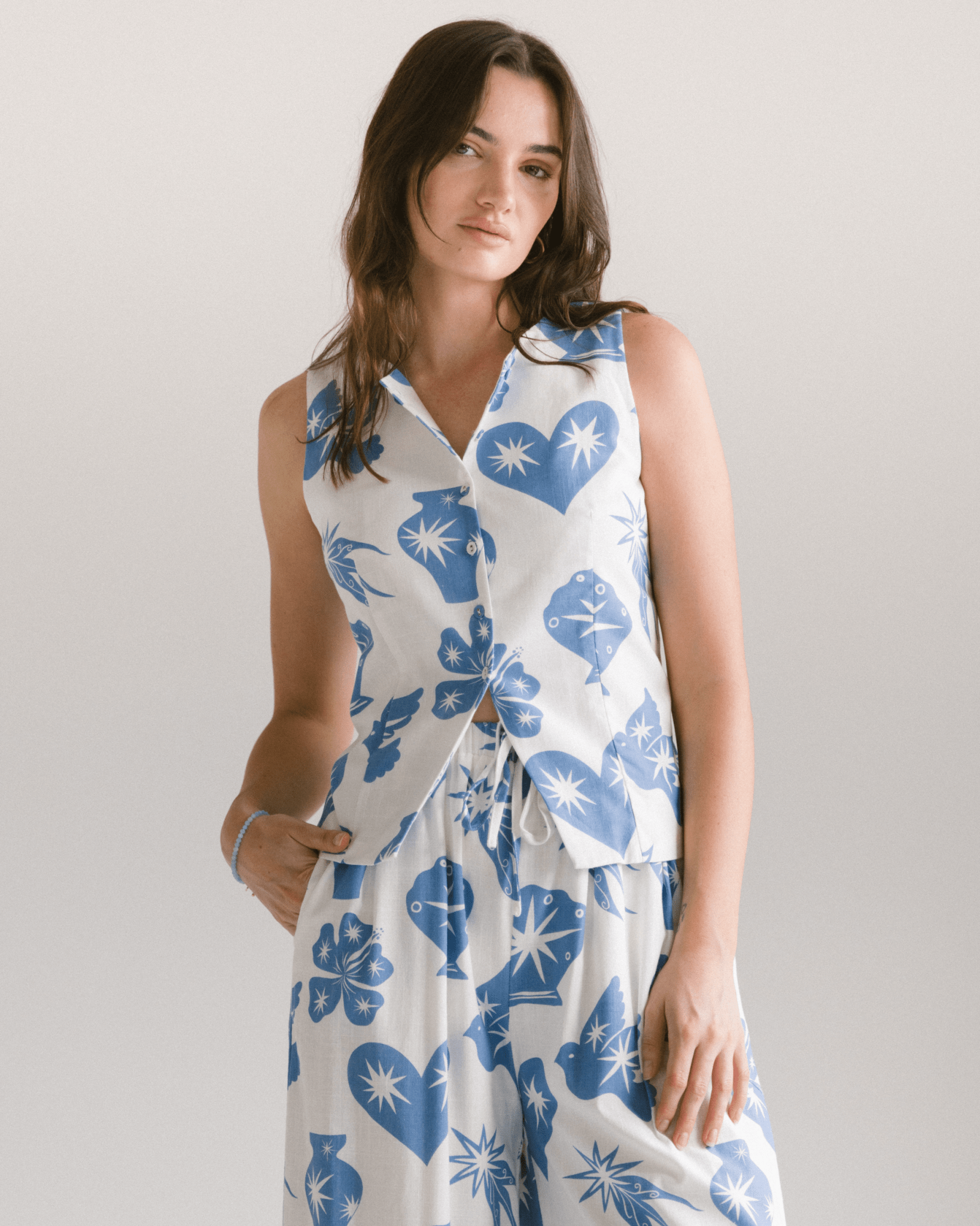The Ella Vest isn’t just a layering piece — she’s the piece. With a button-up front and adjustable tie-back, she’s got range. Want to cinch the waist? Go for it. Prefer a relaxed, floaty vibe? She’s cool with that too. Ella’s all about doing things your way — because cookie-cutter isn’t our thing.