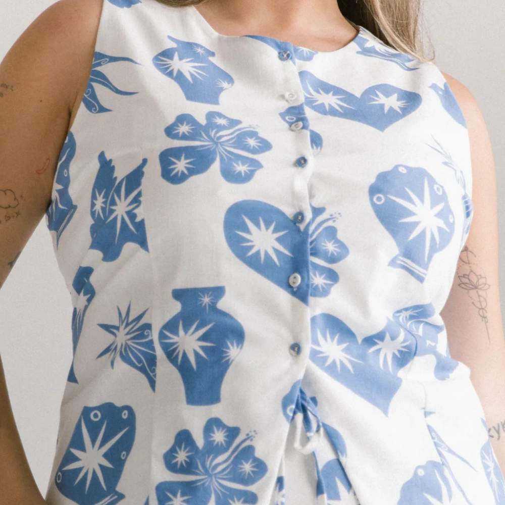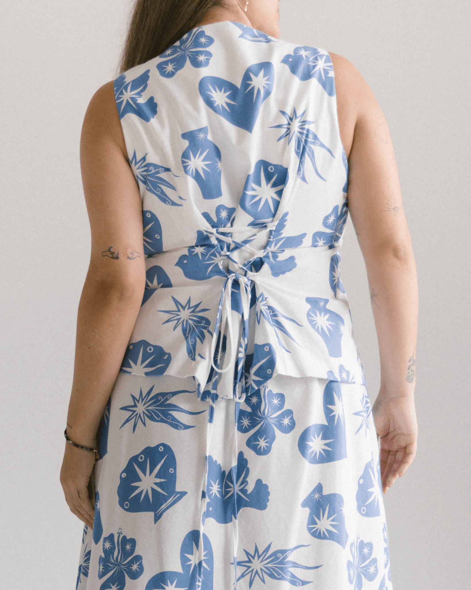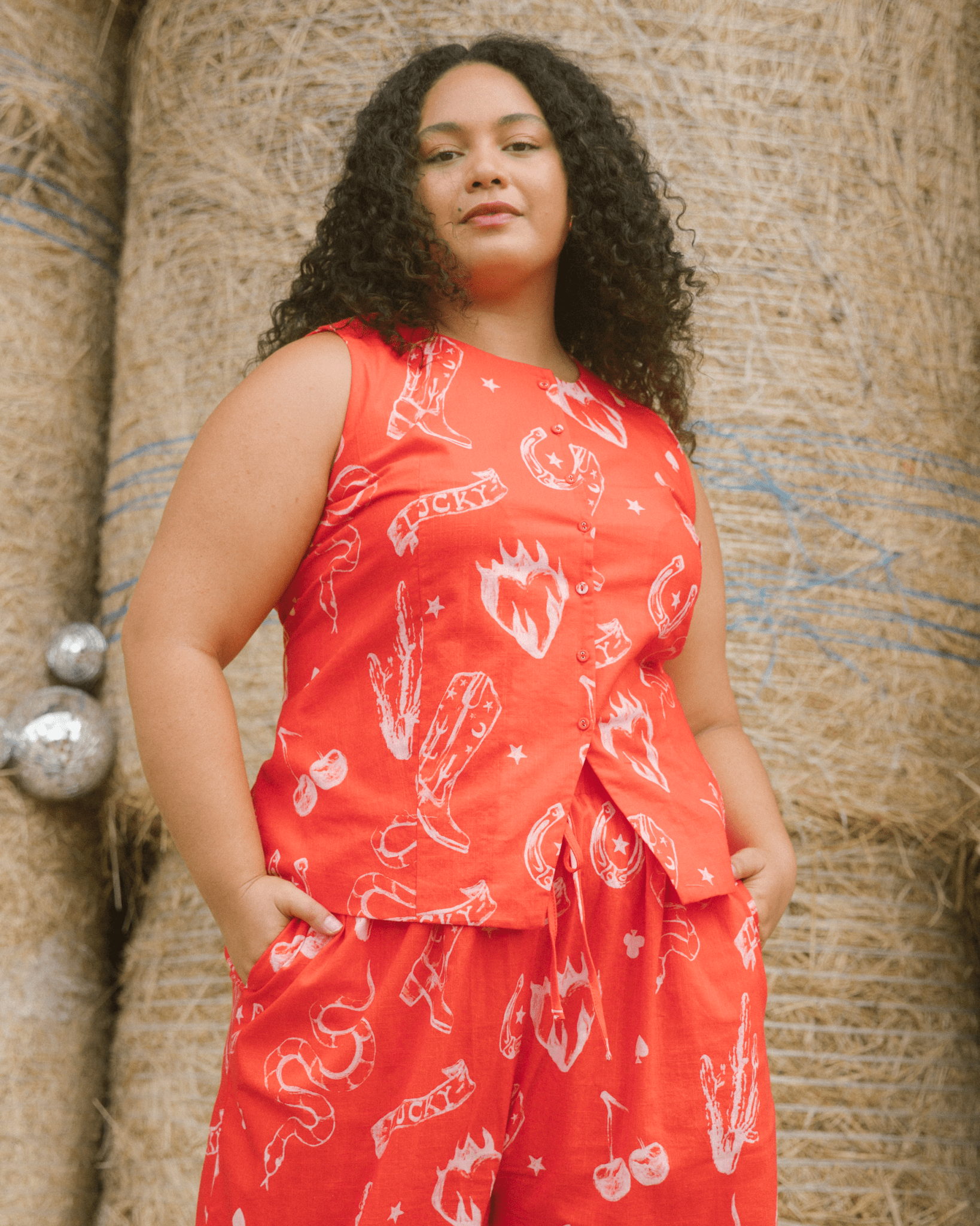 The Ella Vest isn’t just a layering piece — she’s the piece. With a button-up front and adjustable tie-back, she’s got range. Want to cinch the waist? Go for it. Prefer a relaxed, floaty vibe? She’s cool with that too. Ella’s all about doing things your way — because cookie-cutter isn’t our thing.