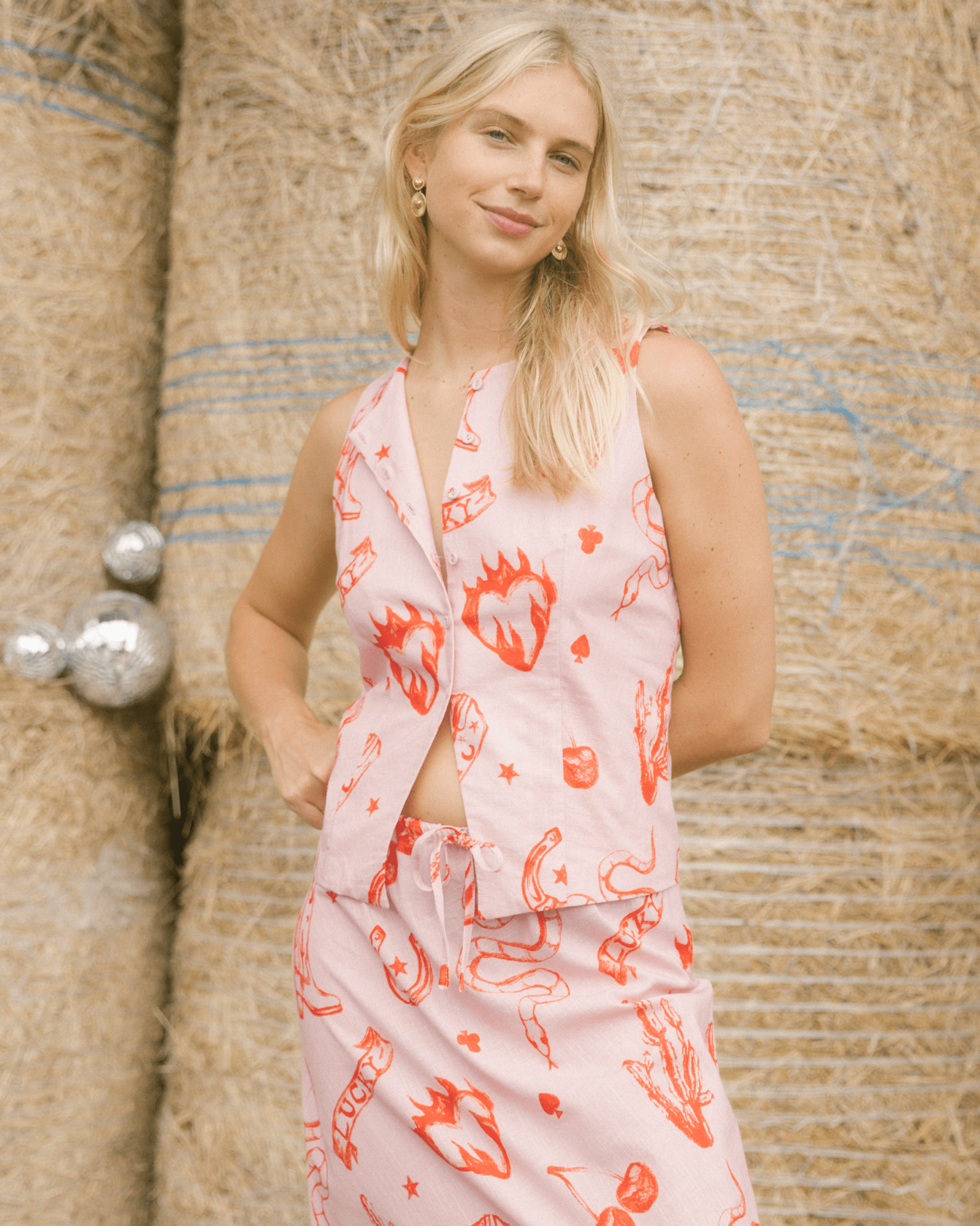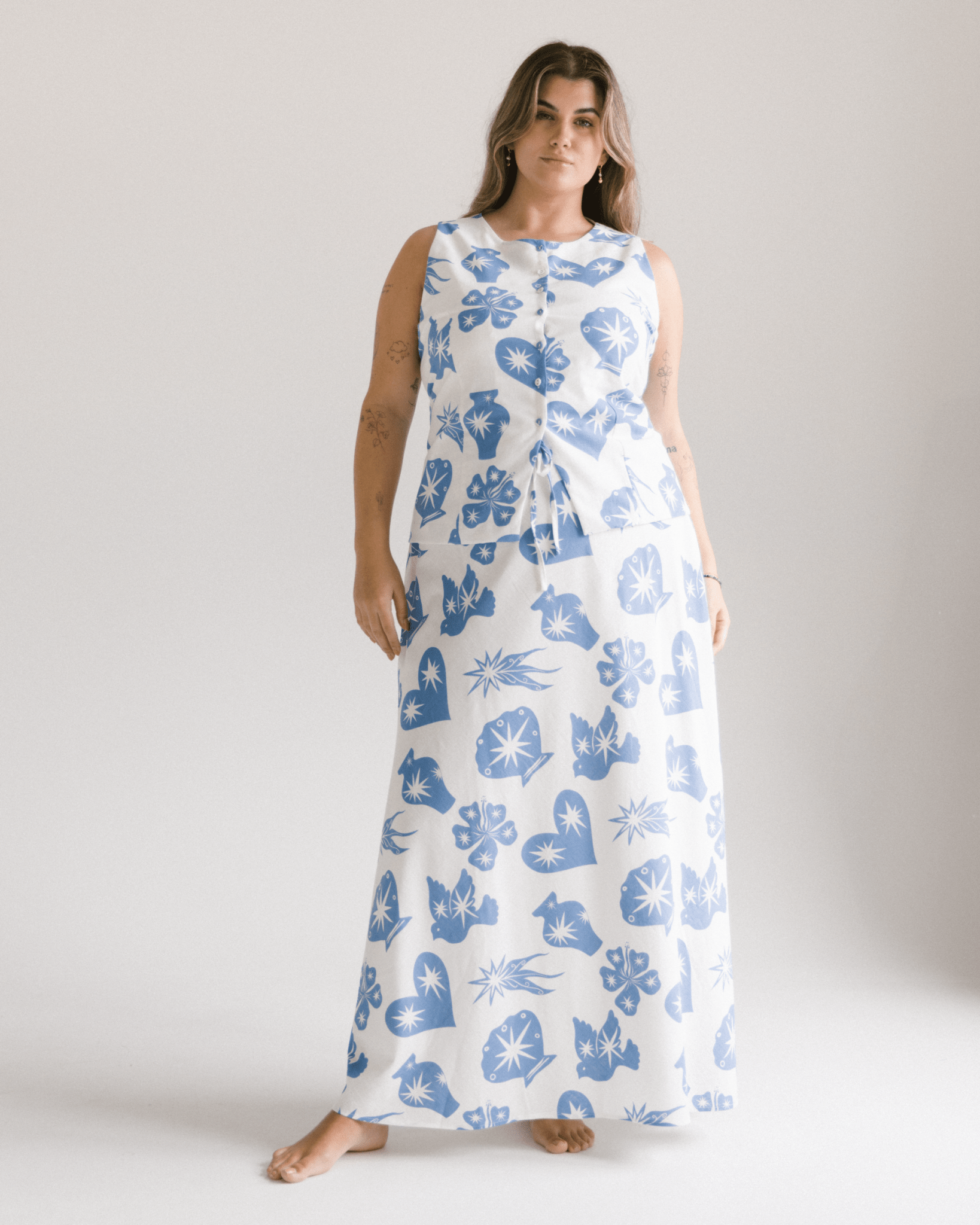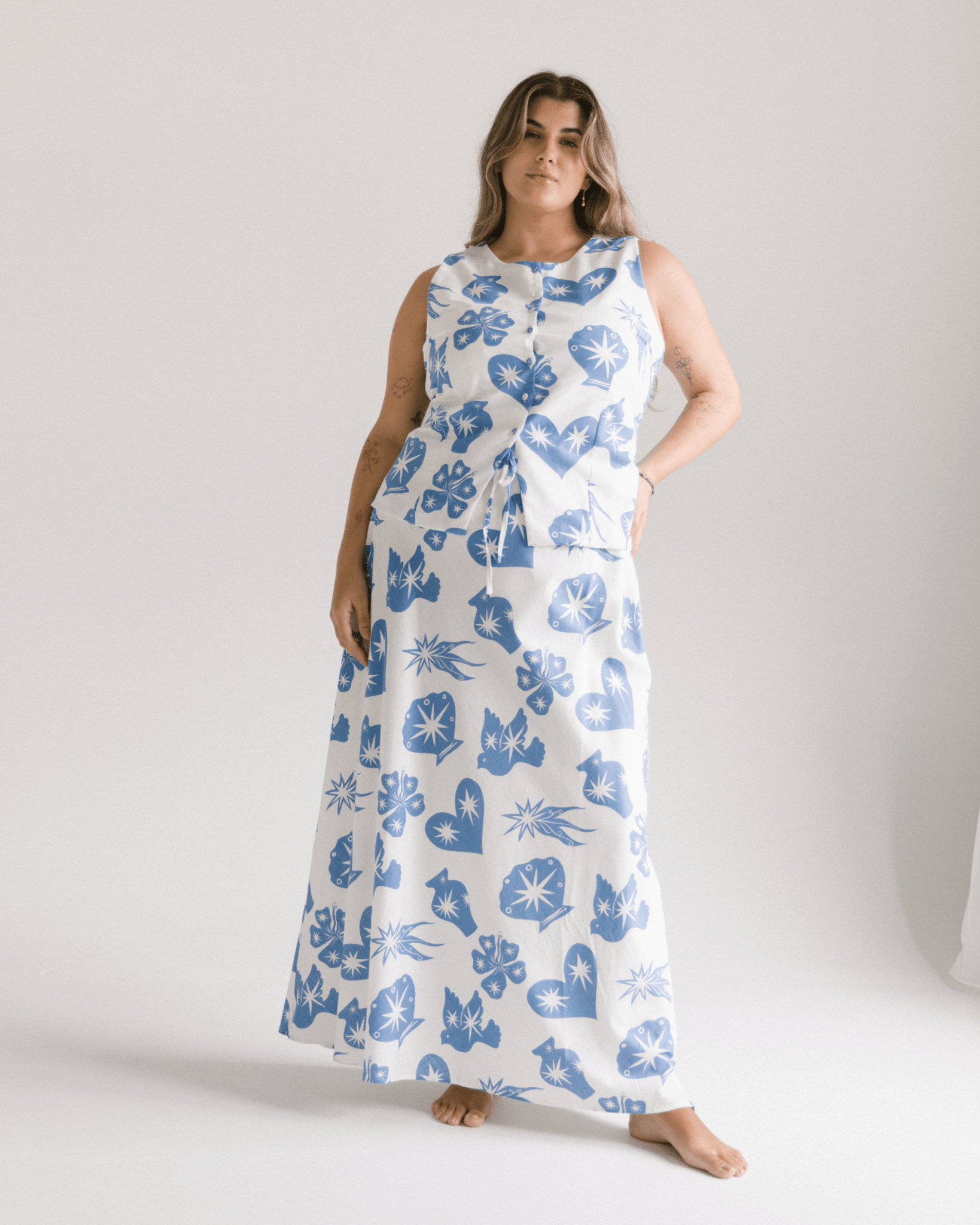 Dress her up with the matching Lacey Skirt for a “who is she?” moment, or throw her over linen pants, cut-offs, or literally whatever’s clean — she elevates anything.