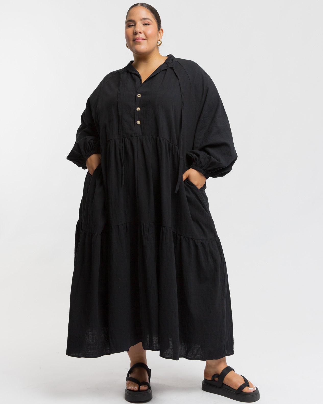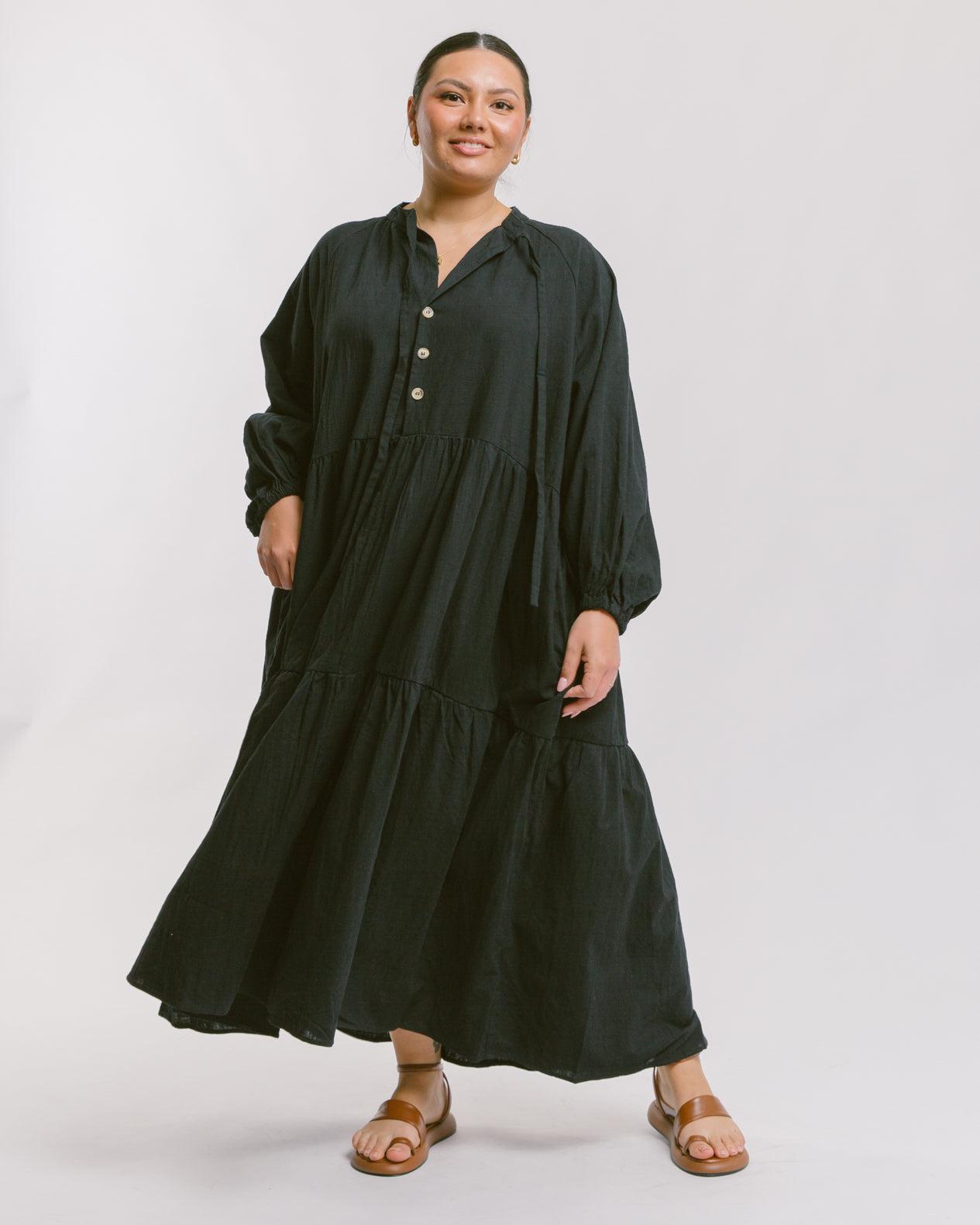The Maxi Avalon Smock Dress is your go-to for those “I have nothing to wear” days. With its oversized fit and sweeping maxi length, it’s the kind of dress that makes zero effort look like a full-blown outfit. Wear her with sandals for a school drop-off moment or chuck on some boots and earrings and call it a date night (even if it’s just to the grocery store without the kids).