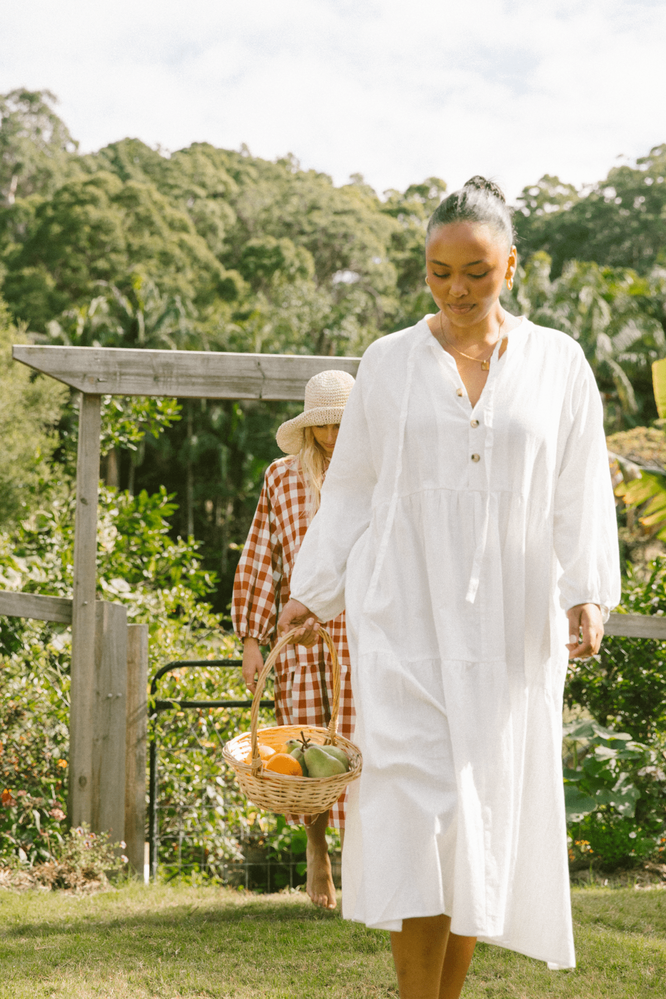 The Maxi Avalon Smock Dress is your go-to for those “I have nothing to wear” days. With its oversized fit and sweeping maxi length, it’s the kind of dress that makes zero effort look like a full-blown outfit. Wear her with sandals for a school drop-off moment or chuck on some boots and earrings and call it a date night (even if it’s just to the grocery store without the kids).