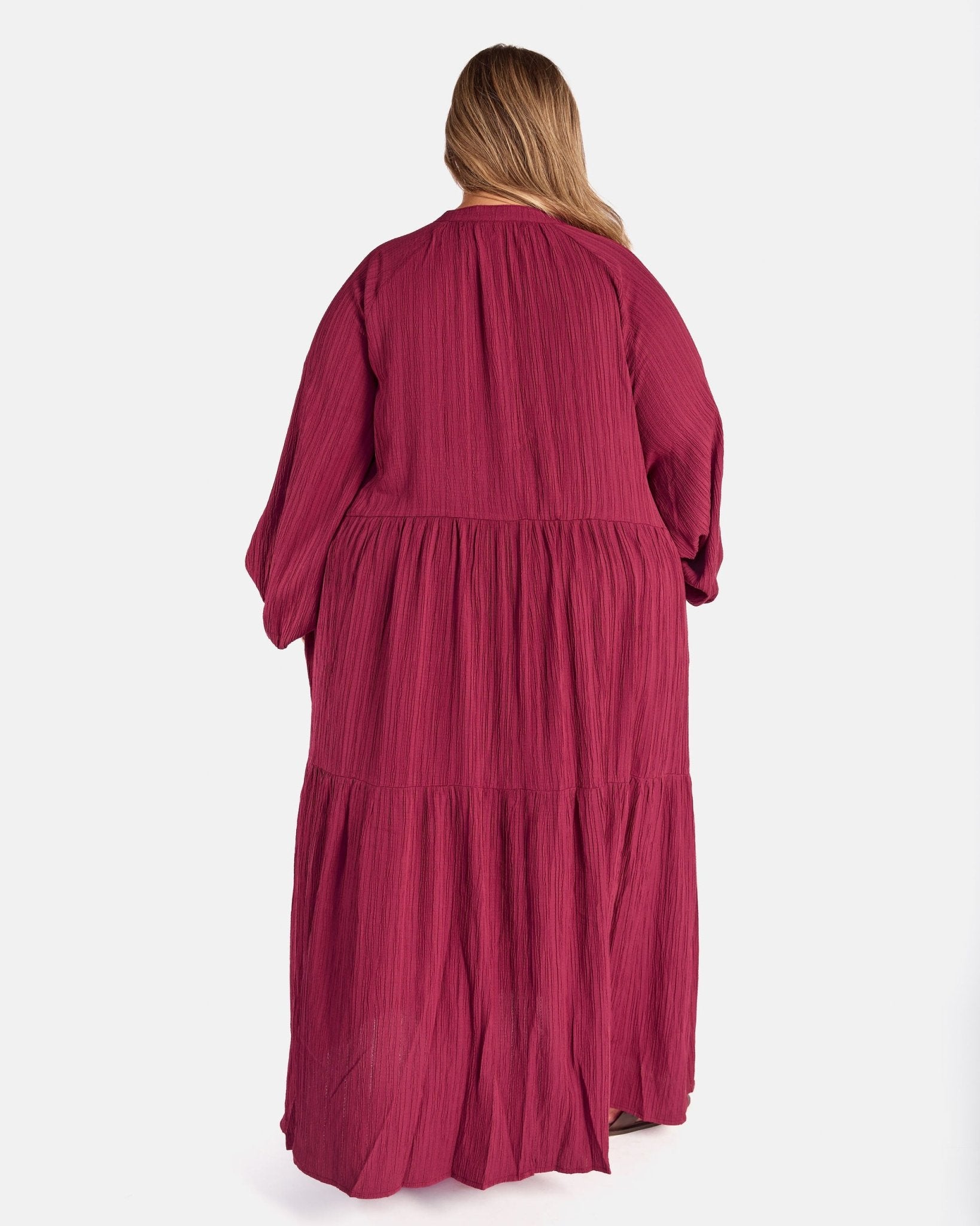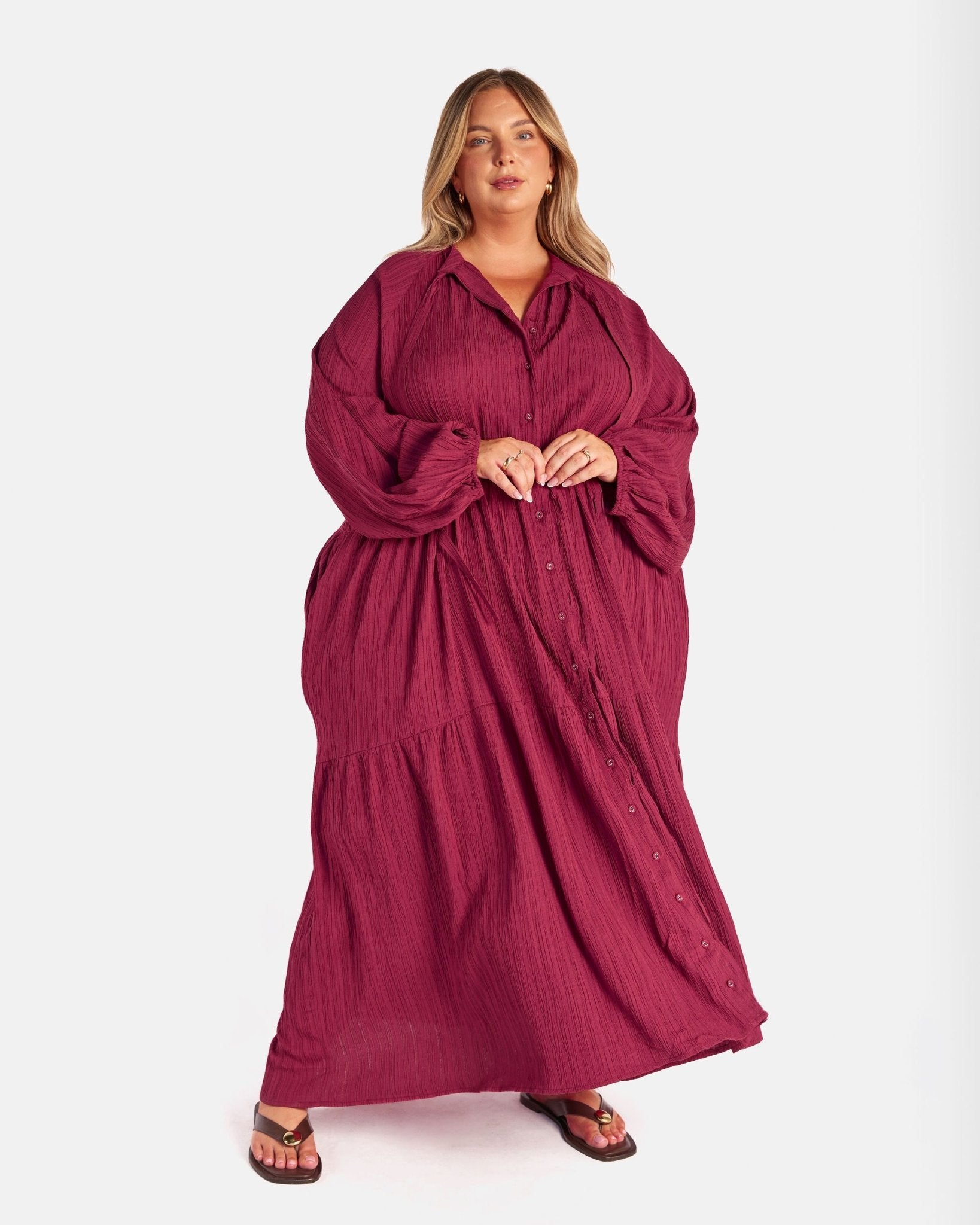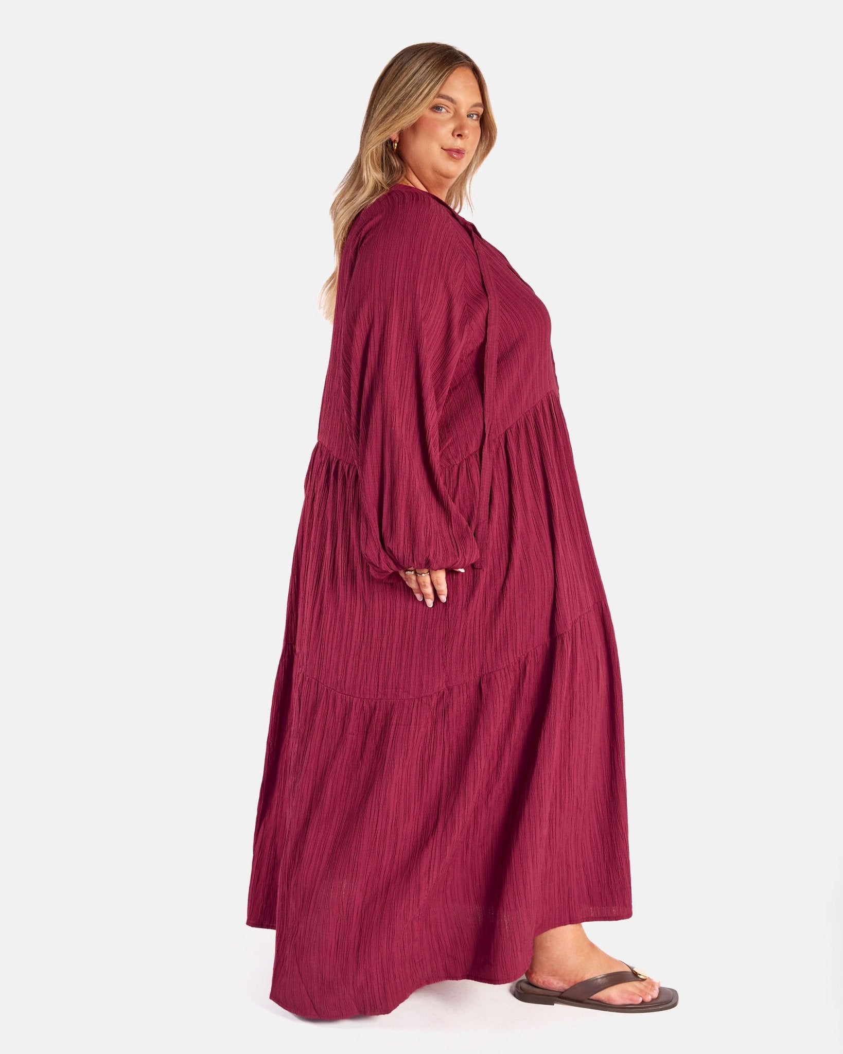 The Maxi Ruby Smock Dress in Wine Crepe is your throw-on-and-go statement piece that still feels soft and wearable. Crafted from a breathable 80% viscose, 20% cotton crepe blend, it has a lightweight texture that moves beautifully with the body.