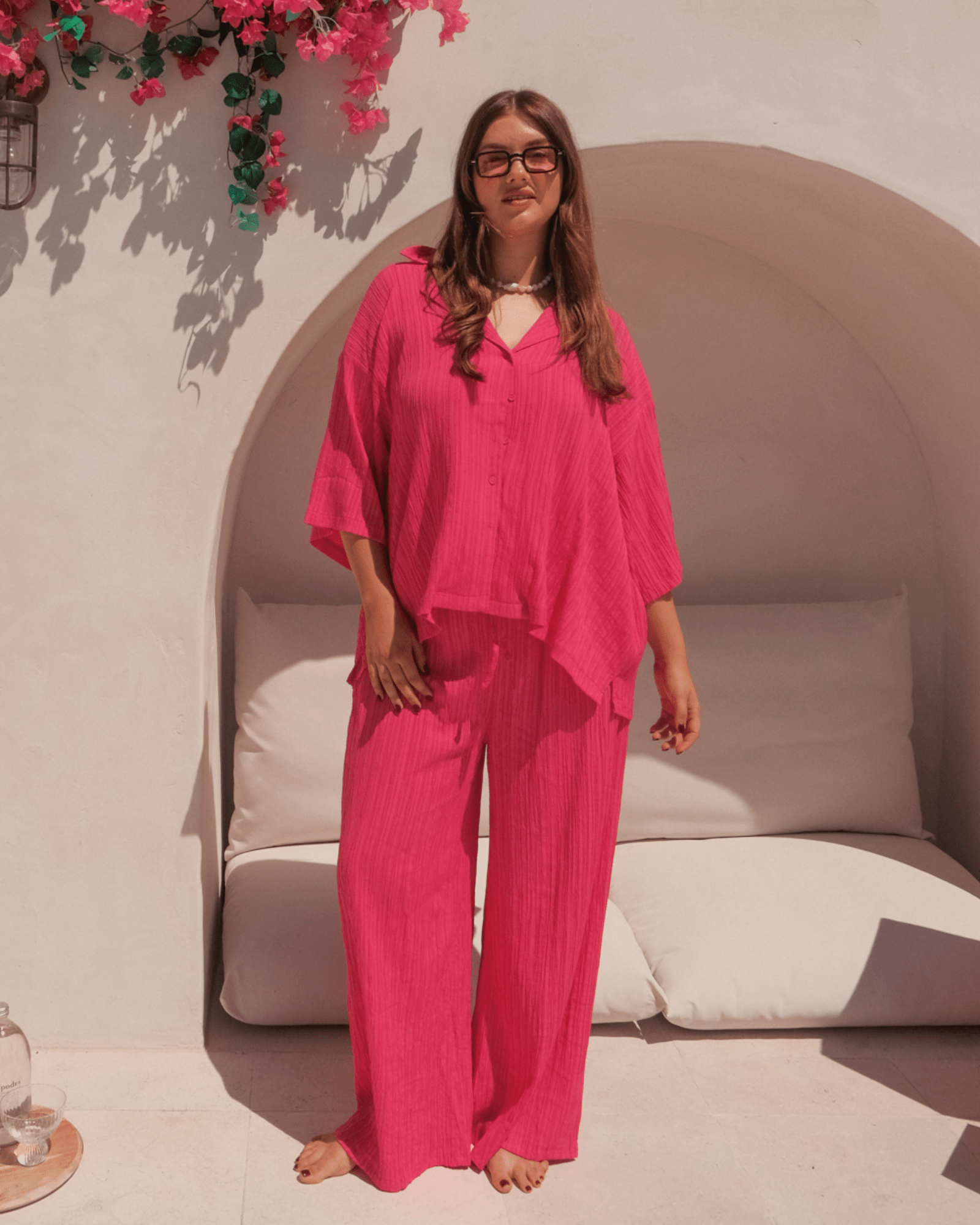Comfort, but make it cute. Our Posey Pants are basically your new uniform for everything from couch hangs to cocktails. With their oversized, flowy fit and breezy fabric, these pants are ready to take you from bed to beach to “oh, this old thing?” brunch plans without breaking a sweat.
