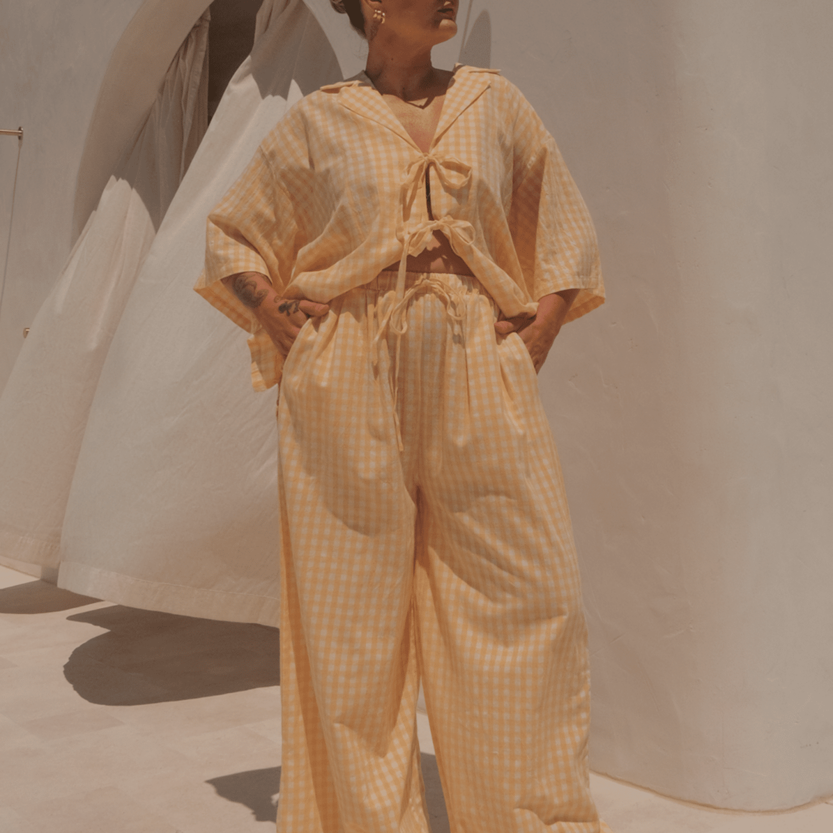 Comfort, but make it cute. Our Posey Pants are basically your new uniform for everything from couch hangs to cocktails. With their oversized, flowy fit and breezy fabric, these pants are ready to take you from bed to beach to “oh, this old thing?” brunch plans without breaking a sweat.