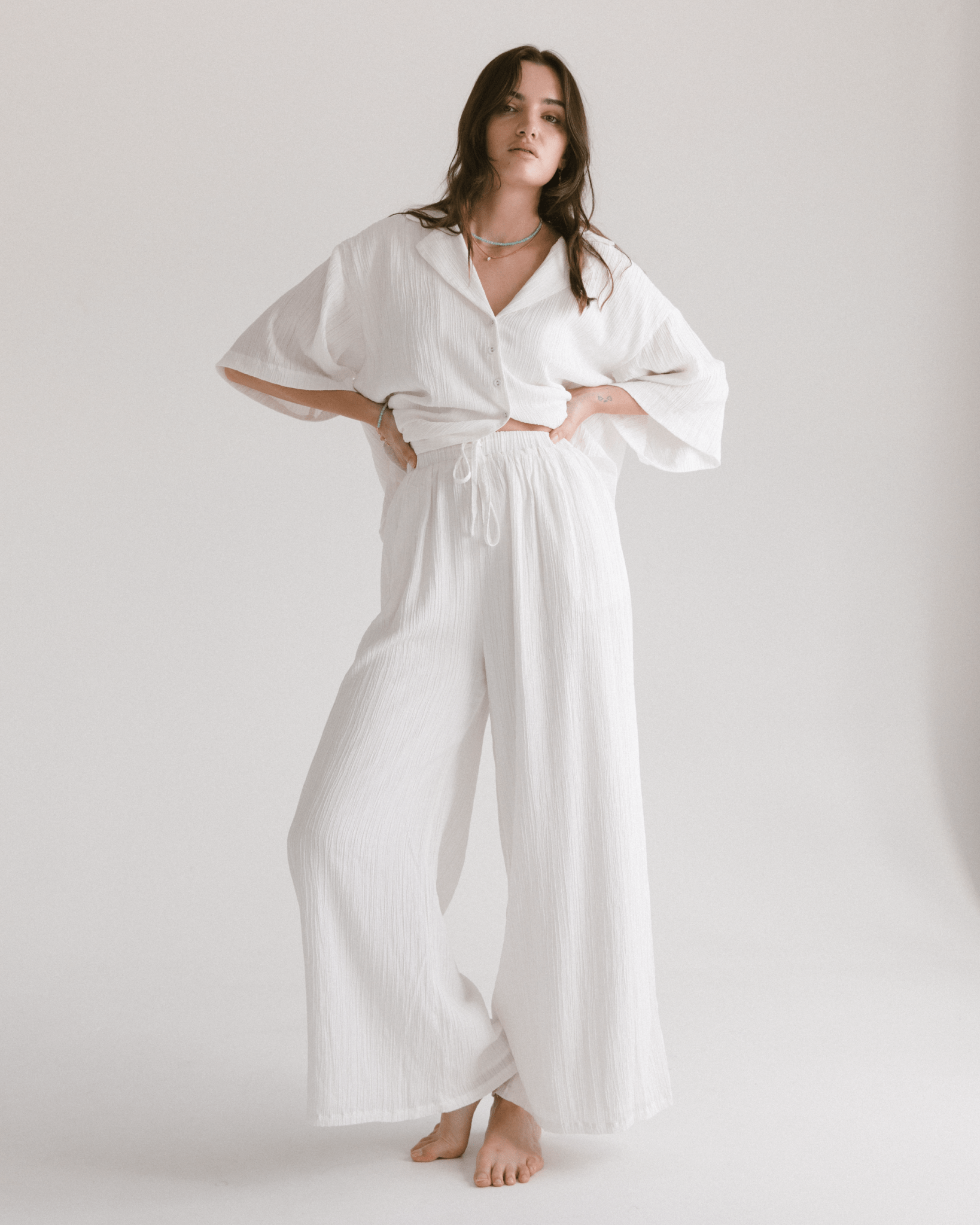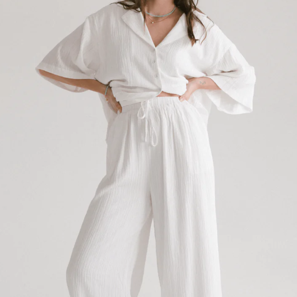 Comfort, but make it cute. Our Posey Pants are basically your new uniform for everything from couch hangs to cocktails. With their oversized, flowy fit and breezy fabric, these pants are ready to take you from bed to beach to “oh, this old thing?” brunch plans without breaking a sweat.