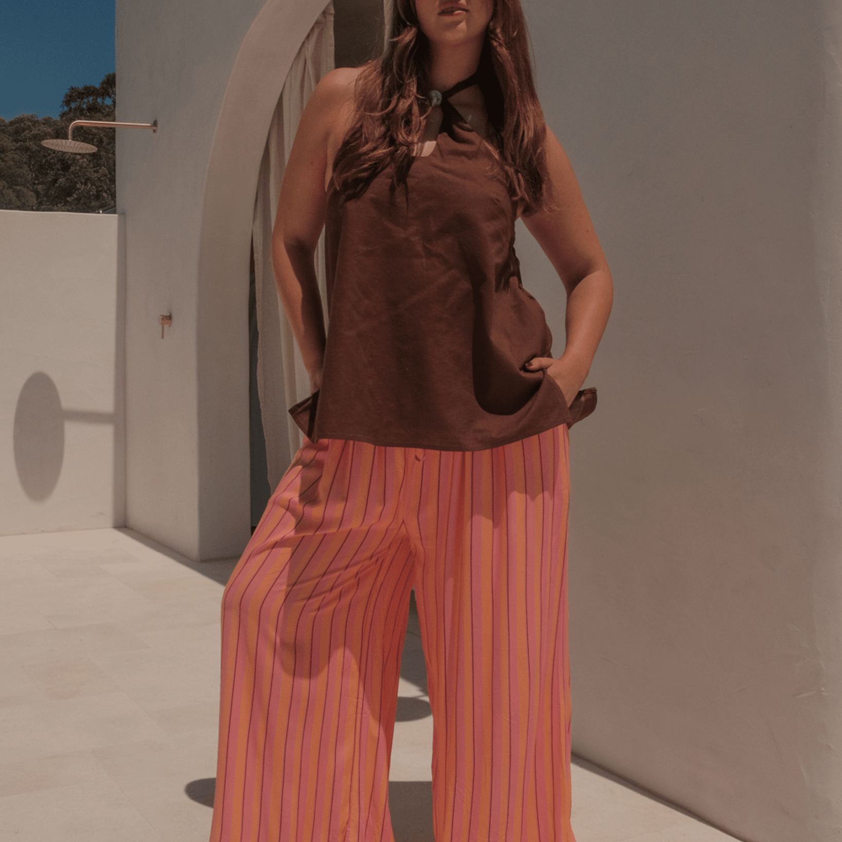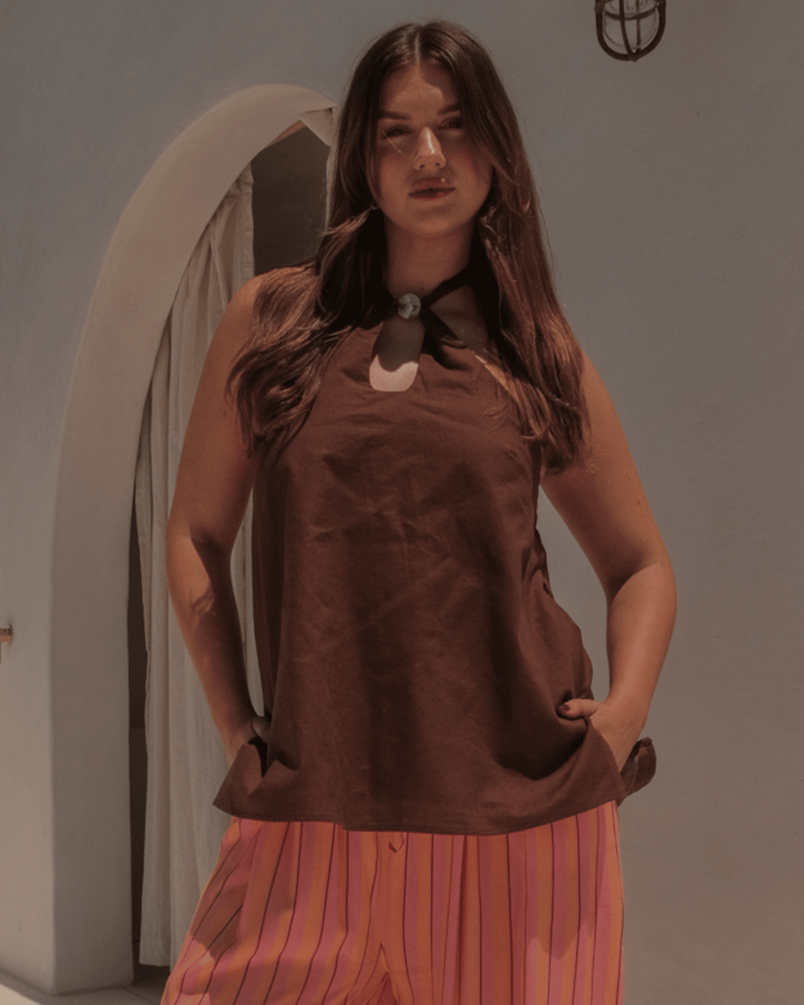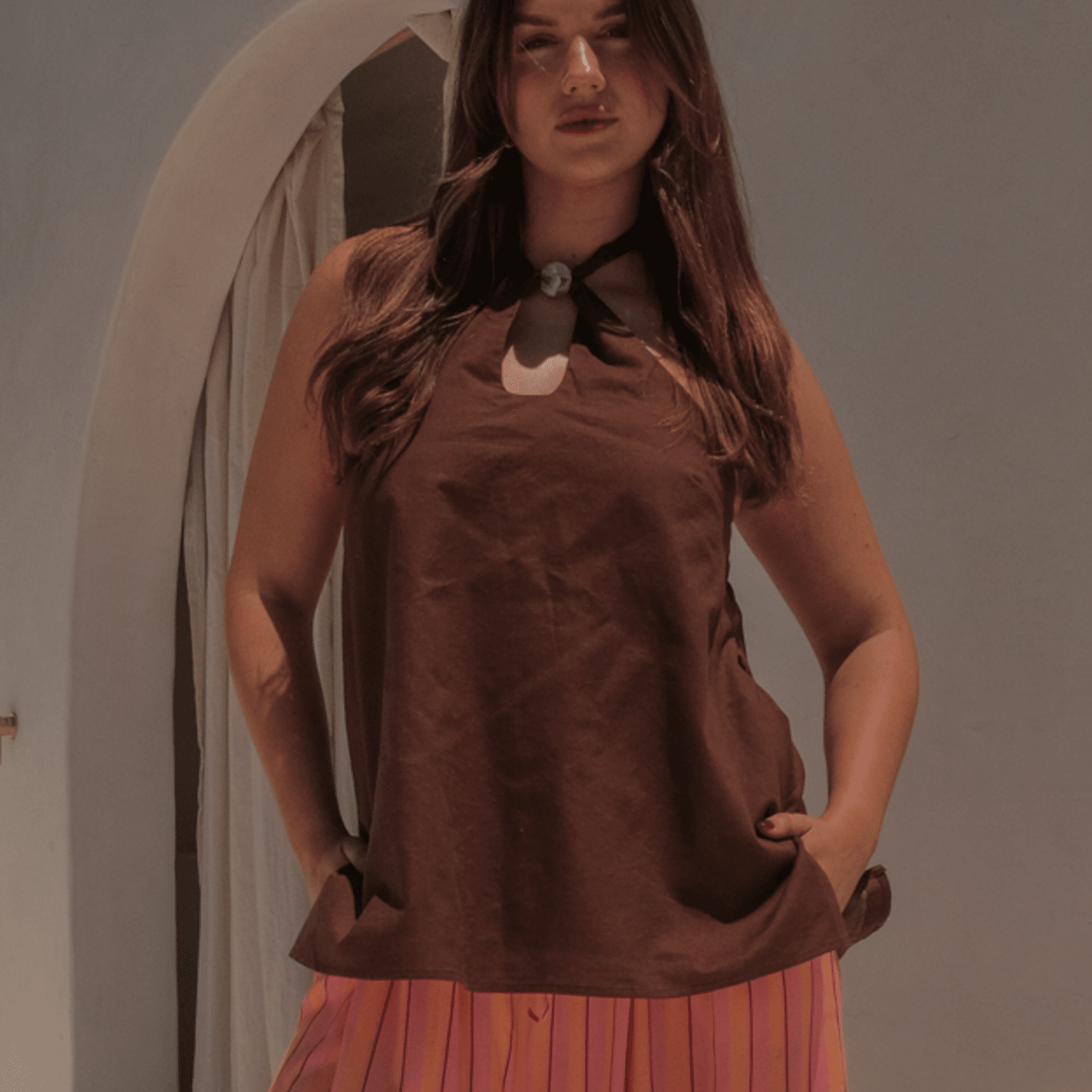 From sunny brunches to beach days and all the “just running out for a quick coffee” moments in between — the Zoe Halter Top is here to bring a little bit of spice to your everyday rotation. With its playful halter neckline and bead detail, she’s giving cool-girl energy with zero effort required.
