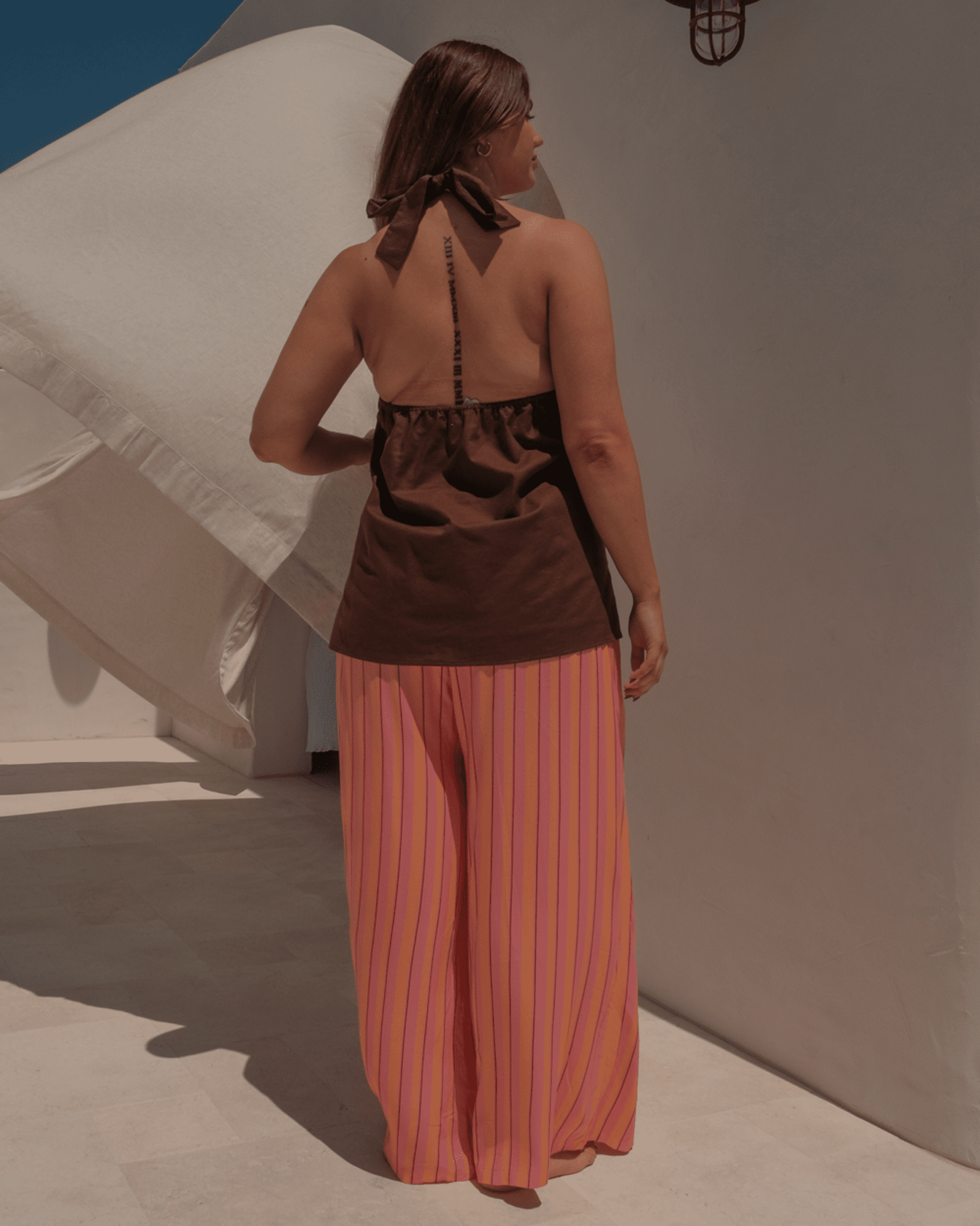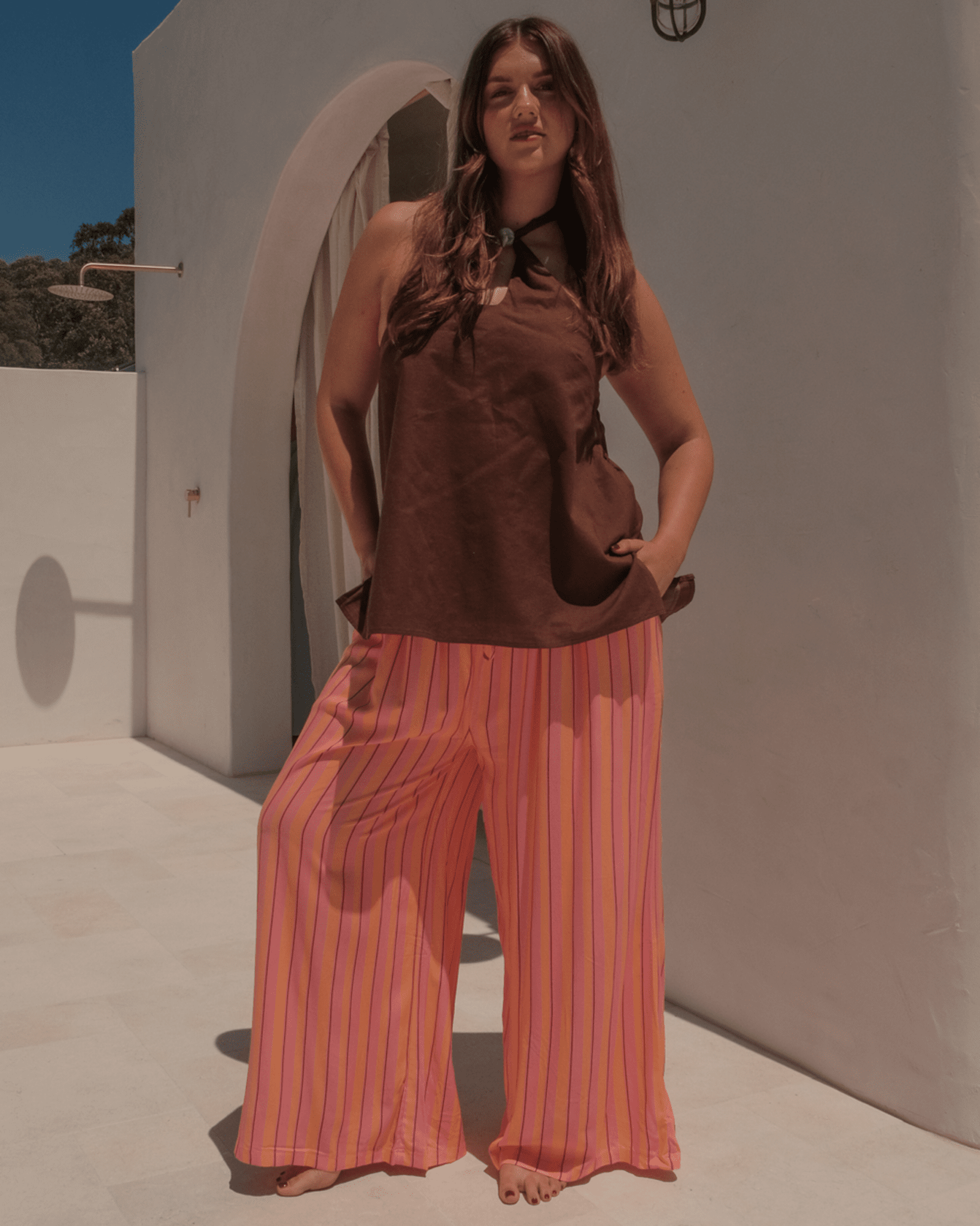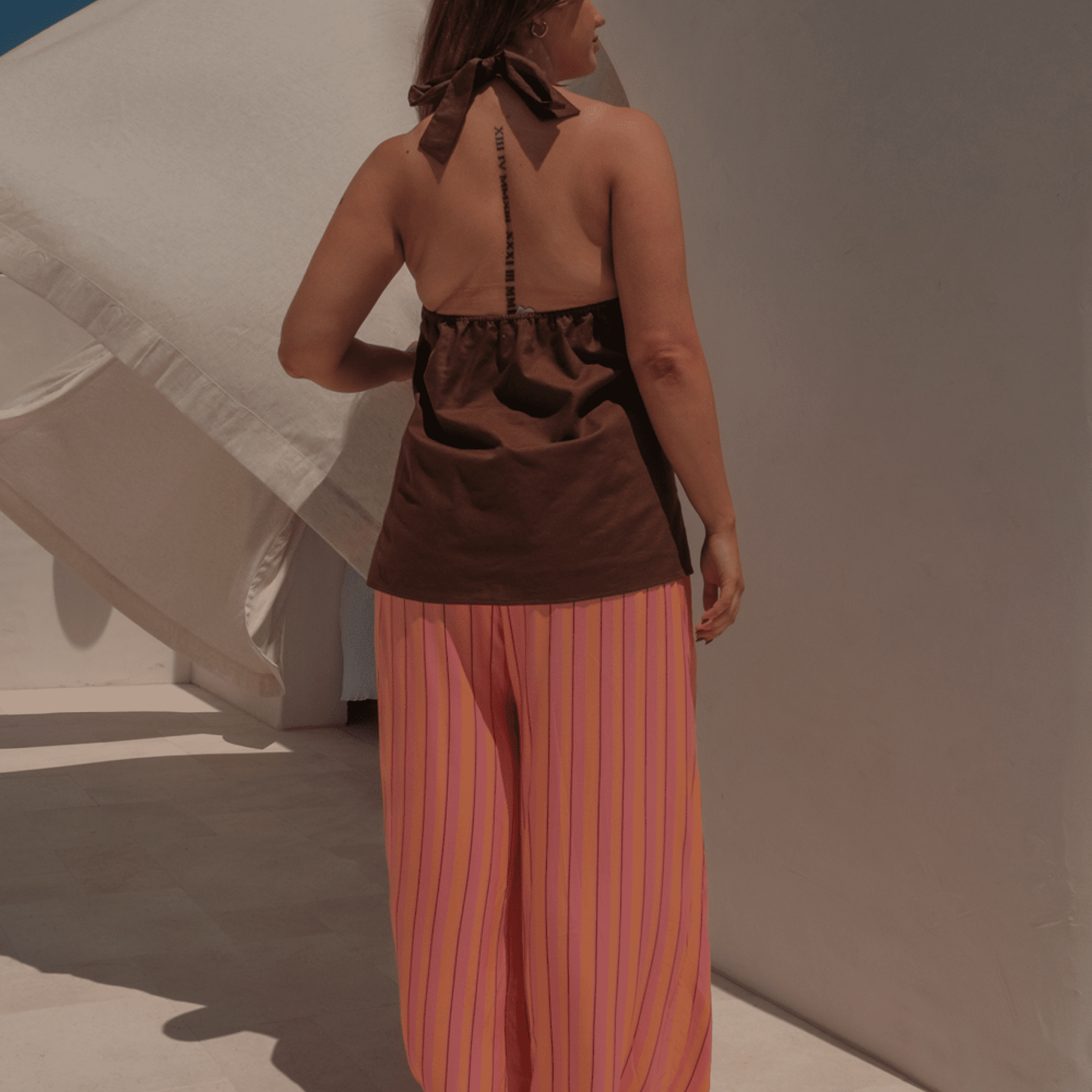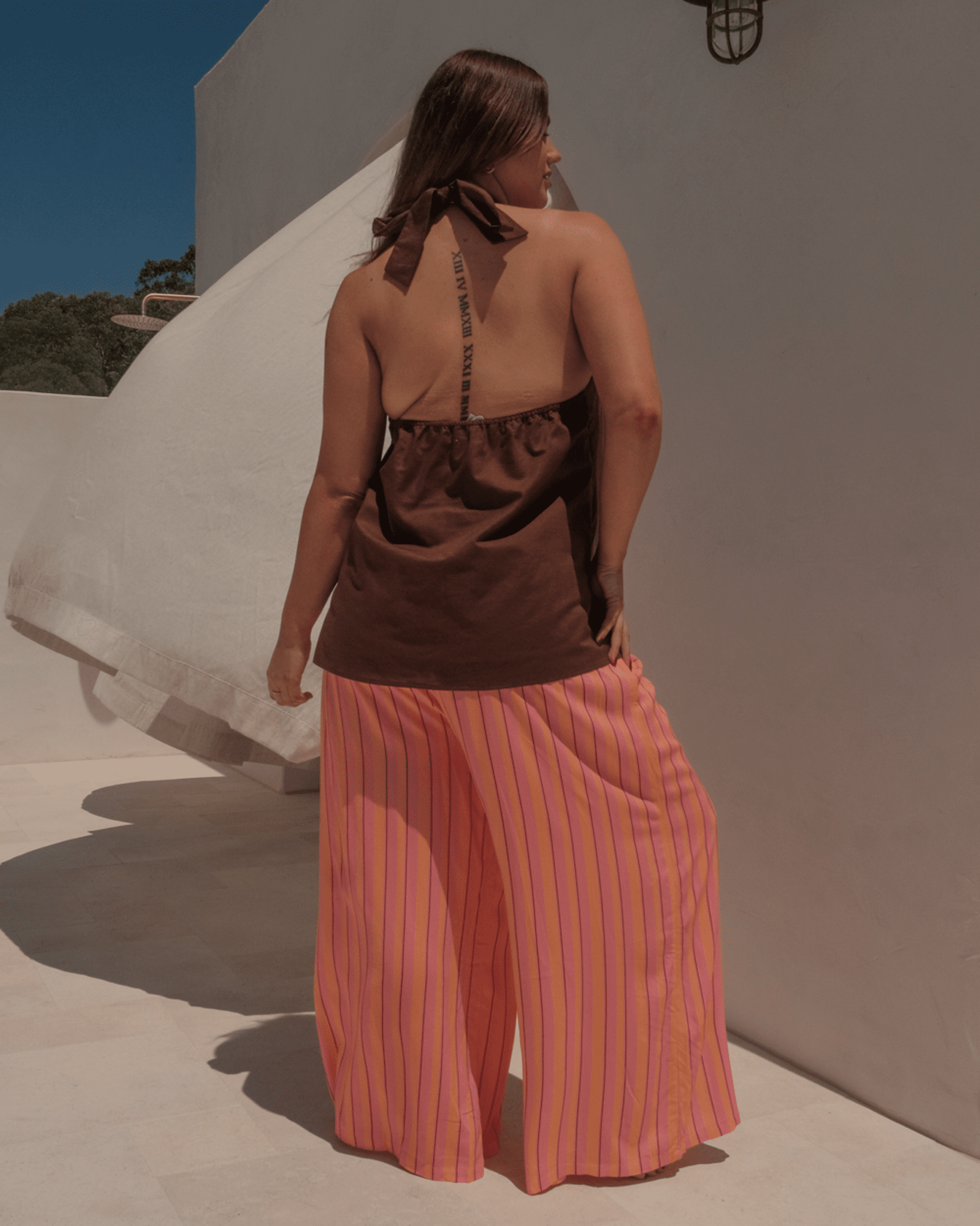 From sunny brunches to beach days and all the “just running out for a quick coffee” moments in between — the Zoe Halter Top is here to bring a little bit of spice to your everyday rotation. With its playful halter neckline and bead detail, she’s giving cool-girl energy with zero effort required.