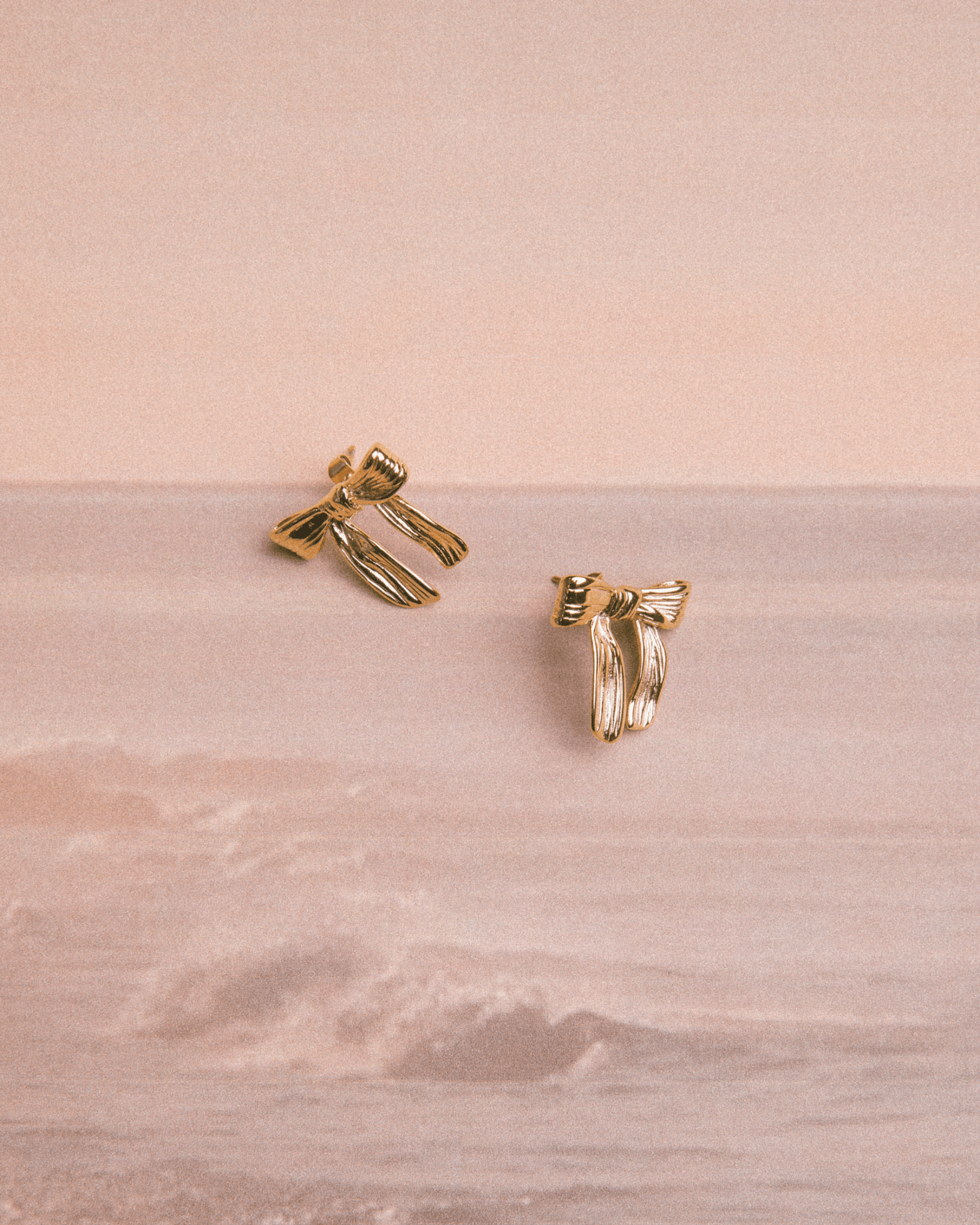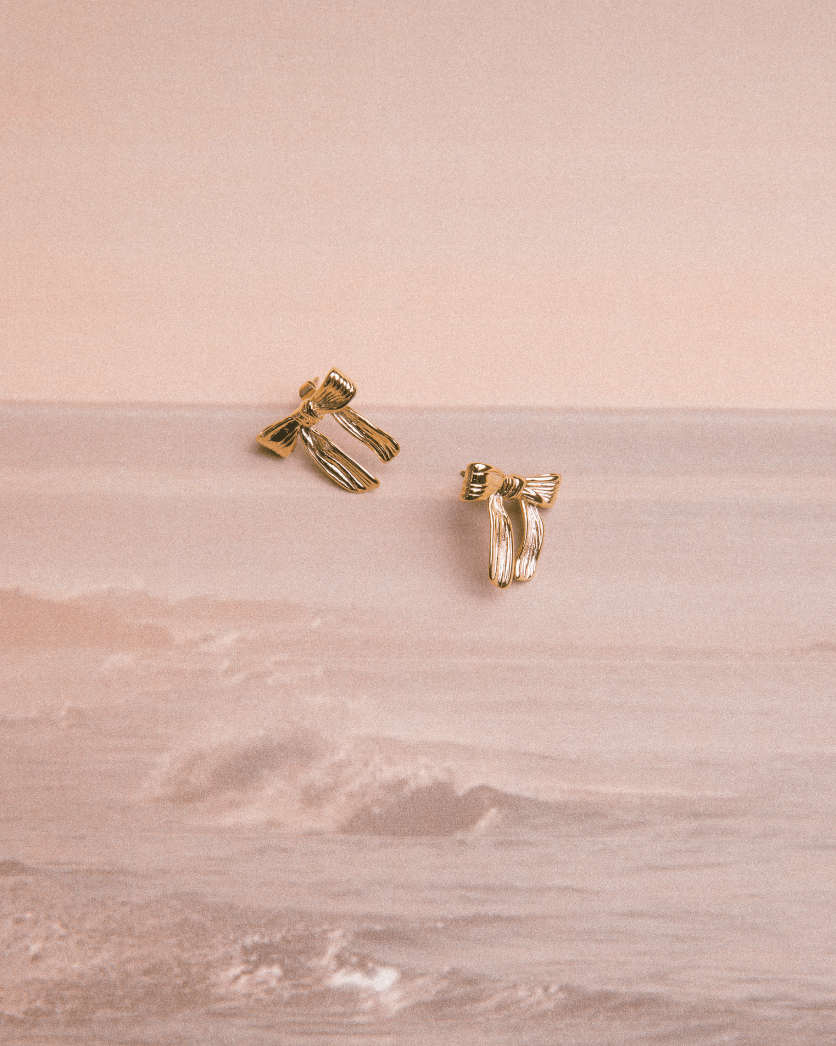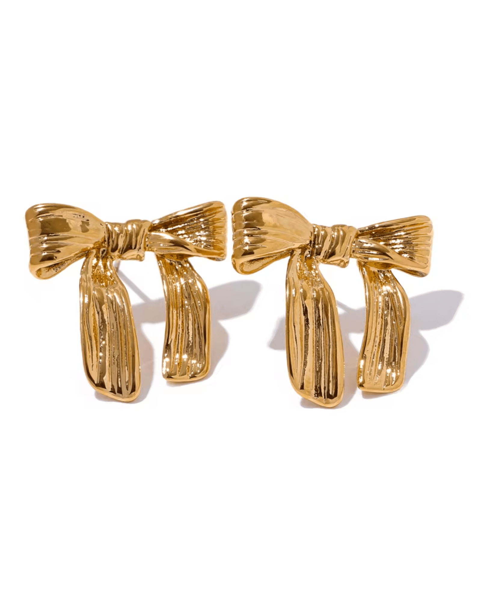 Introducing the Bessie Bow Earrings in Gold, a charming addition to your jewellery collection. These earrings are crafted from 18ct Gold Plated Stainless Steel, ensuring durability and a luxurious finish.