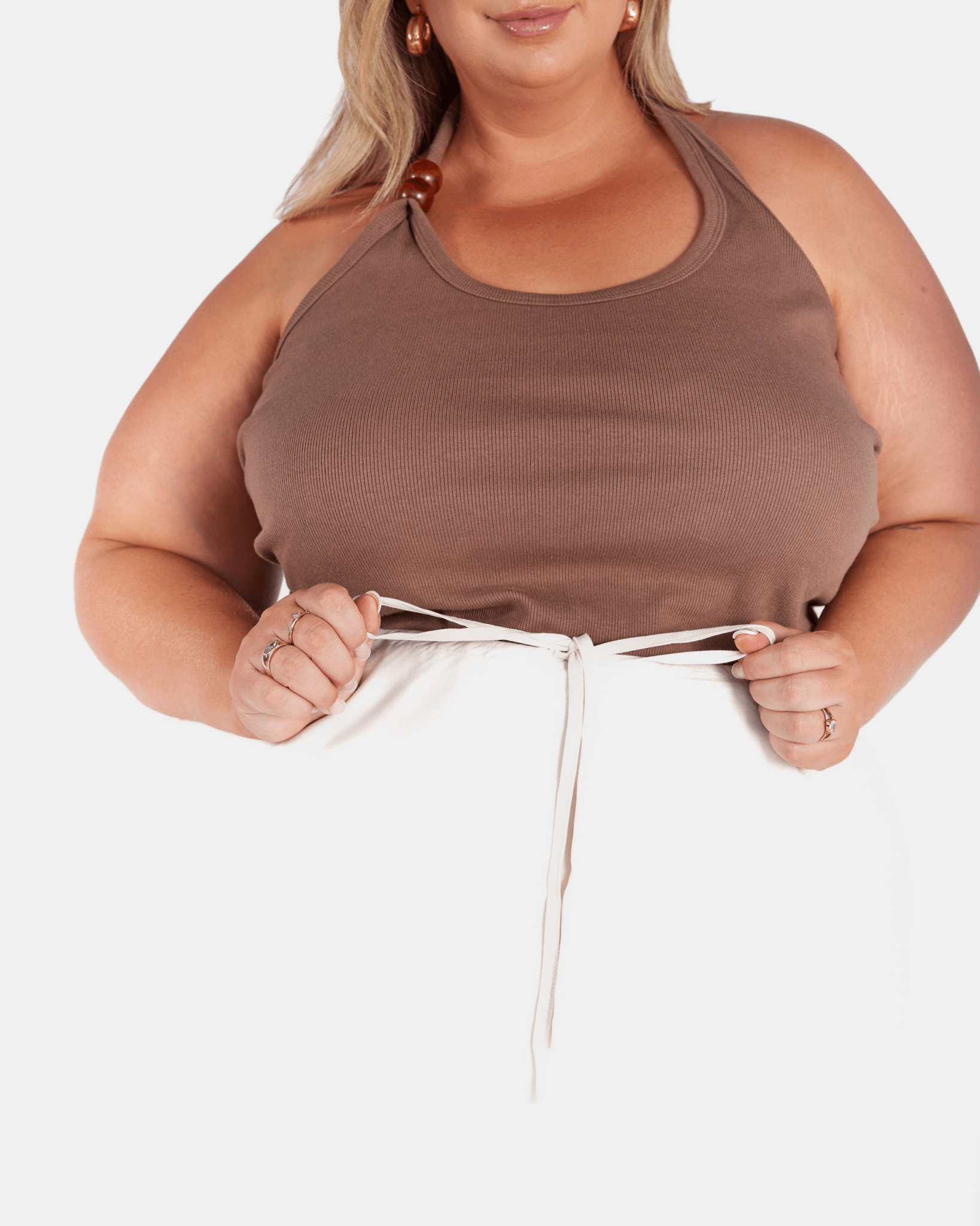 Style Chloe with wide-leg pants for laid-back chic, or pair her with denim and slides for an easy everyday look. She’s the halter you’ll want on repeat.