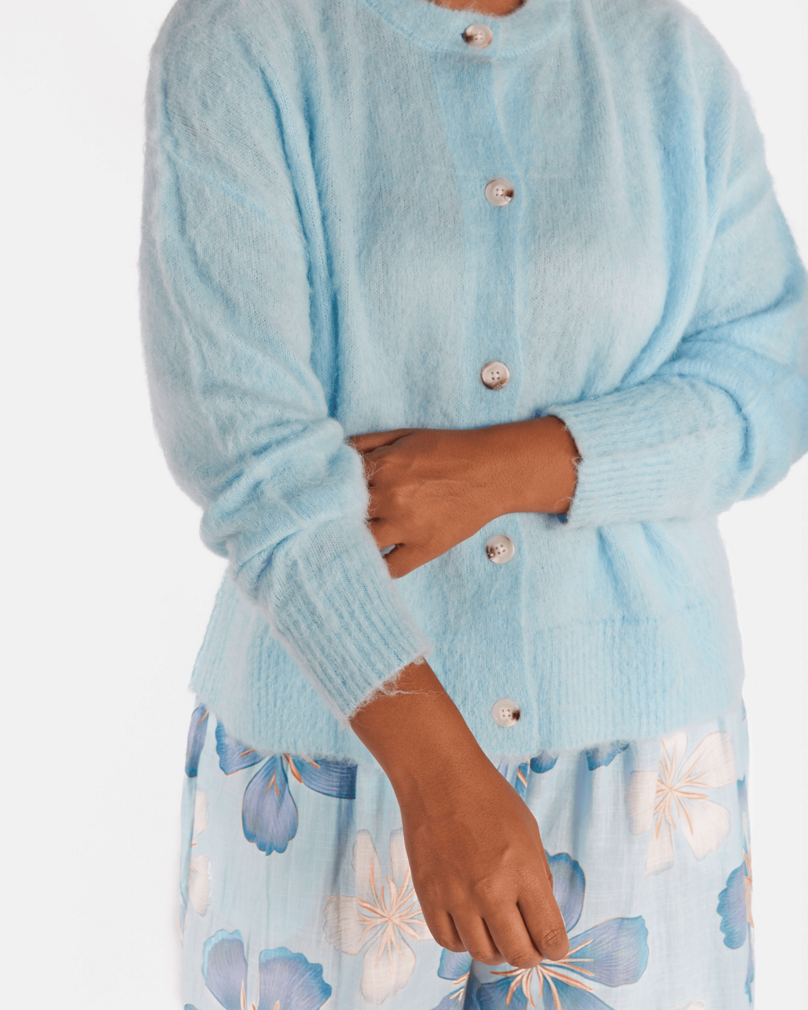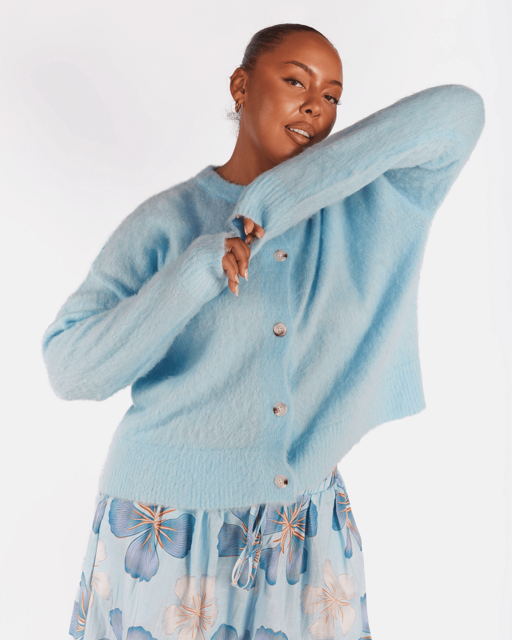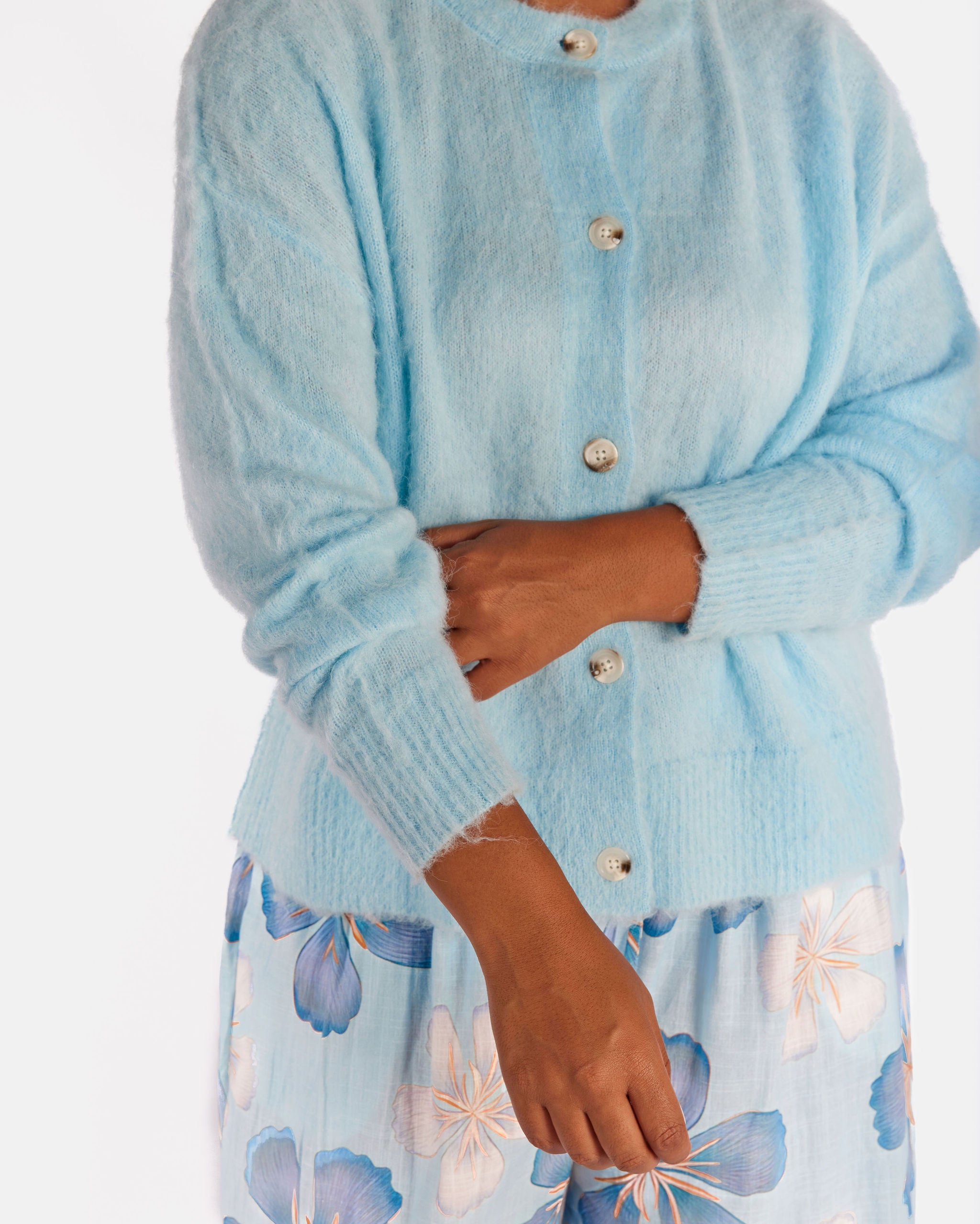 Meet the Courtney Cardi in Blue, your cosy throw on layer for cooler days, early mornings and nights when you just want to feel warm and comfy without feeling bulky. Soft, fluffy and easy to wear, this cardigan is made for real life layering.
