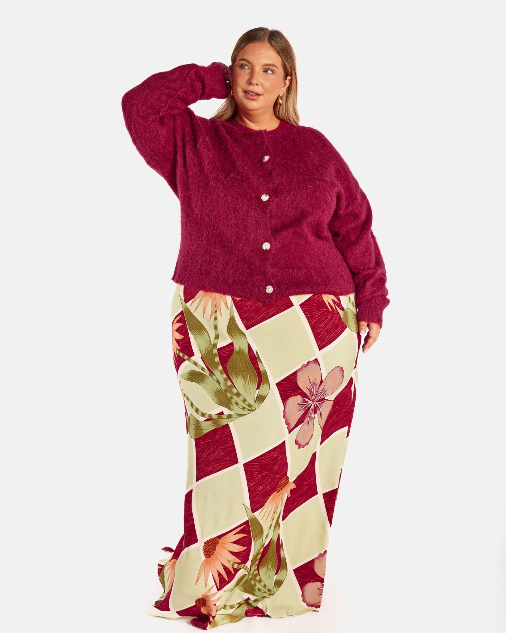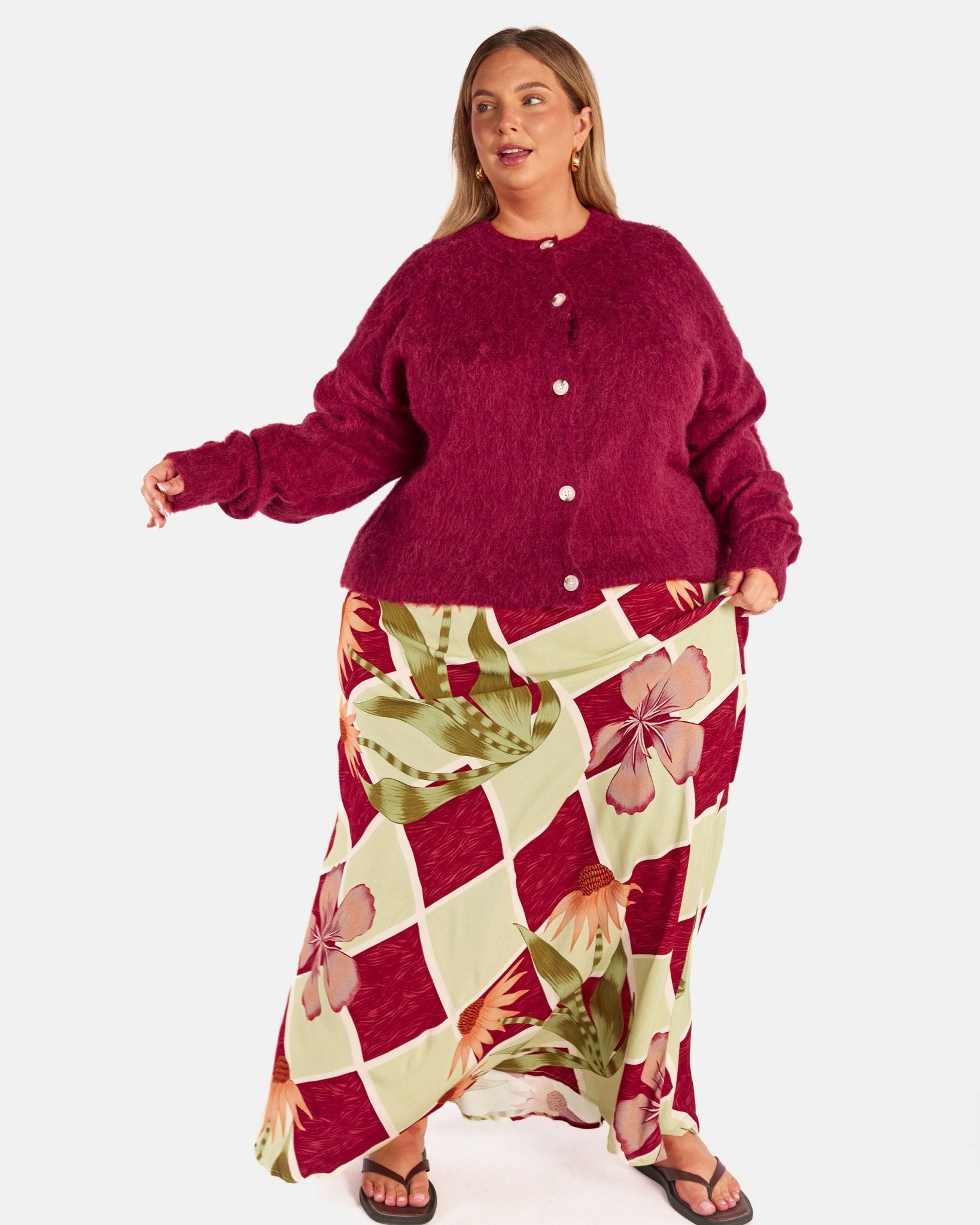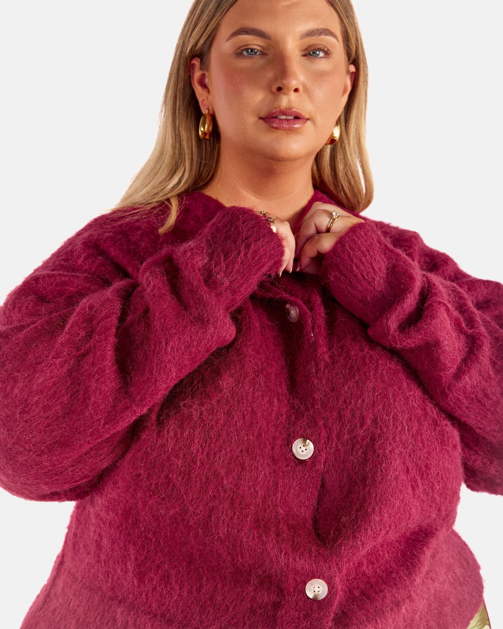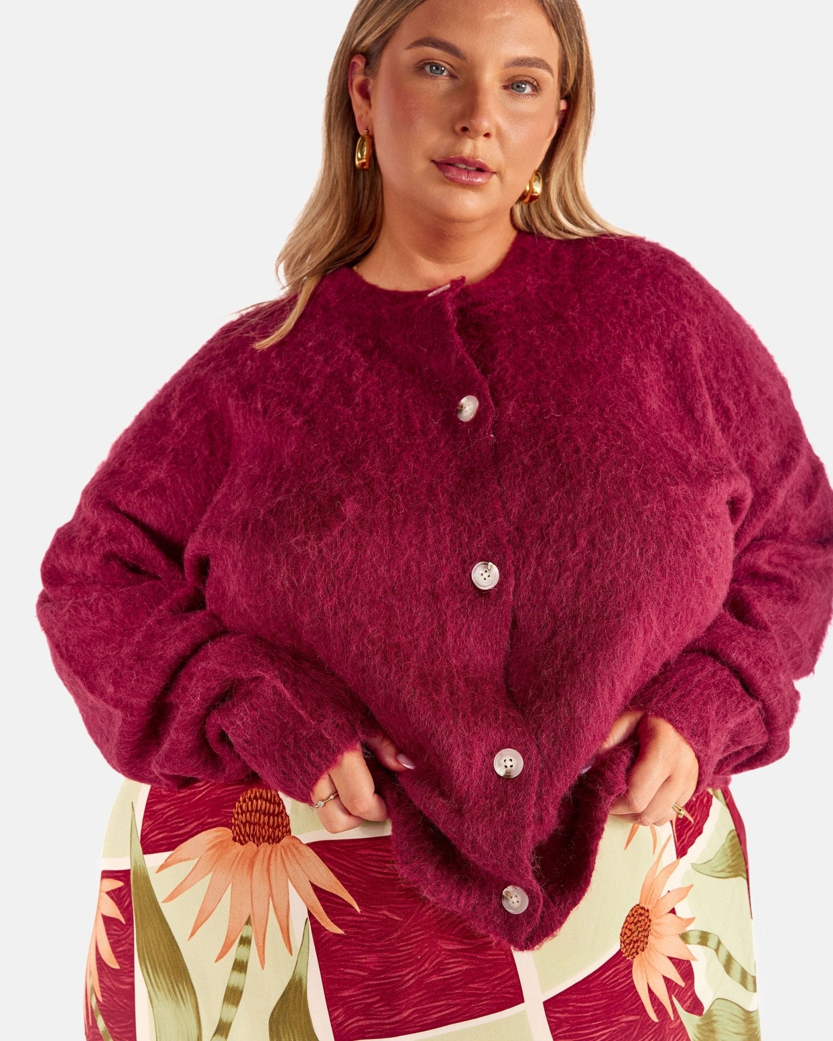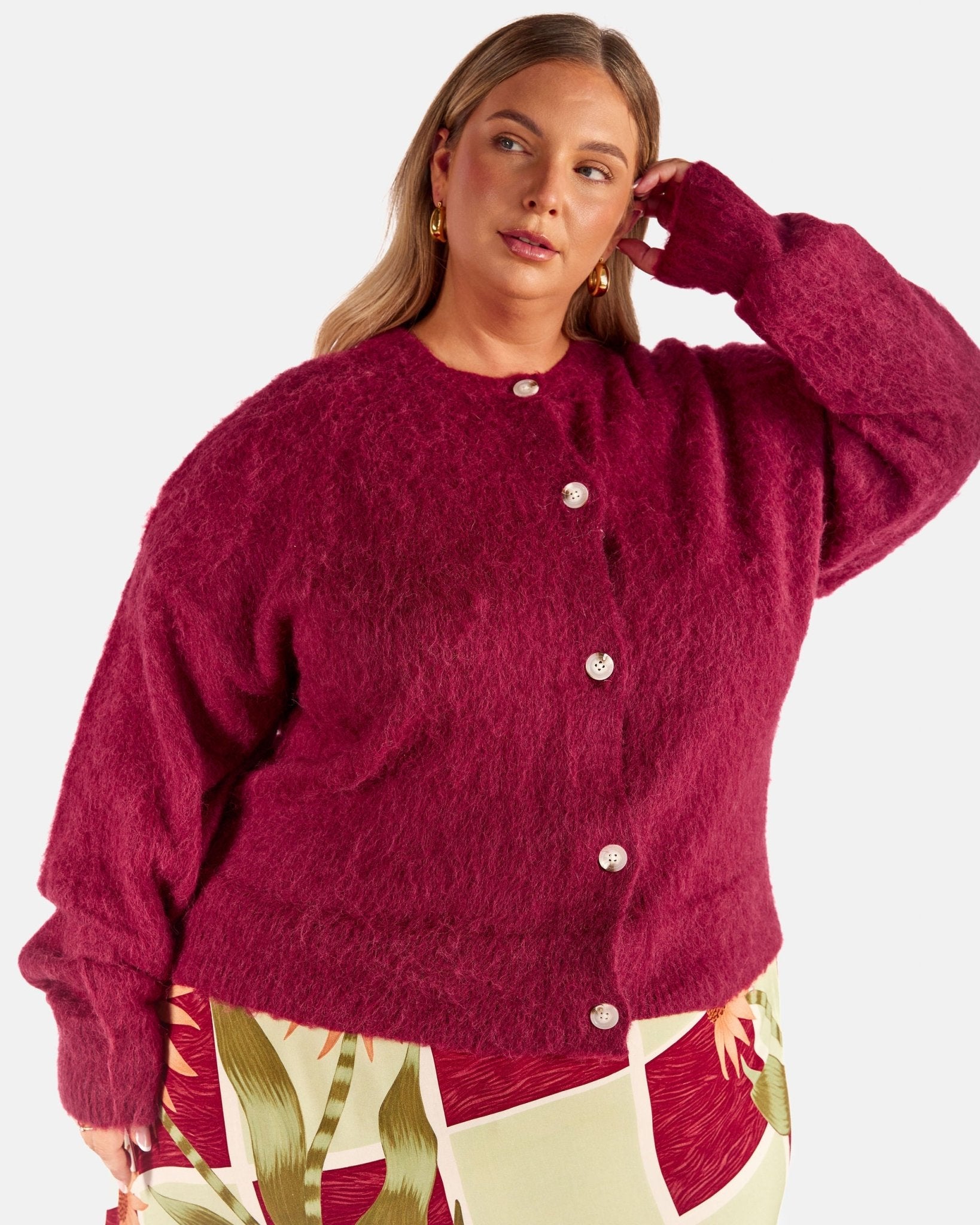 Meet the Courtney Cardi in Burgundy, your cosy, throw on layer for cooler days, slow mornings and evenings when you want warmth without feeling weighed down. Soft, fluffy and easy to wear, this is the cardigan you keep within arm’s reach all season long.