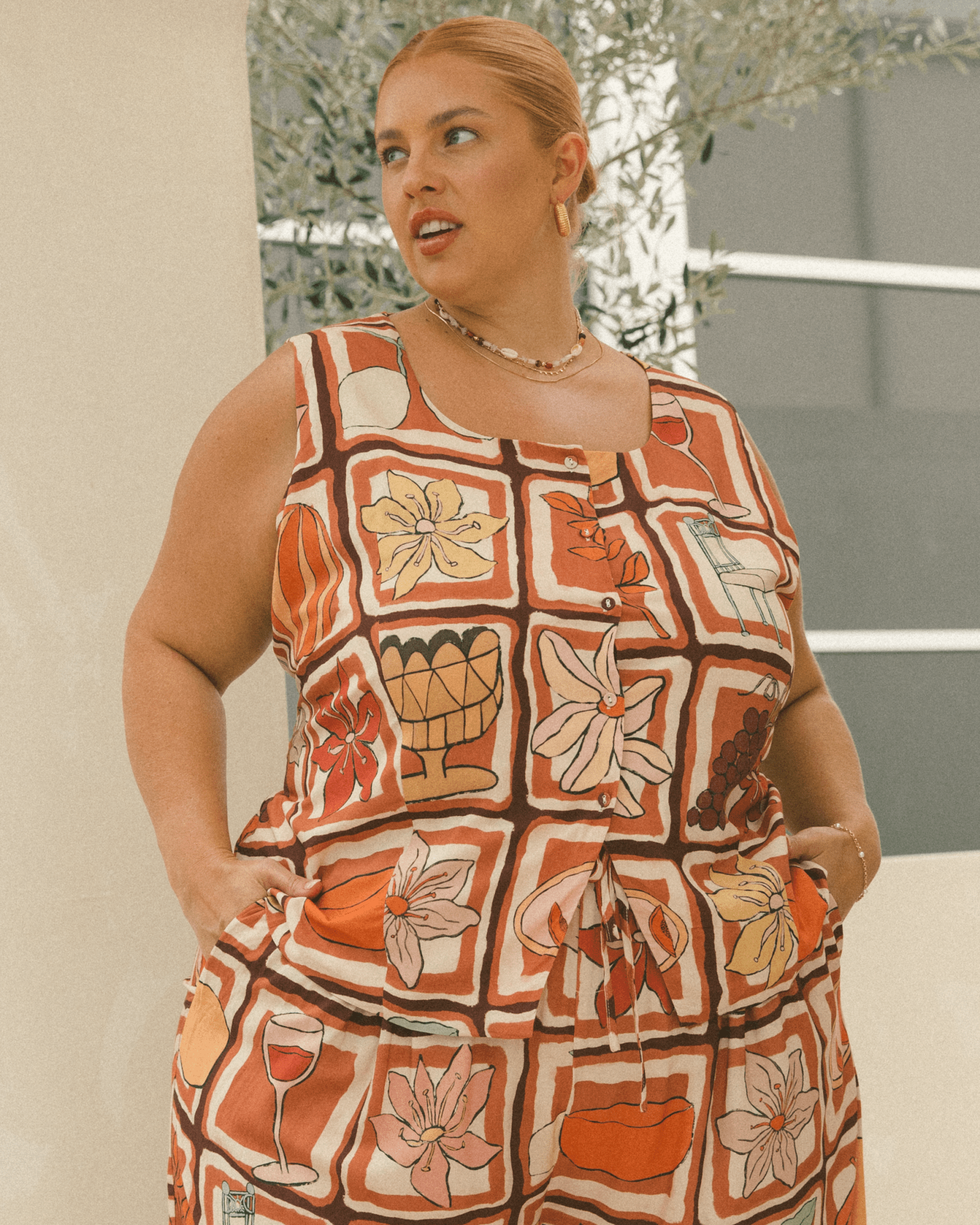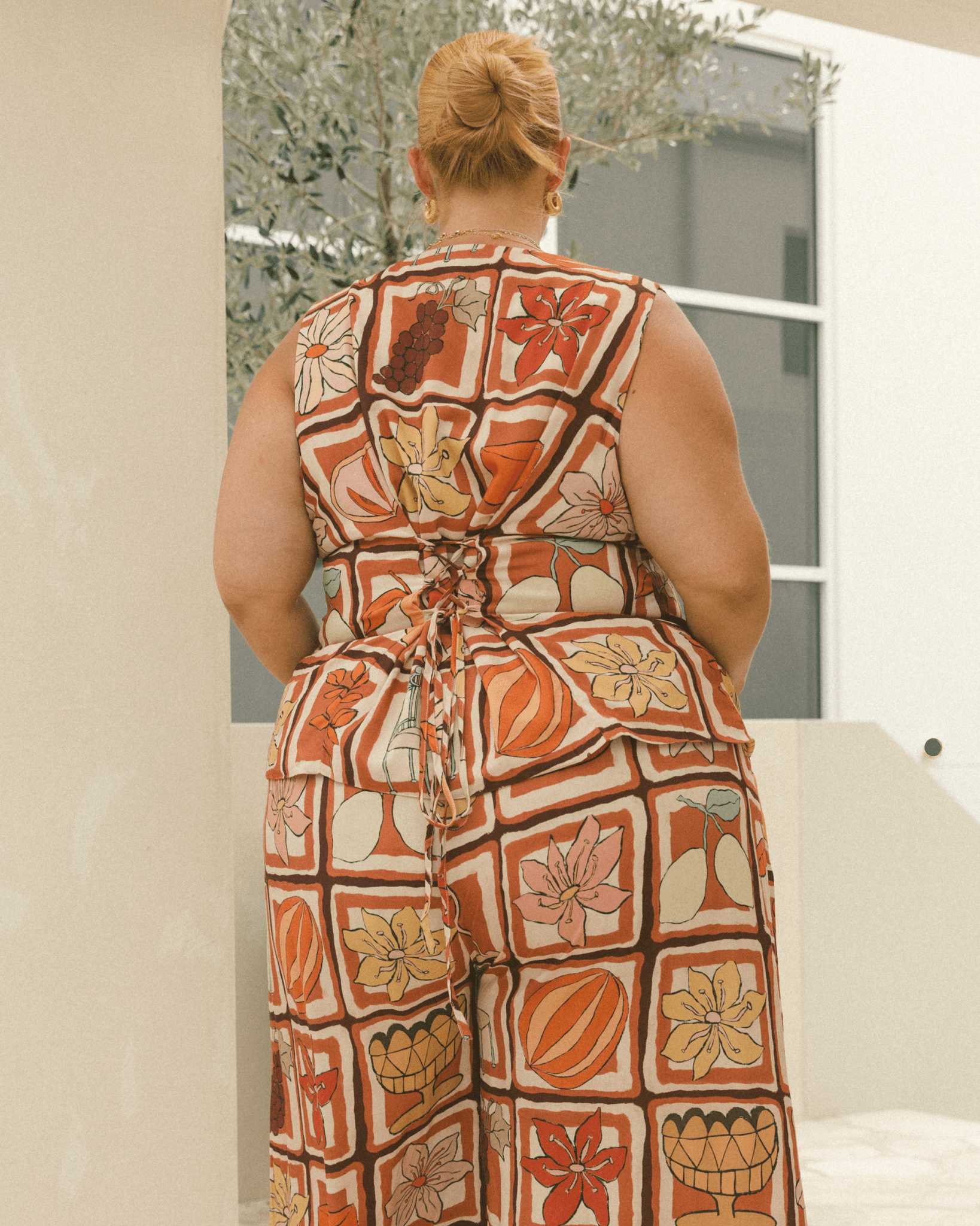 Introducing the Ella Vest in our exclusive Desert Sun print—where timeless design meets modern functionality. This stunning piece is crafted from 100% breathable cotton and fully lined for all-day comfort, making it the perfect addition to your capsule wardrobe.