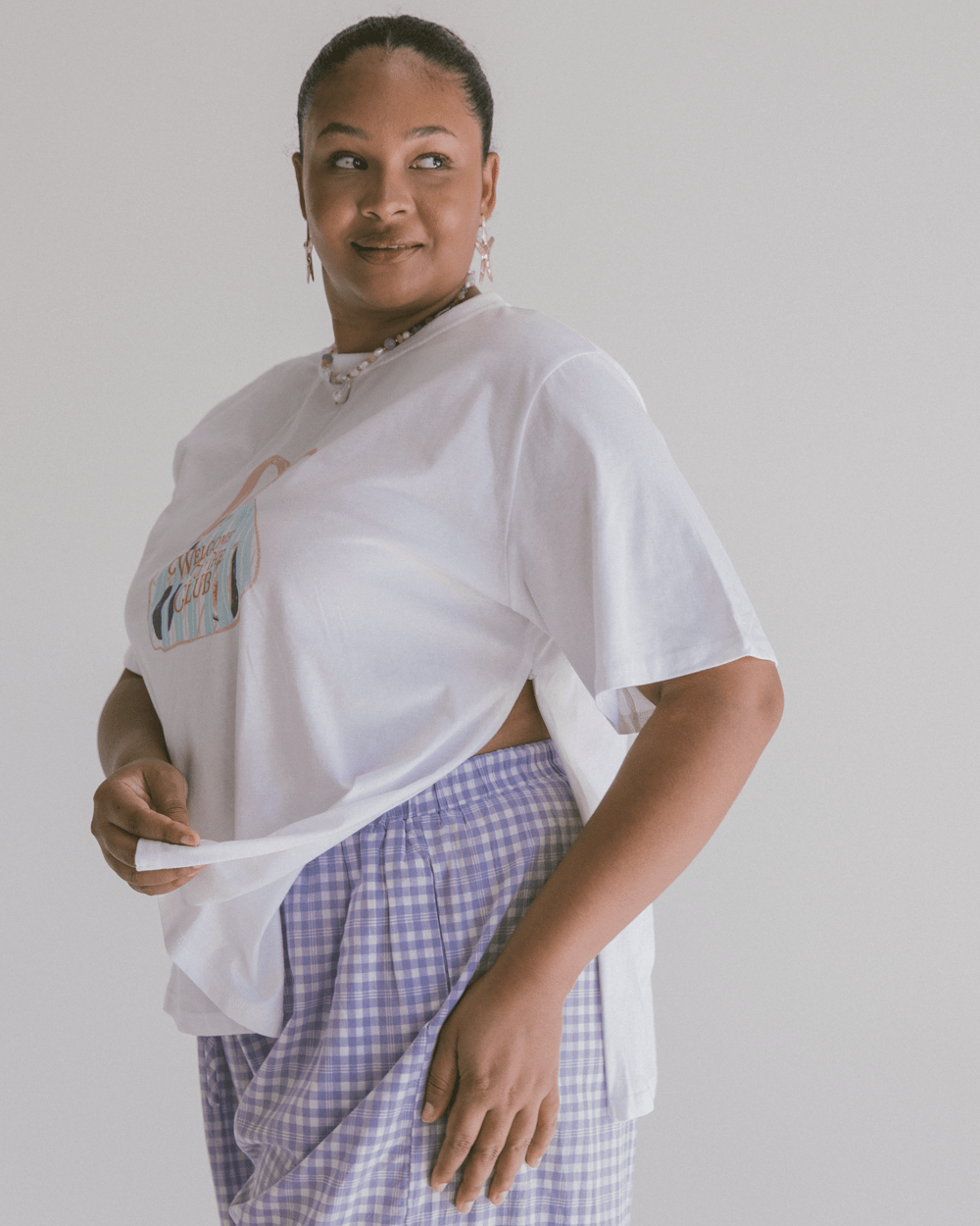 The “I woke up like this” of tees. With a slouchy shoulder, boxy fit, and buttery 100% cotton, this is the kind of throw-on-and-go magic you’ll want in every colour. It’s that good.